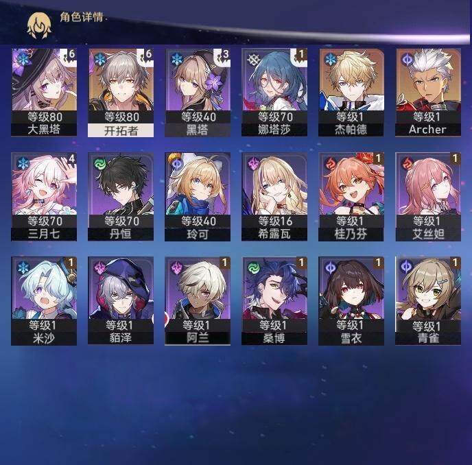 Archer,大黑塔,杰帕德,向着不可追问处,时节不居,无可取代的东西,星海巡航,满命大黑塔,0命Archer,0命杰帕德,精3星海巡航,精1向着不可追问处,精1时节不居,精1无可取代的东西【按邮箱: 邮箱未绑定】