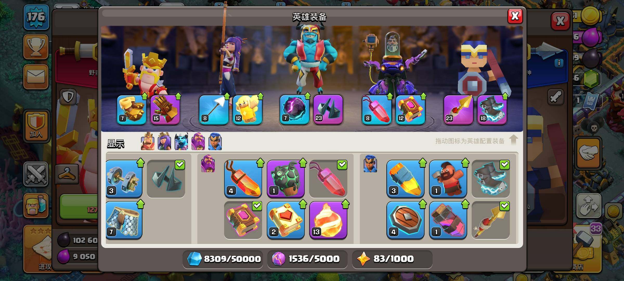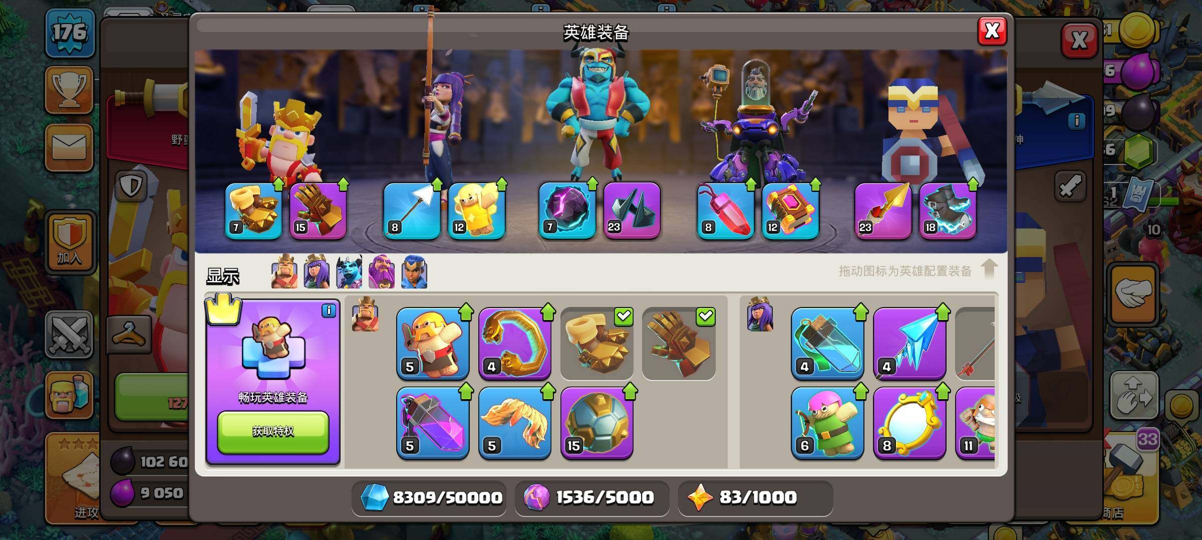 【BLN491】等级176/13王皮/11场景/5农/英雄等级62-75-57-50/深海龙宫/魔法世界/皇家竞技场/原始秘地/狂野丛林/像素世界/冰天雪地/幽静丛林/海上基地/部落工坊【按操作系统: QQ】 【按渠道: QQ】 【按场景】 狂野丛林 冰天雪地 幽静丛林 部落工坊