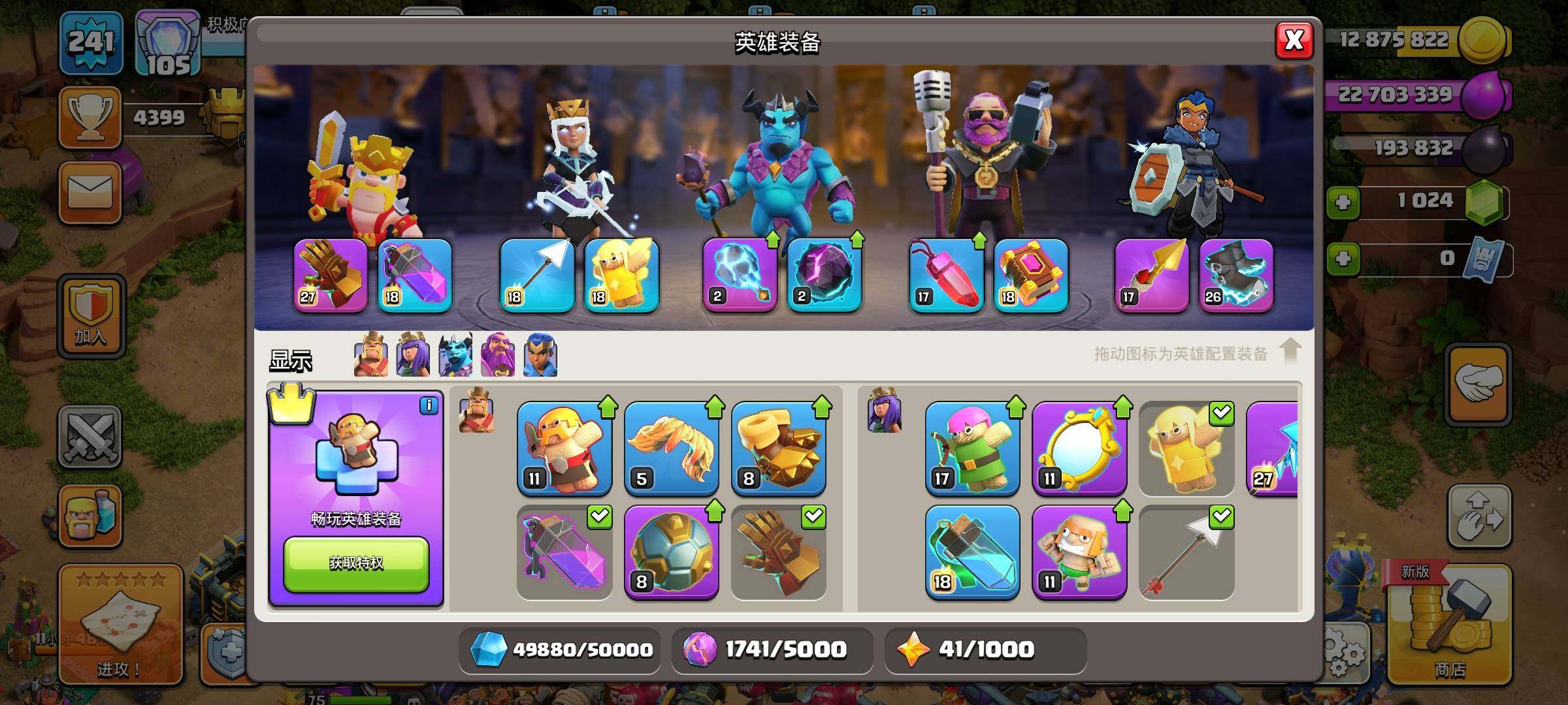 【BLN498】等级241/22王皮/10场景/6农/英雄等级80-97-75-50/部落工坊/海上基地/冰天雪地/幽静丛林/狂野丛林/像素世界/原始秘地/皇家竞技场/魔法世界/哥布林洞窟/爆裂小队蛮王/审判者蛮王/绿林蛮王/海上蛮王/派对蛮王/原始蛮王/角斗士之王/魔法女皇/丛林女王/绿林女皇/海上女皇/原始女王/冰雪女王/角斗士女皇/派对守护者/丛林永王/北境守护者/海上守护者/动漫战神/海上战神/绿林战神/凛冬战神【按操作系统: QQ】