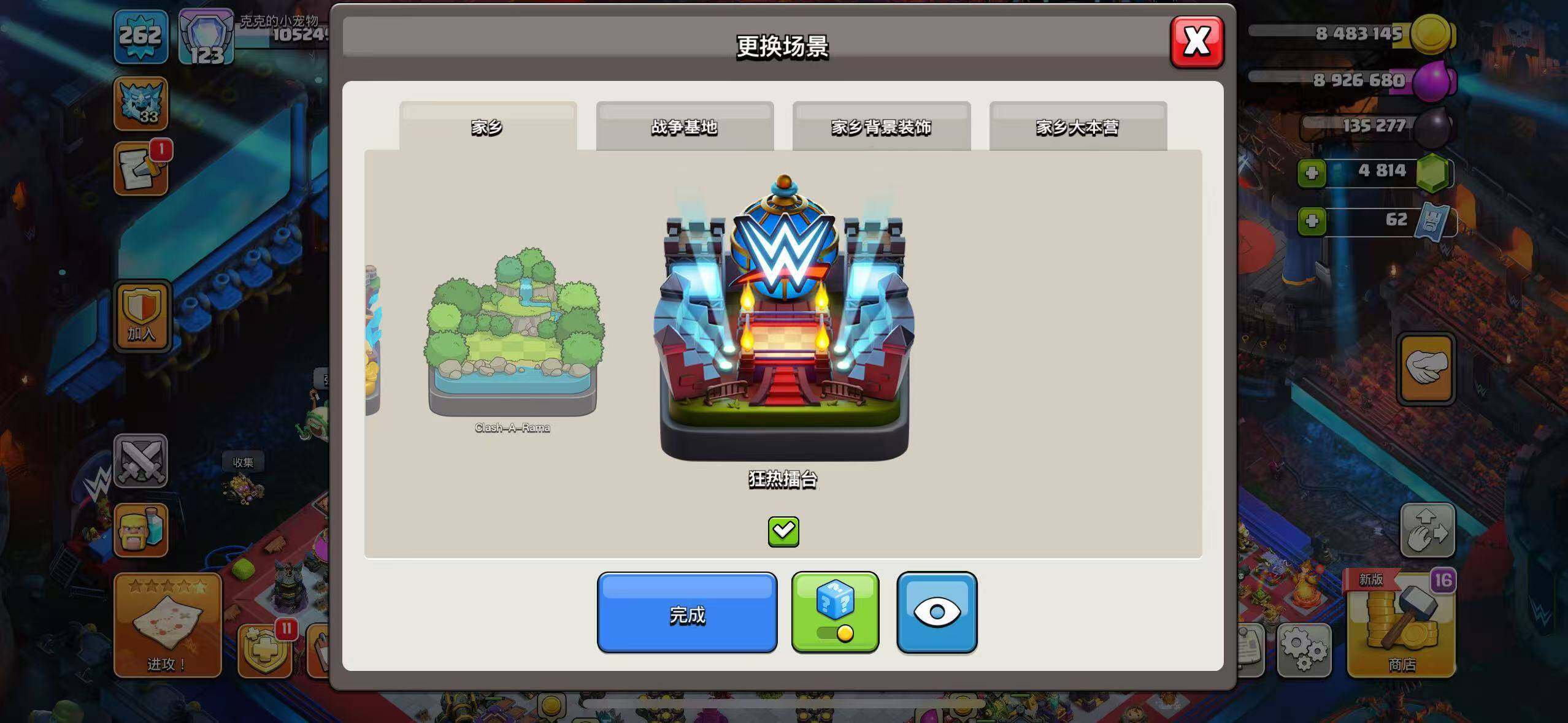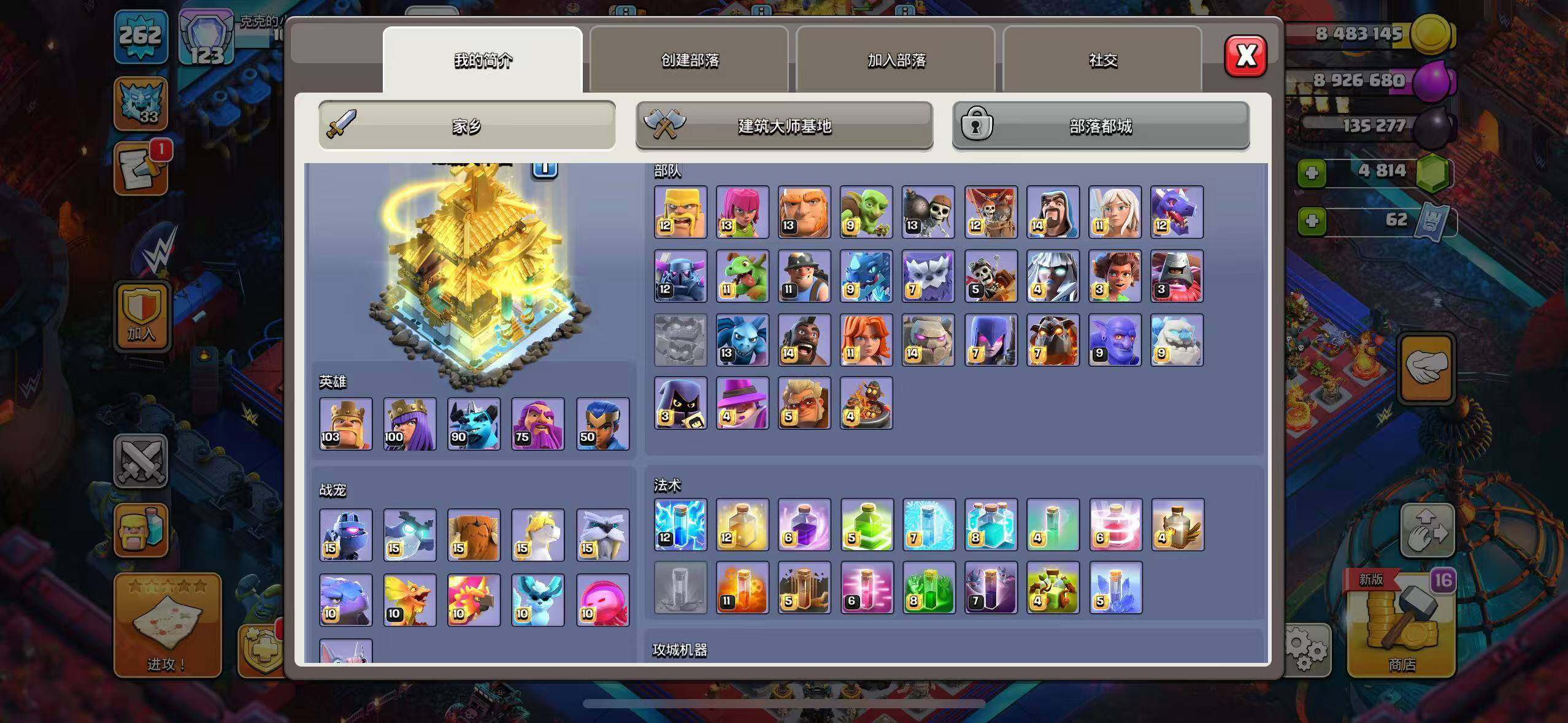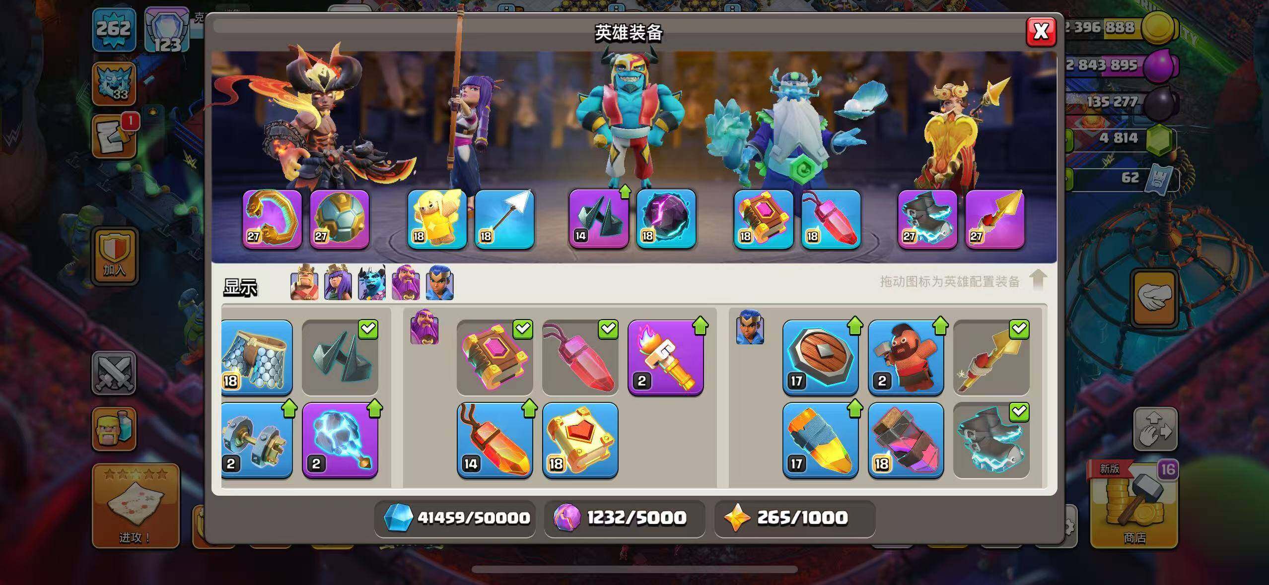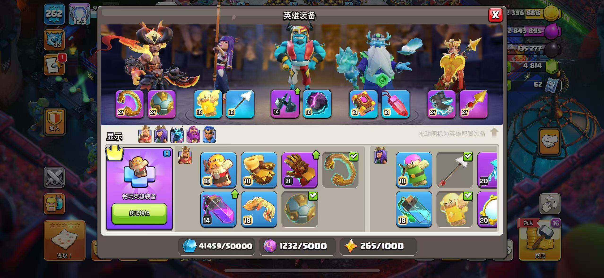 【BLC155】等级262/28王皮/11场景/6农/英雄等级103-100-75-50/狂热擂台/夏日海滨/魔法世界/哥布林洞窟/狂野丛林/原始秘地/皇家竞技场/冰天雪地/烈焰魔君·牛魔王/玉罗刹·铁扇公主【按操作系统: QQ】