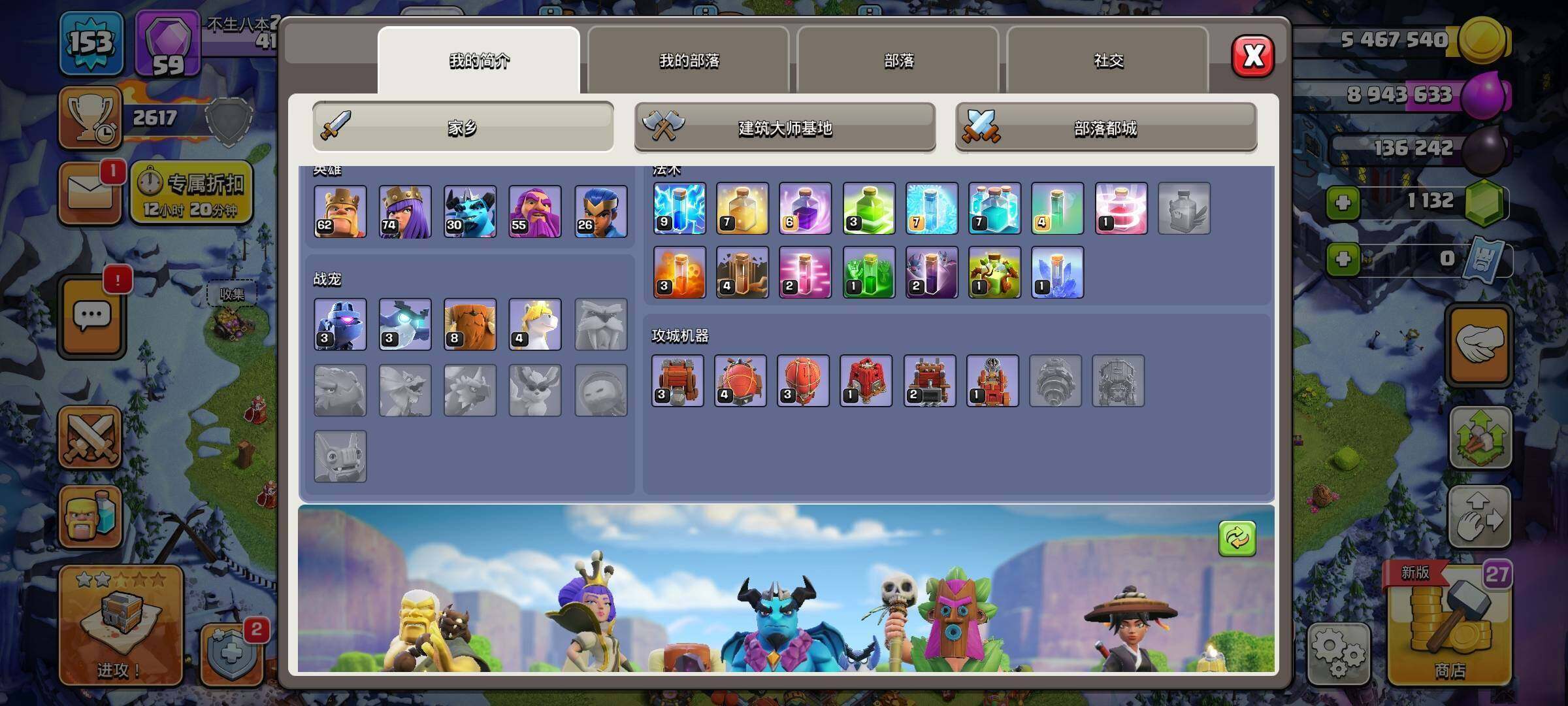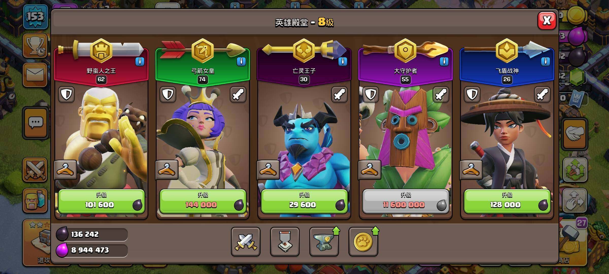 【BLN517】等级153/10王皮/6场景/5农/英雄等级62-74-55-26/像素世界/魔法世界/幽静丛林/冰天雪地/海上基地/部落工坊/像素蛮王/金蛇蛮王/戈仑蛮王/金秋女王/欢乐女皇/象棋女皇/丛林永王/海上守护者/火蛇战神/凛冬战神【按操作系统: QQ】