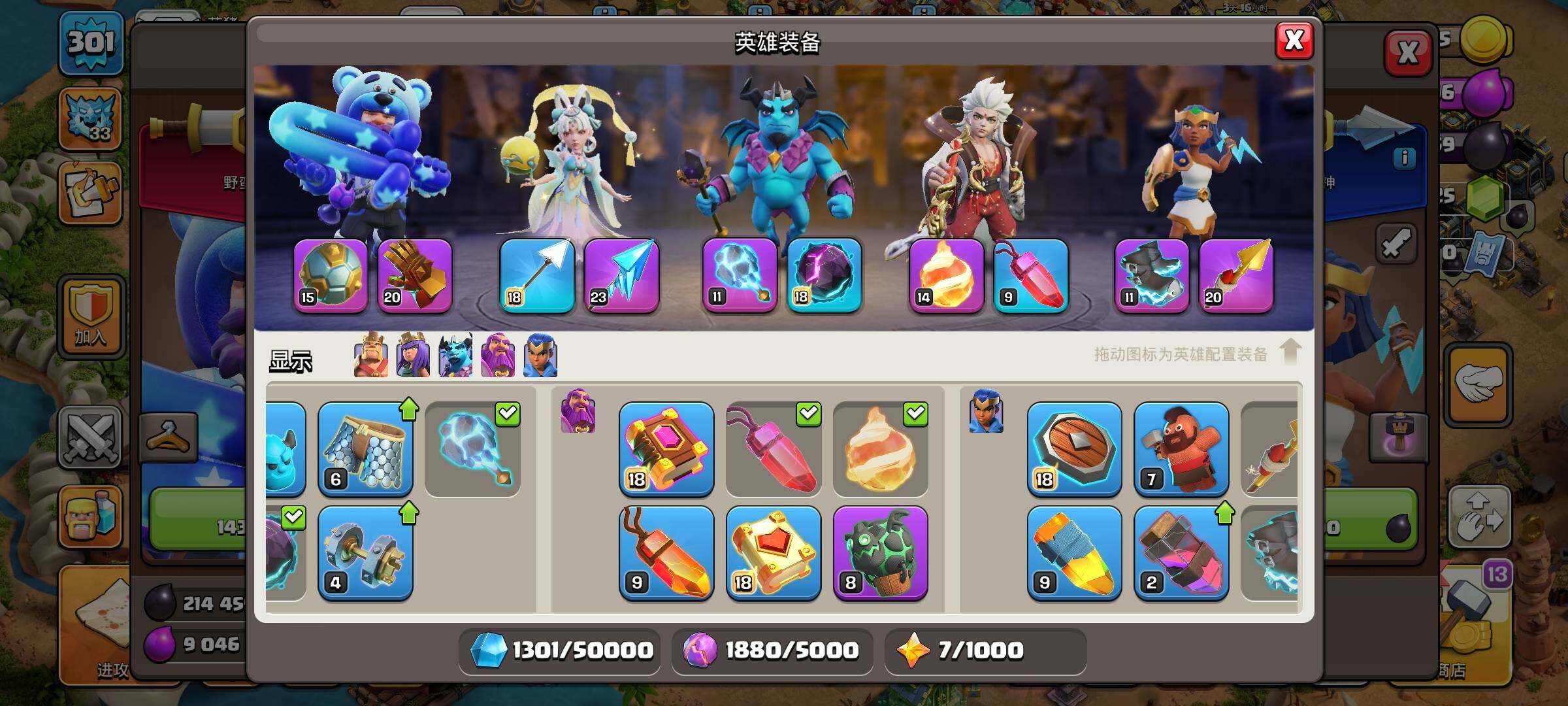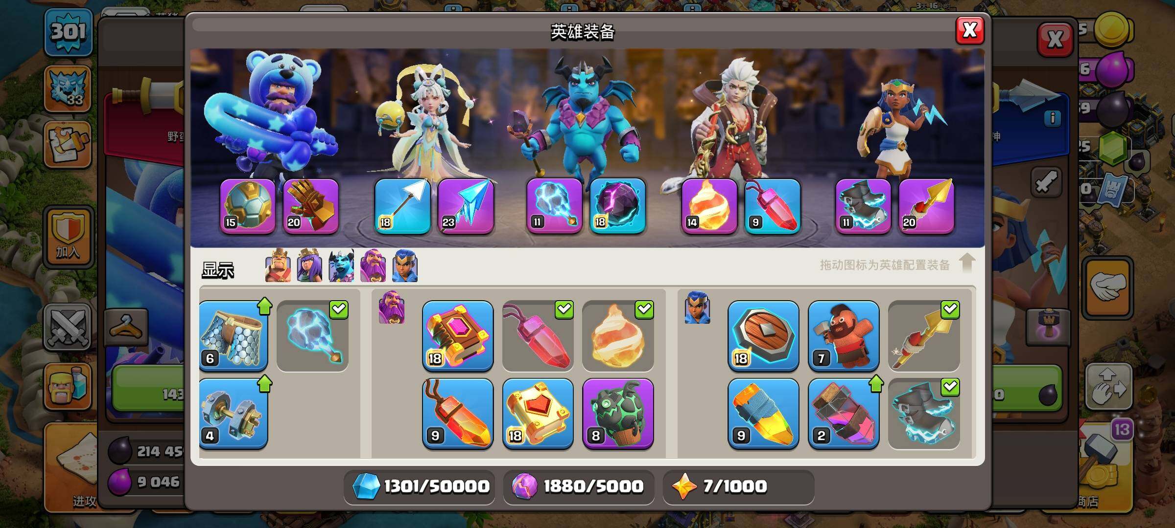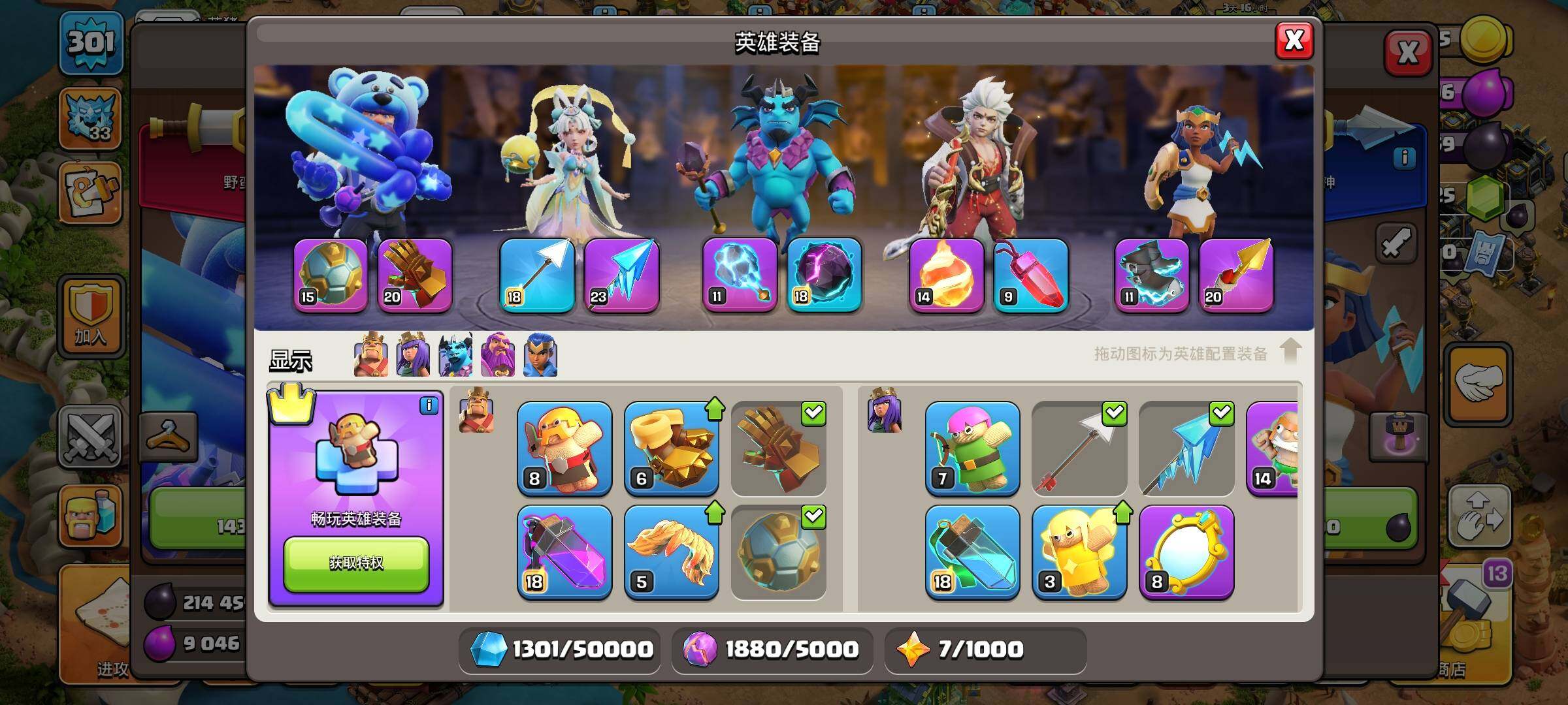 【BLN522】等级301/6农/海上基地/部落工坊/冰天雪地/幽静丛林/像素世界/狂野丛林/原始秘地/皇家竞技场/魔法世界/挥舞热情·蛮王/玉露流光·嫦娥/谪仙太白·守护者【按操作系统: QQ】