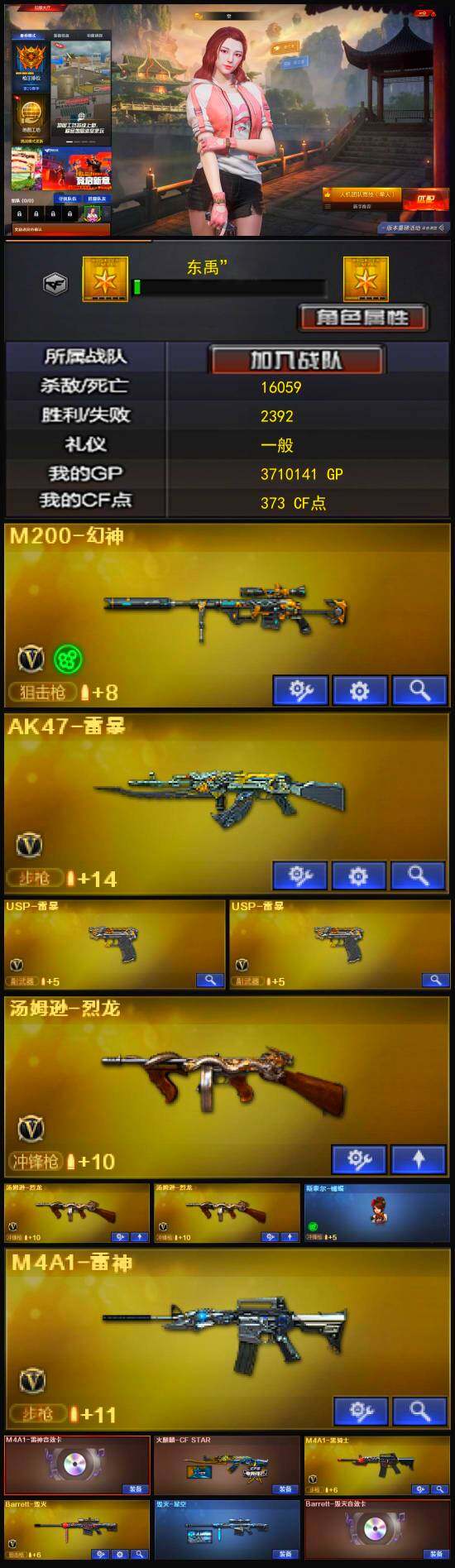 【热门武器】:M200-幻神,M4A1-黑骑士,汤姆逊-烈龙*3,斯泰尔-蝴蝶,USP-雷暴*2,沙鹰-修罗*2