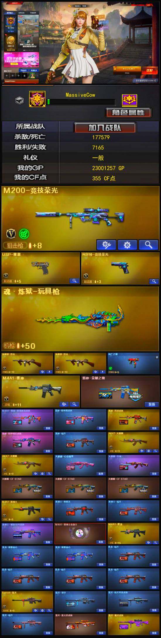 【热门武器】:M200-竞技荣光,死亡之眼,M4A1-黑骑士,汤姆逊-烈龙*2,USP-雷暴,沙鹰-修罗*2