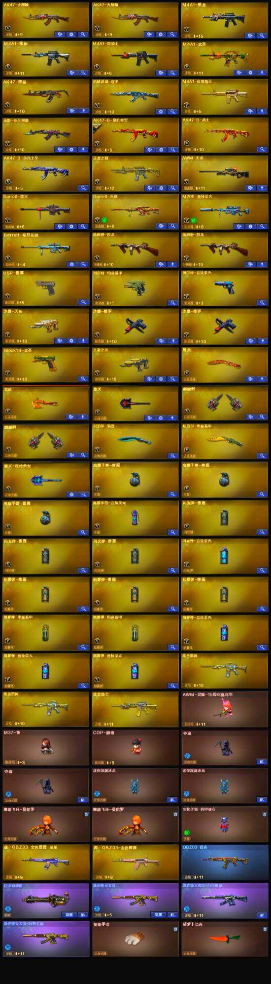 【人偶武器】:AWM-灵狐-15周年嘉年华,M37-葵,COP-旗袍,迷你深渊冰龙*2,迷你牛魔王,迷你波特博士,夺魂*2,灵狐娃娃手雷,生化手雷-机甲核心,深渊终结者手雷*3,闪光弹-小乔,闪光弹-貂蝉,高爆手雷-大乔,迷你艾比,迷你超能女侍