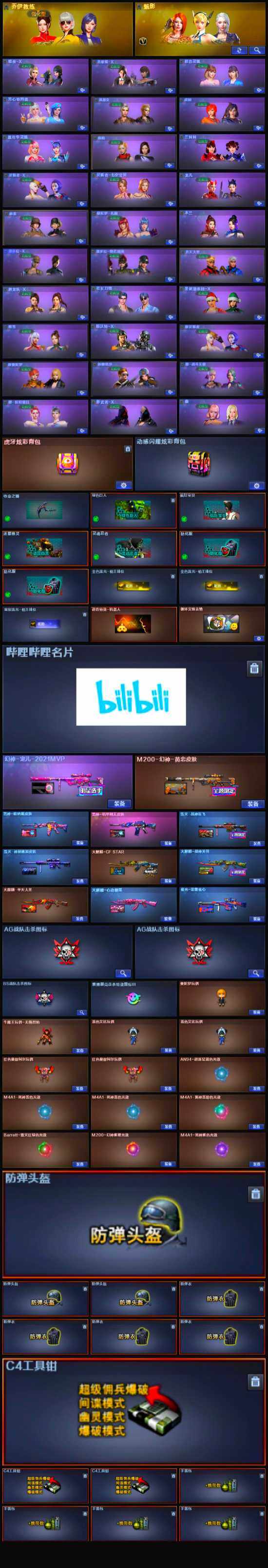 【道具】:全能枪王背包,背包-洛丽塔,虎牙炫彩背包,绿色巨人,灵魂忍者,迷雾幽灵,夺命之镰,防化服*2,金色流光-枪王排位*2,星辰流光-枪王排位,语音特效-机器人,循环实验表情,防弹头盔*3,防弹衣*4,C4工具钳*3,手雷包*4