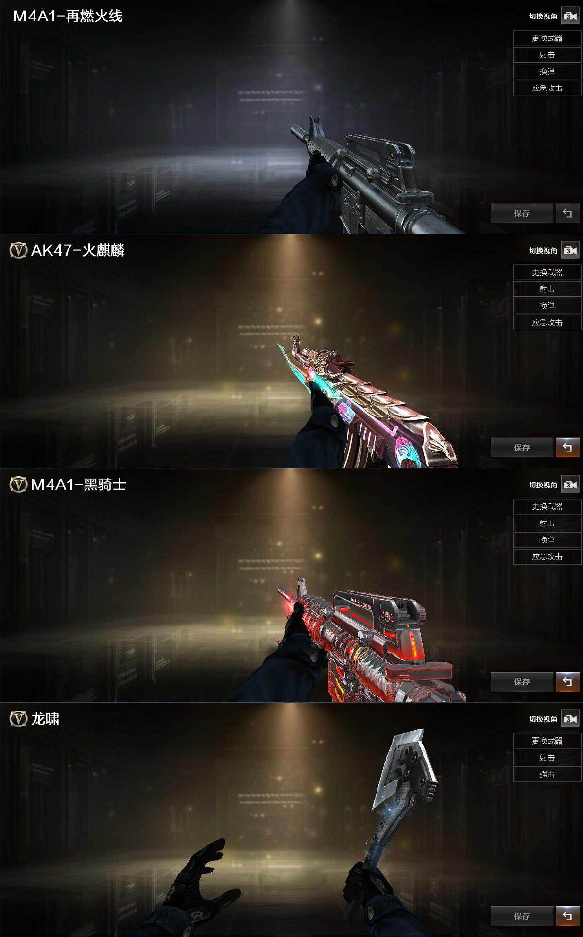 【皮肤】:M4A1-再燃火线,火麒麟-百城,黑骑士-暗月,轻型军用手斧-再燃火线