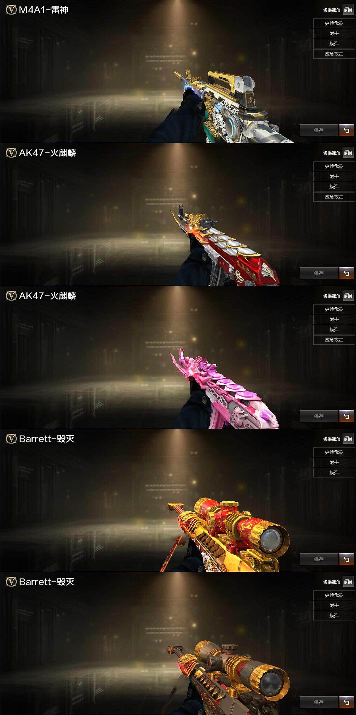 【英雄级武器】 M4A1-黑骑士 汤姆逊-烈龙 RPK-盘龙 沙鹰-修罗 AK47-火麒麟 M4A1-雷神 AN94-超新星 Barrett-毁灭 Barrett-极光