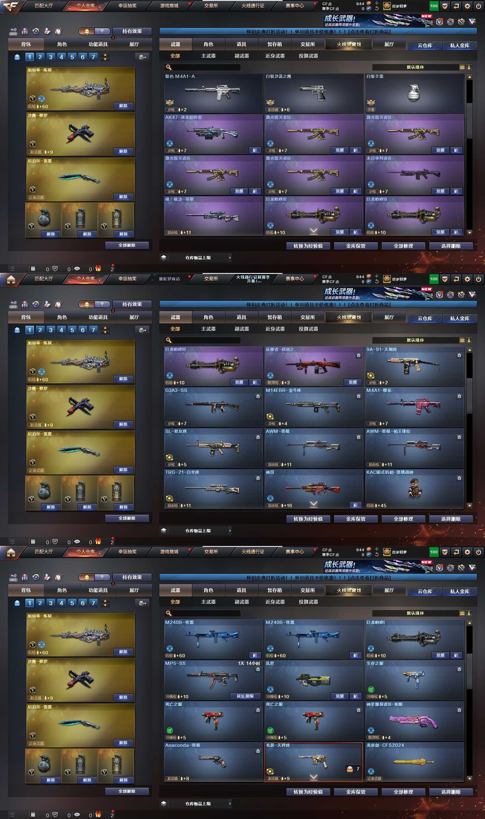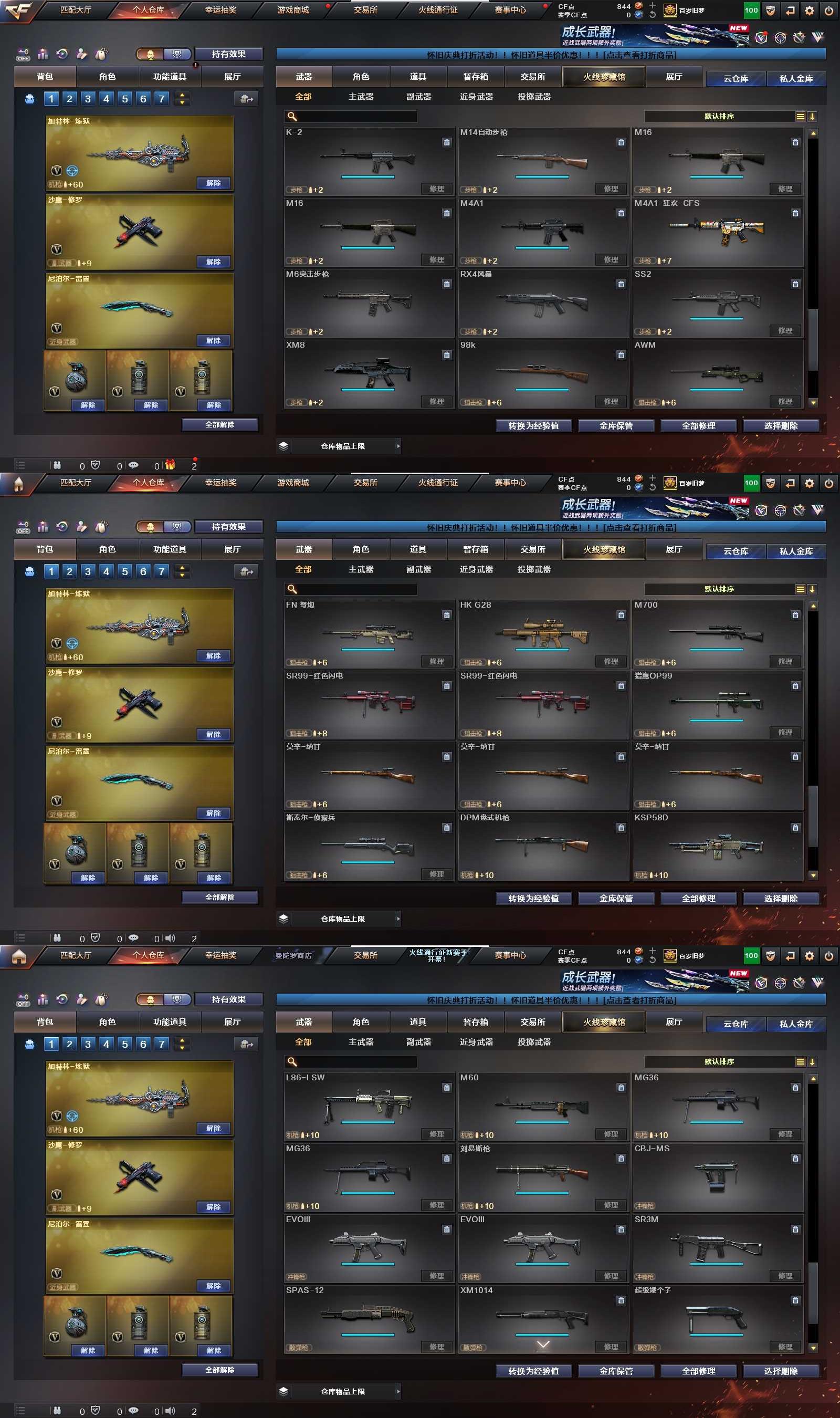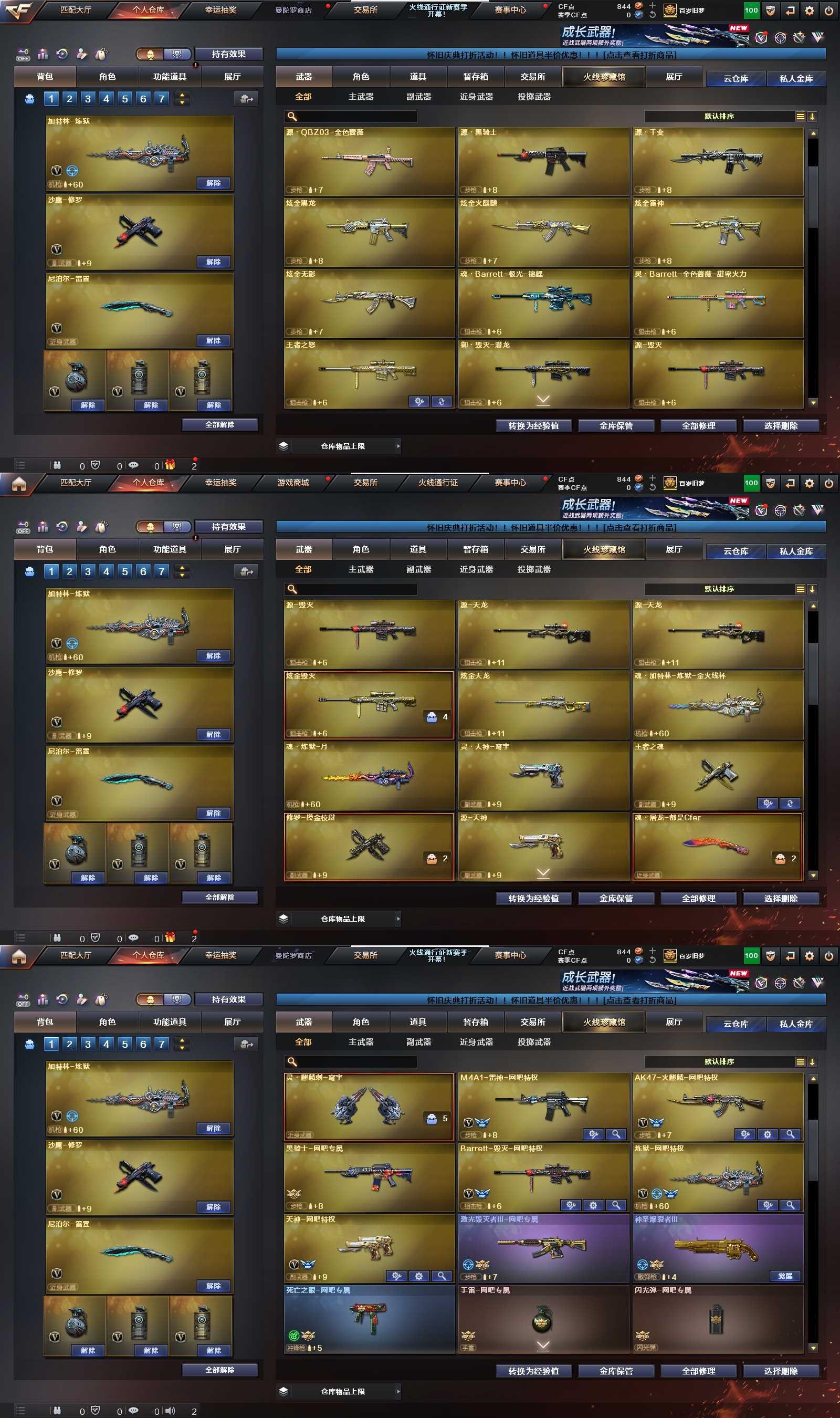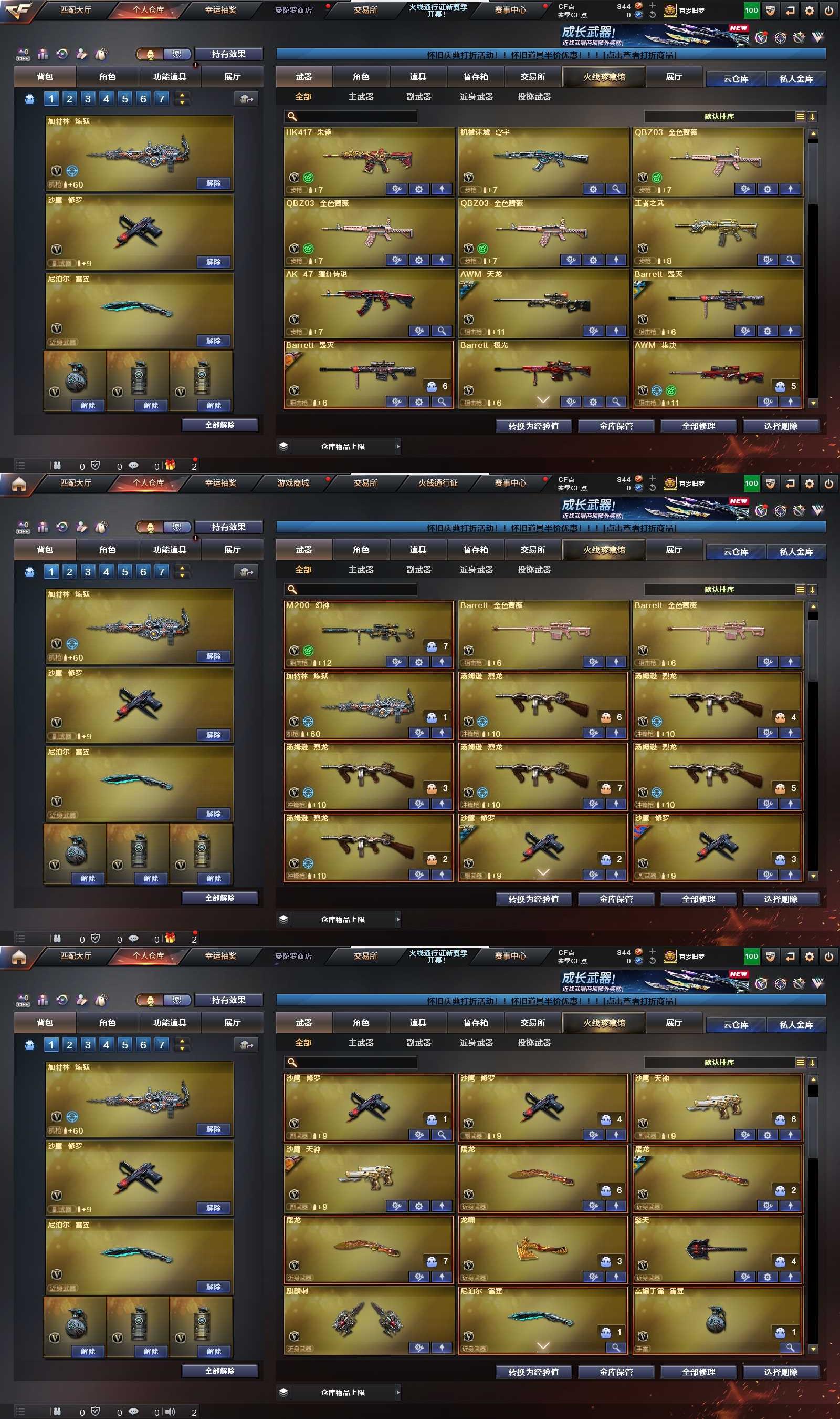 【英雄级武器】 M4A1-雷神 M4A1-黑骑士 Barrett-极光 M4A1-死神 AK47-黑武士 Barrett-毁灭 AK47-火麒麟 AWM-天龙 AK47-机械迷城 AN94-超新星 汤姆逊-烈龙 加特林-炼狱 AWM-裁决 蔷薇大炮 沙鹰-修罗 沙鹰-天神 擎天 龙啸 屠龙 麒麟刺