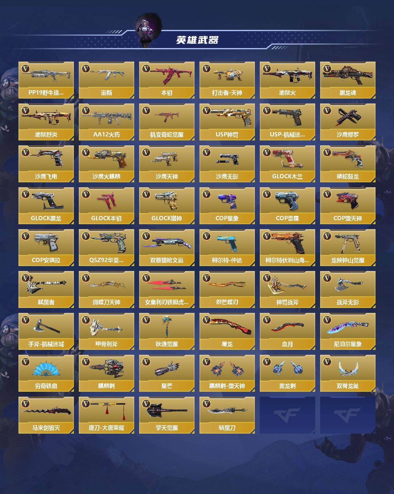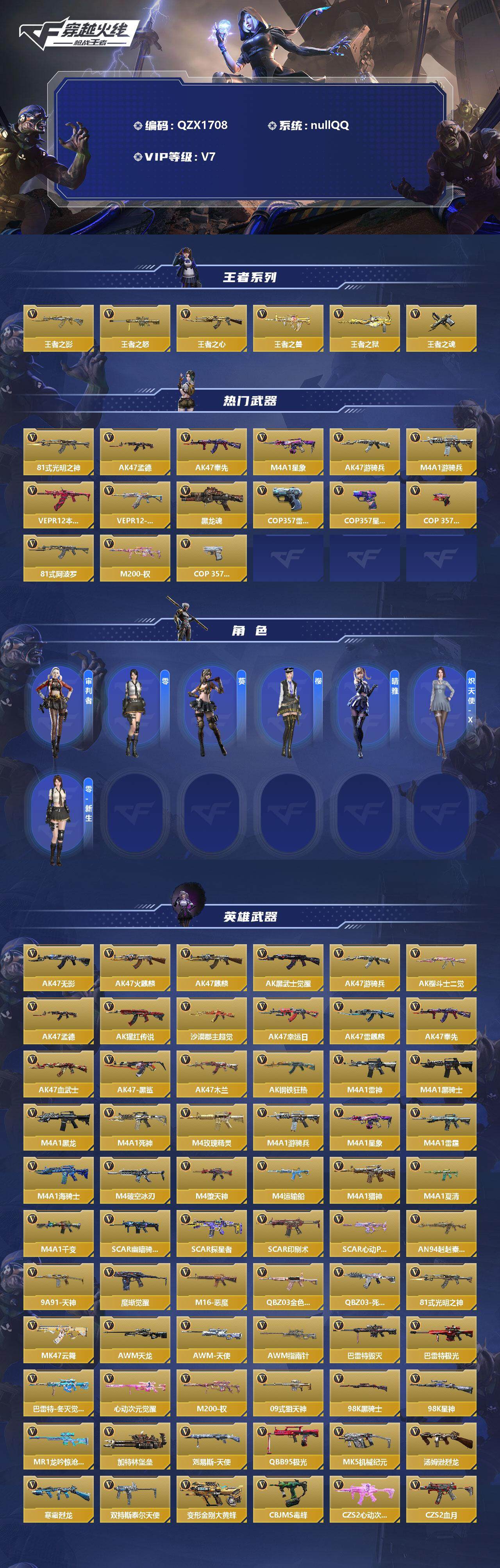 【QZX1708】VIP7/247V/王者之影/王者之怒/王者之心/王者之兽/王者之狱/王者之魂/81式-光明之神/AK47-孟德/AK47-奉先/M4A1-星象/AK47-游骑兵/M4A1-游骑兵/VEPR12-本初/VEPR12-宙斯/黑龙魂/COP 357-雷霆/COP 357-星象/COP 357-堕天神/81式-阿波罗/M200-权/COP 357-安琪拉/审判者/零/葵/樱/晴雅/炽天使-X/零-新生/AK47-无影/AK47-火麒麟/AK47-麒麟/AK47-黑武士觉醒/AK游骑兵/AK47-樱斗士-二觉/孟德/AK47-猩红传说/AK47-沙漠郡主-超觉/AK47-幸运日/AK47-雷麒麟/奉先/AK47-血武士/AK47-黑鲨/AK47-木兰/AK47-钢铁狂热/M4A1-雷神/M4A1-黑骑士/M4A1-黑龙/M4A1-死神/M4A1-玫瑰精灵/M4游骑兵/星象/M4A1-雷霆/M4A1-海骑士/M4A1-破空冰刃/M4A1-堕天神/M4A1-运输船/M4A1-猎神/M4A1-夏清/M4A1-千变/SCAR-幽暗骑士/SCAR-探星者/SCAR-印刷术/SCAR-心动PICK/AN94-赳赳秦师/9A91-天神/9A91-魔蜥觉醒/M16-恶魔/QBZ03-金色蔷薇/QBZ03-死神/MK47-云舞/AWM-天龙/AWM-天使/AWM-指南针/巴雷特-毁灭/巴雷特-极光/巴雷特-冬灭觉醒/M200-心动次元觉醒/09式狙-天神/98K-黑骑士/98K-星神/MR1-龙吟惊沧海/加特林-堡垒/刘易斯-天使/QBB95-极光/MK5-机械纪元/汤姆逊-烈龙/寒霜烈龙/双持斯泰尔-天使/QCW05-变形金刚·大黄蜂/CBJ-MS-毒蜂/CZS2-心动次元/CZS2-血月/PP19野牛-造纸术/打击者-天神/地狱火/地狱烈炎/AA12-火药/Origin12-机变奇蛇觉醒/USP-神罚/USP-机械迷城/沙鹰-修罗/沙鹰-飞电/沙鹰-火麒麟/沙鹰-天神/沙鹰-无影/蚩尤战弓觉醒/改装GLOCK-木兰/蟒蛇-鼓龙/改装GLOCK-黑龙/双持GLOCK18-本初/GLOCK18-猎神/COP星象/COP雷霆/QSZ92-华夏传说/双管猎枪-文远/柯尔特-仲达/柯尔特-伏刹山海觉醒/CZ75-龙映钟山觉醒/弑魔者/蝴蝶刀-天神/女皇利刃-铁胆虎魄/炽芒蝶刃/神罚战斧/战斧-无影/手斧-机械迷城/甲骨利斧/秋逸觉醒/屠龙/血月/尼泊尔-星象/穷奇铁扇/龙鳞-觉醒/太白诗仙扇/麒麟刺/星芒/麒麟刺-堕天神/双脊龙趾/翼龙刺/马来剑-毁灭/唐刀-华夏传说/唐刀-大唐荣耀/擎天觉醒/斩魔刀【操作系统: 安卓QQ】