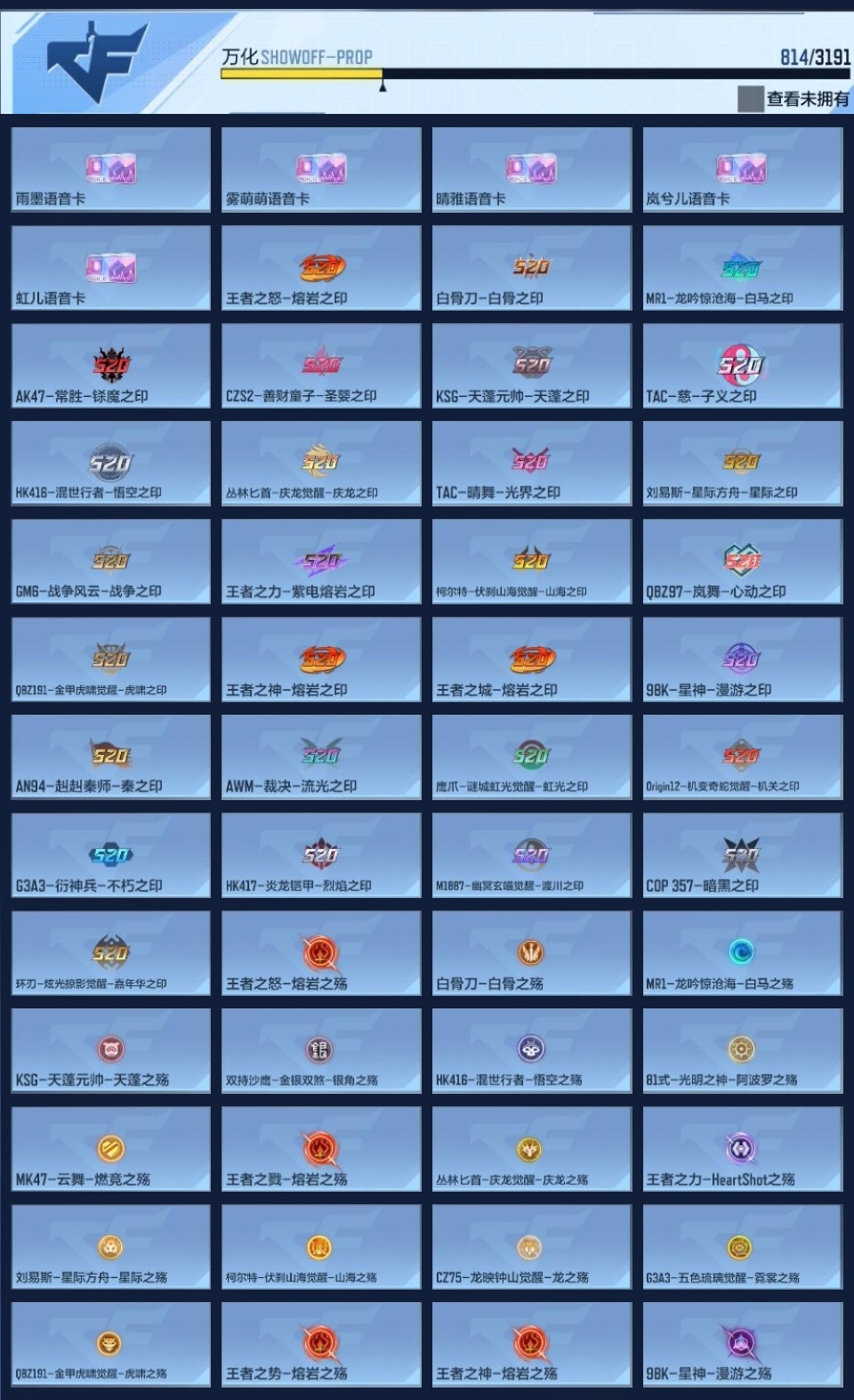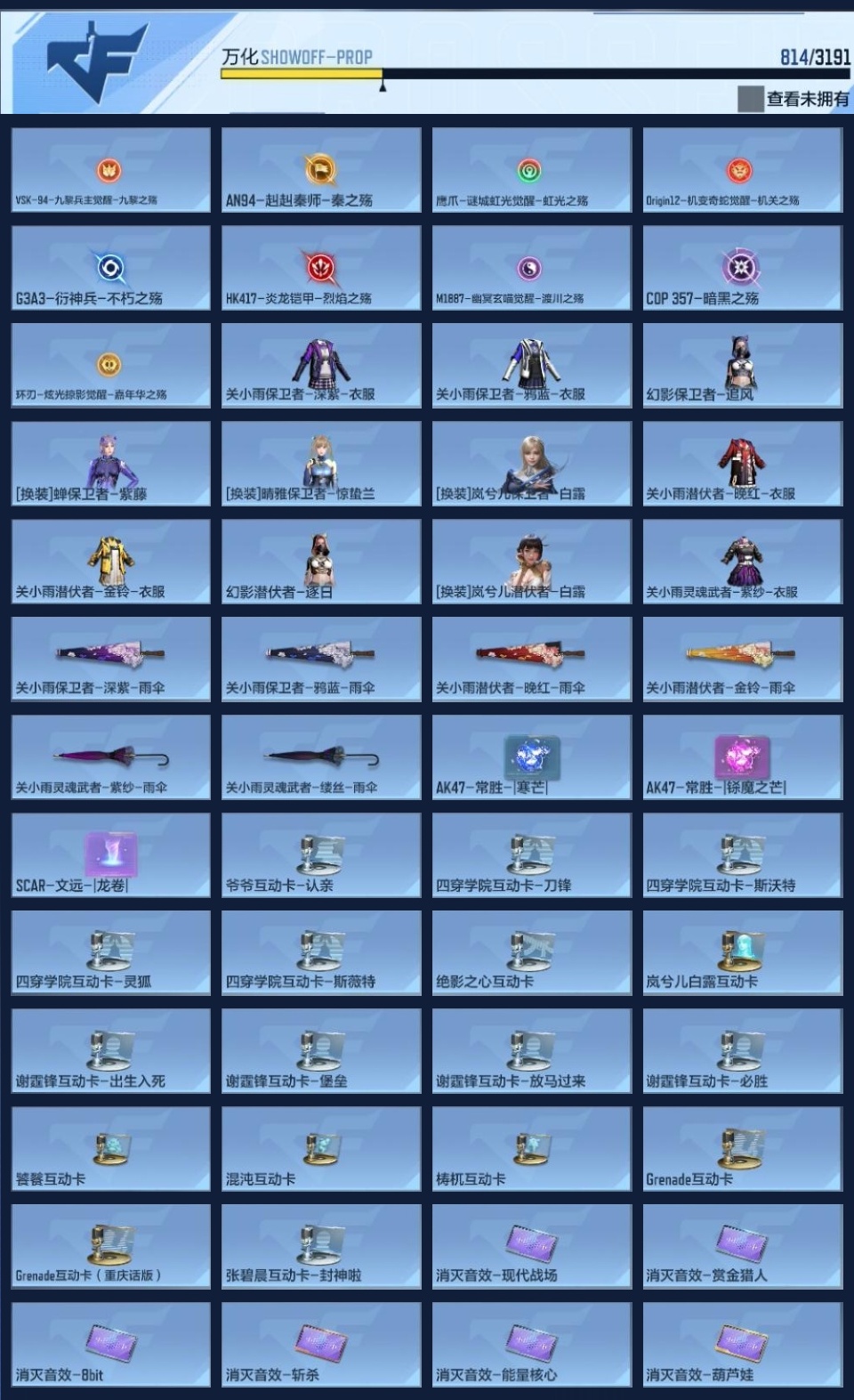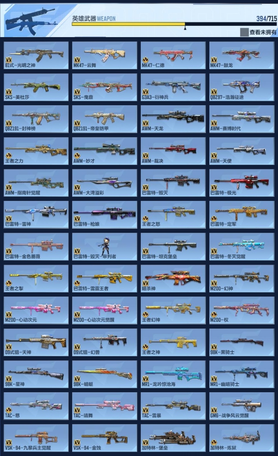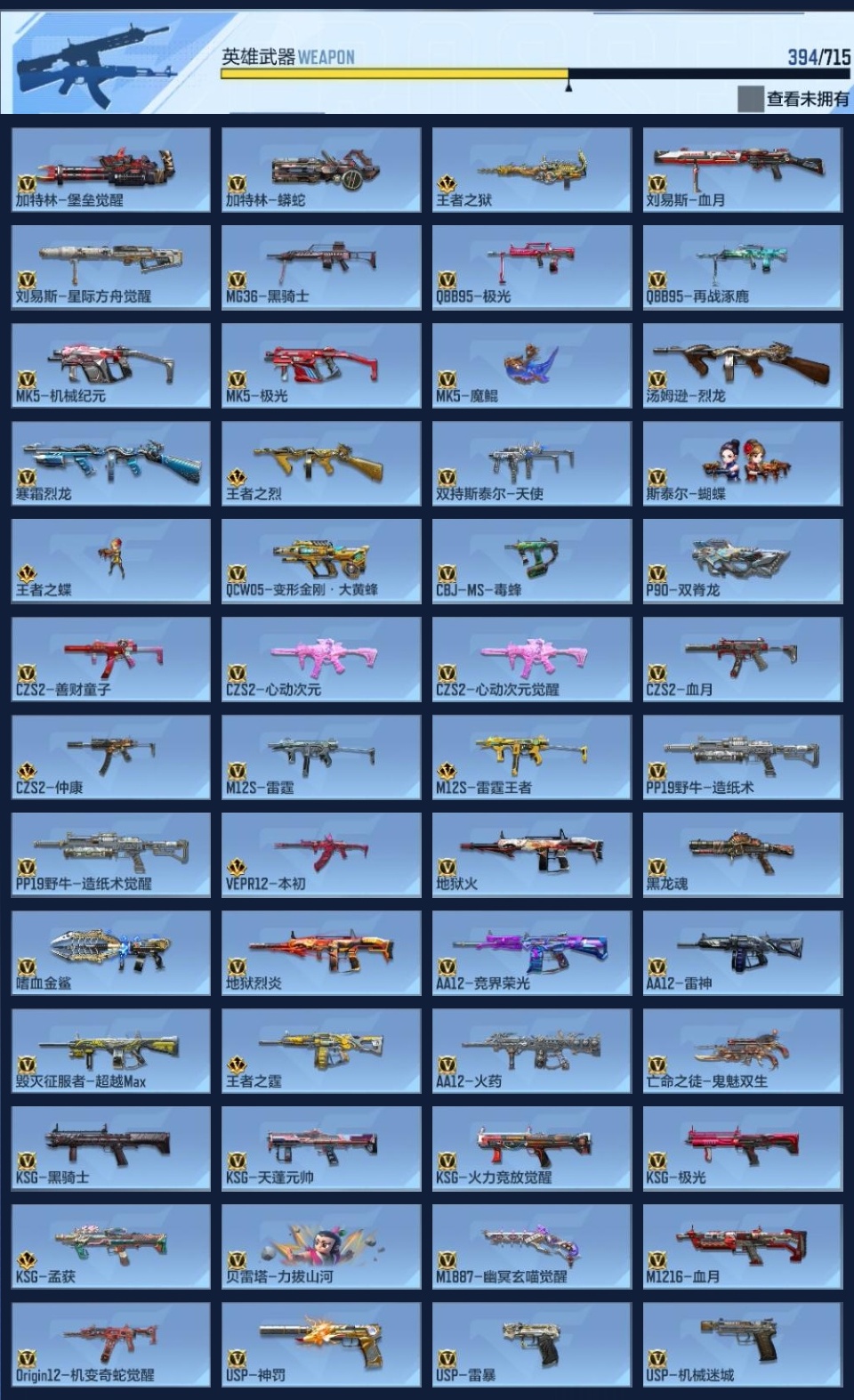 WQY622842 【氪金8.8W+V10极品号丨14至尊7同框丨王力紫电丨王怒紫电丨10英雄COP丨超多三国套丨】 王者V武器数量55 英雄武器数量394 音效卡数量19 万化数量814 VIP等级【文本】VIP10级 角色数量66 消灭音效数量6 角色等级184 【无防沉迷】 【枪王】 【是】 【不支持】 【是】 【支持】 音效卡20 狙击枪线4 消灭音效7 语音卡7 最终消灭2 抛物线8 音效卡:王者之力-现代战场,王者之魄-现代战场,王者之怒-现代战场,王者之心-现代战场,王者之翼-现代战场,王者之戮-现代战场,王者之光-现代战场,王者之神-现代战场,M200-幻神-现代战场,巴雷特-毁灭-现代战场,81式-瑜-现代战场,M4A1-仲达-现代战场,M4A1-仲达-原汁原味,加特林-炼狱-爆竹贺岁,AK47-孟德-现代战场,MK47-鼓龙-嘴炮,AK47-火麒麟-电音,98K-星神-电音,AK47-元让-过载之音,AK47-孟德-过载之音; 狙击枪线:狙击枪线-黑化,狙击枪线-紫电熔岩,狙击枪线-熔岩,AWM-裁决-流光之线; 消灭音效:消灭音效-赏金猎人,消灭音效-现代战场,消灭音效-8bit,消灭音效-能量核心,消灭音效-葫芦娃,消灭音效-斩杀,消灭音效-炎龙铠甲; 语音卡:岚兮儿语音卡,晴雅语音卡,雾萌萌语音卡,雨墨语音卡,葫芦娃语音卡,云悠悠语音卡,美女策划语音卡; 最终消灭:最终消灭-冰霜,最终消灭-紫电; 抛物线:抛物线-熔岩,抛物线-字,抛物线-绝影之迹,抛物线-HeartShot,抛物线-绿,抛物线-蓝,抛物线-黄,抛物线-粉;【角色】 春 关小雨 云悠悠 晴雅 雅典娜 樱 蝉