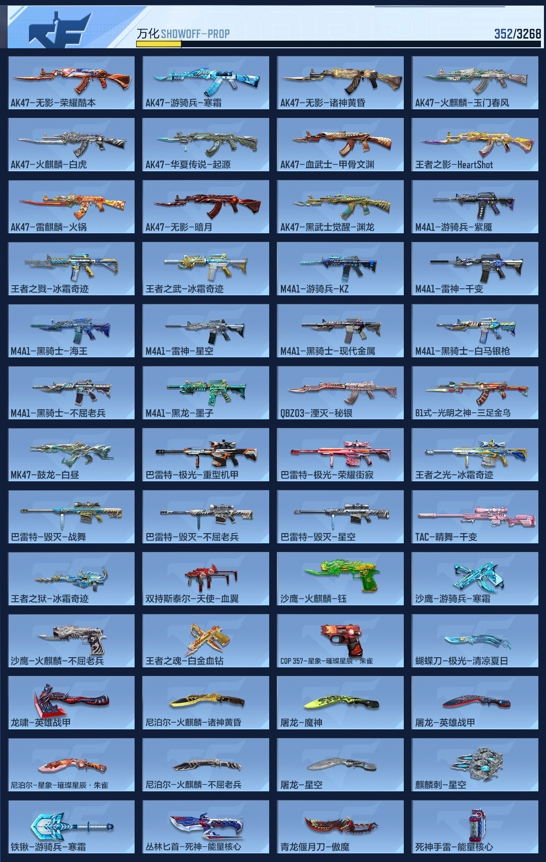 【超爽爆破生化号丨热门武器多多丨王戮丨王武丨王影丨王光丨王心小套装丨瑜丨星象大套丨黑龙魂丨6把cop丨冰霜最终消灭】 王者V武器数量18 英雄武器数量209 音效卡数量9 万化数量352 VIP等级【文本】VIP8级 狙击枪线数量2 消灭音效数量5 【VIP8级】 【可二次实名】 【无防沉迷】 【不是本人】 【新锐】 【不支持】 【是】 【可排位】 王者系列17 热门武器176 生化专区6 挑战大师3 英雄角色2 热门皮肤52 音效卡9 狙击枪线2 消灭音效5 语音卡1 最终消灭1 抛物线4 王者系列:王者之戮,王者之影,王者之光,王者之武,王者之心,王者之锋,王者之蝶,王者之狱,王者之魂,王者之啸,王者之烈,王者之霆,M12S-雷霆王者,王者之翼闪光弹,王者之翼烟雾弹,王者之竞闪光弹,王者之竞烟雾弹; 热门武器:黑龙魂,81瑜,AN94-盖,M4星象,M200-幻神,TAC-慈,M4仲达,AWM-妙才,KSG-孟获,激昂霸王枪,AK47-无影,巴雷特-枪娘,98K-黑骑士,沙鹰-修罗,AK47-火麒麟,AK竞技战魂,加特林-炼狱,M4A1-雷神,暗杀神,巴雷特-极光,COP星象,柯尔特-仲达,MK23-瑜,COP雷霆,GLOCK18-武圣,双管猎枪-未来战士,蟒蛇-妙才,铁锹-孟德,穷奇铁扇,擎天,屠龙,青龙偃月刀,龙啸,尼泊尔-火麒麟,尼泊尔-星象,黑龙刺,耀金雷刃,丛林匕首-死神,M4A1-黑骑士,M4A1-太白诗仙,M4A1-游骑兵,CBJ-MS-毒蜂,汤姆逊-烈龙,M12S-雷霆,沙鹰-游骑兵,蝴蝶刀-天神,CZ75-策,沙鹰-孟德,双持GLOCK18-本初,丈八蛇矛,气勇胆烈戟,思召剑,CZS2-仲康,09式狙-天神,AK47-木兰,AK47-雷麒麟,巴雷特-毁灭,G3A3-衍神兵,MK47-金角巨兽,改装GLOCK-魔杀族,猎弩-虫族女王,末日裁决觉醒,QBZ191-帝皇铠甲,烈焰弓,匕首-冰魂觉醒,COP357-安琪拉,AK47-华夏传说,AK47-心动次元觉醒,AK47-机械迷城,AK47-樱斗士-二觉,AK47-耀金伯爵,AK47-血武士,AK47-黑鲨,AN94-四凶觉醒,CZS2-血月,GM6-战争风云觉醒,马来剑-毁灭,血阳,SCAR-探星者,MK47-鼓龙,血月,神罚战斧,M4A1-猎神,QSZ92-华夏传说,唐刀-华夏传说,9A91-魔蜥觉醒,双持斯泰尔-天使,星芒,SCAR-幽暗骑士,M4A1-龙血,黑骑士手雷,高爆手雷-无限,黑武士闪光弹,AK12-天启,M1216-血月,双持沙鹰-亚龙,双持尼泊尔-亚龙,火麒麟烟雾弹,HK416-极光,巴雷特-金色蔷薇,沙鹰-幻兽,火麒麟手雷,黑武士手雷,燃烧弹-游骑兵,雷神手雷,手雷-云海游龙,闪光弹-游骑兵,闪光弹-雷霆,雷神闪光弹,黑武士烟雾弹,烟雾弹-游骑兵,烟雾弹-雷霆,雷神烟雾弹,高爆手雷-雷霆,TAC-晴舞,TAC-天使,QBZ03-金色蔷薇,唐刀-大唐荣耀,手斧-机械迷城,沙鹰-神兵修罗,M4A1-心动次元觉醒,M4A1-运输船,地狱烈樱·二觉,QBZ191-封神榜,女皇利刃-铁胆虎魄,AK47-钢铁狂热,AN94-精卫填海,AWM-指南针,AWM-指南针觉醒,鹰爪-谜城虹光觉醒,Origin12-机变奇蛇觉醒,AK47-谜城烟火,掠夺者P365-虹舞,QBZ97-浩瀚征途,匕首-浩瀚征途,DDM4-PDW-星际宇航觉醒,巴雷特-朱雀,双持沙鹰-元让,啖睛矢,左轮-卧龙觉醒,甩棍-卧龙觉醒,蟒蛇-鼓龙,SCAR-心动PICK,破邪蛇棍觉醒,马来剑-【角色】 子涵