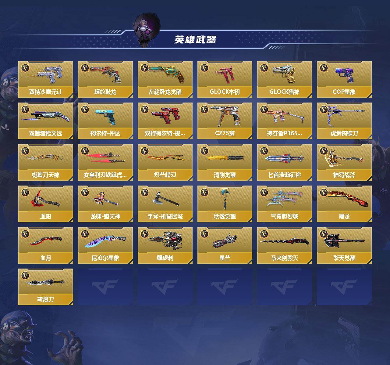 【CFMG904】VIP6/248V/5王者/王者之影/王者之心/王者之神/王者之魂/王者之霆/KSG-孟获/81式-光明之神/MK47-仁德/M4A1-仲达/M4A1-星象/TAC-慈/M200-幻神/COP 357-星象/81式-阿波罗/CZS2-仲康/AN94-盖/审判者/关小雨/炽天使-X/零-新生/九安-X/AK47-火麒麟/AK47-血武士/AK47-华夏传说/AK47-谜城烟火/M4A1-雷神/M4A1-黑骑士/M4A1-死神/M4A1-玫瑰精灵/星象/M4A1-龙血/仲达/M4A1-赛博雷神/M4A1-海骑士/M4A1-太白诗仙/SCAR-幽暗骑士/SCAR Light-白虎/SCAR-探星者/SCAR-印刷术/SCAR-印刷术觉醒/SCAR-心动PICK/AN94-赳赳秦师/AUG-机械纪元/9A91-魔蜥觉醒/M14EBR-拂影/M14EBR-葫芦山庄/AK12-天启/QBZ03-湮灭/QBZ03-金色蔷薇/QBZ03-死神/QBZ03-玉面羞花/HK416-极光/HK417-炎龙铠甲/MK47-云舞/仁德/SKS美杜莎/G3A3-五色琉璃觉醒/QBZ97-浩瀚征途/QBZ191-封神榜/AWM-天龙/AWM-裁决/AWM-天使/AWM-大湾溢彩/巴雷特-毁灭/巴雷特-极光/巴雷特-冬灭觉醒/幻神/M200-心动次元觉醒/09式狙-天神/98K-黑骑士/98K-星神/TAC慈/VSK-94-九黎兵主觉醒/QBB95-极光/QBB95-再战涿鹿/汤姆逊-烈龙/双持斯泰尔-天使/QCW05-变形金刚·大黄蜂/CBJ-MS-毒蜂/CZS2-心动次元觉醒/CZS2-血月/PP19野牛-造纸术/DDM4-PDW-星际宇航觉醒/打击者-天神/地狱火/地狱烈炎/AA12-火药/M1887-幽冥玄喵觉醒/Origin12-机变奇蛇觉醒/USP-神罚/USP-机械迷城/USP-太白诗仙/沙鹰-修罗/沙鹰-神兵修罗/沙鹰-宇航兔兔/双持沙鹰-元让/蟒蛇-鼓龙/左轮-卧龙觉醒/双持GLOCK18-本初/GLOCK18-猎神/COP星象/双管猎枪-文远/柯尔特-仲达/双持柯尔特-极光/CZ75-策/掠夺者P365-虹舞/虎贲钩镰刀/蝴蝶刀-天神/女皇利刃-铁胆虎魄/炽芒蝶刃/清刚-觉醒/匕首-浩瀚征途/神罚战斧/血阳/龙啸-堕天神/手斧-机械迷城/秋逸觉醒/气勇胆烈戟/屠龙/血月/尼泊尔-星象/龙鳞-觉醒/太白诗仙扇/麒麟刺/星芒/马来剑-毁灭/擎天觉醒/斩魔刀【操作系统: 苹果QQ】
