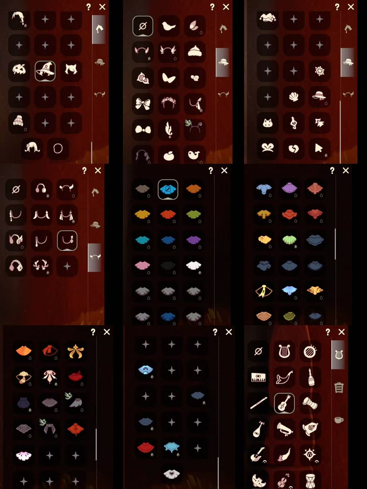 礼包: 暗彩裤 福娃套 水母肩饰 蝙蝠套 巫师 绊爱套 橘子头饰 锦鲤头饰 雪花发饰 贝壳发饰 兔子头饰 tgc 创始人 王子围巾 欧若拉之翼 蜘蛛斗 瑞雪斗 音韵吉他 欧若拉之声 祥云伞 中秋灯笼 献瑞折扇 奥利奥头饰