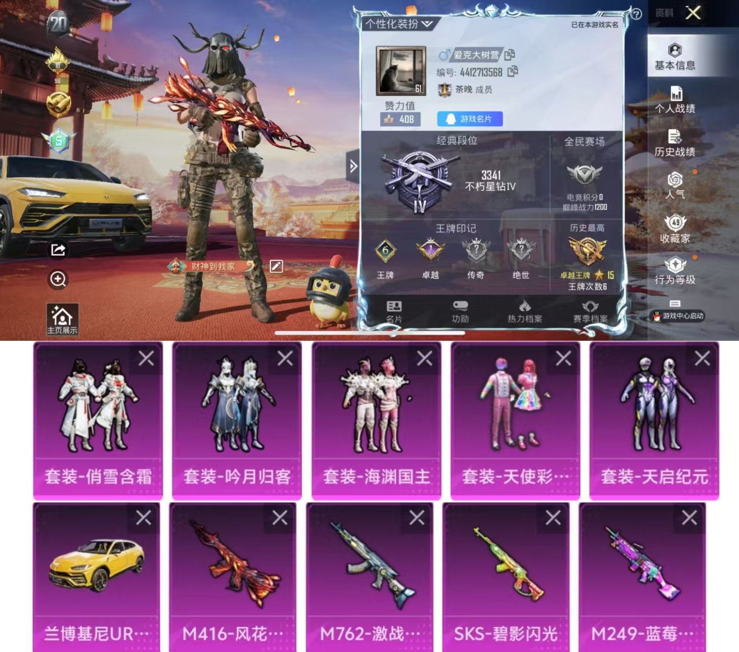 5粉装5特效枪1载具风花雪月蓝莓炮弹激战未来天使彩虹糖兰博基尼喜欢下单B1118#624262145299#【诚心卖服务: 卖家已购买诚心卖服务】 【按大区: 苹果QQ】 【有无防沉迷: 无防沉迷】 【实名情况: 可二次实名】
