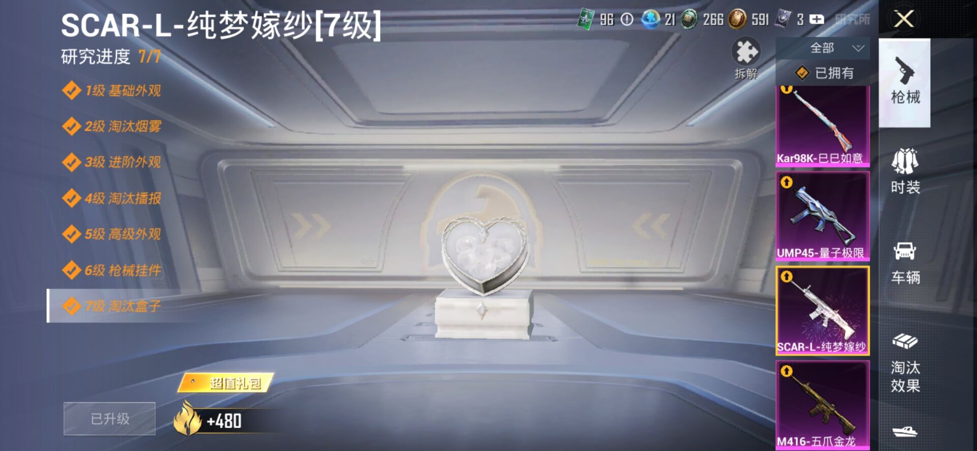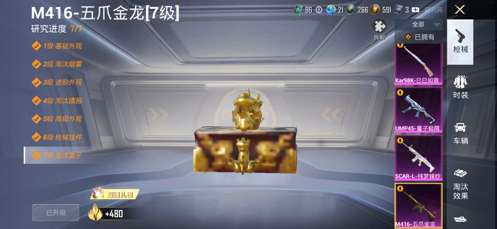 【优质枪皮肤】 M416-五爪金龙 SCAR-L-纯梦嫁纱 UMP45-量子极限