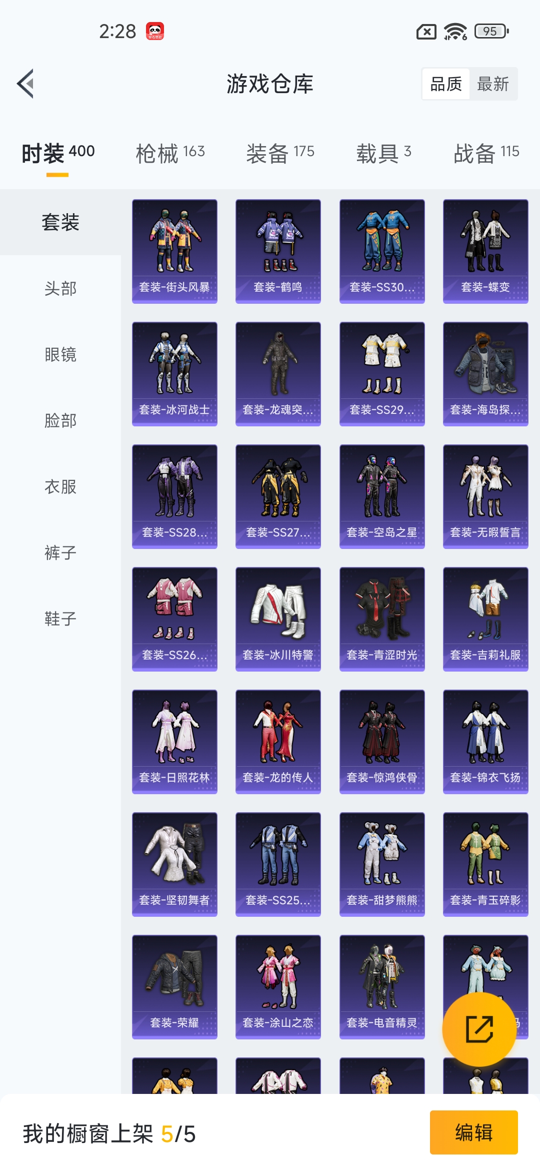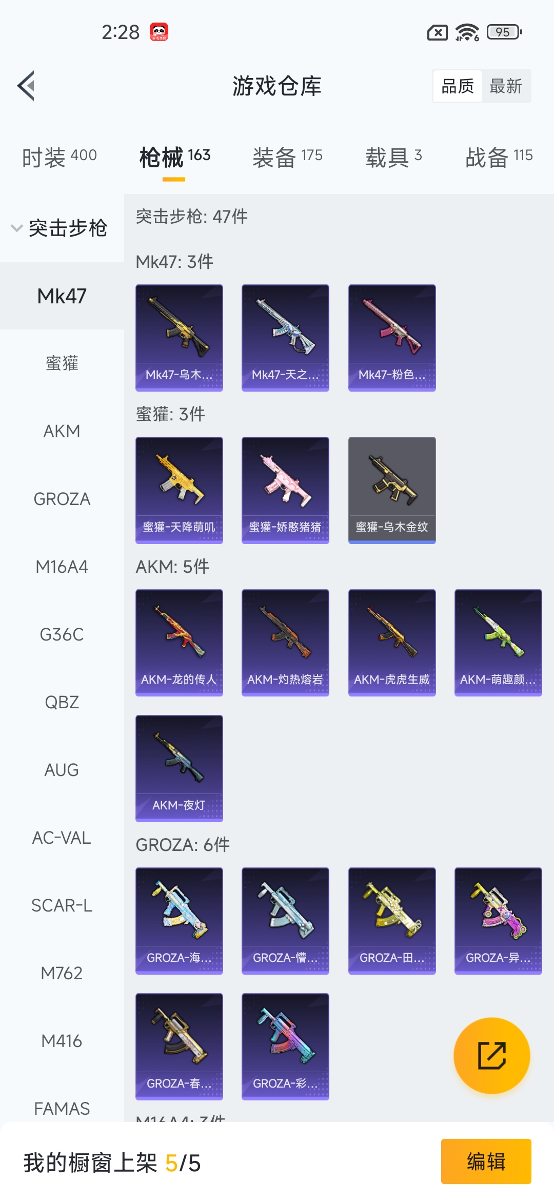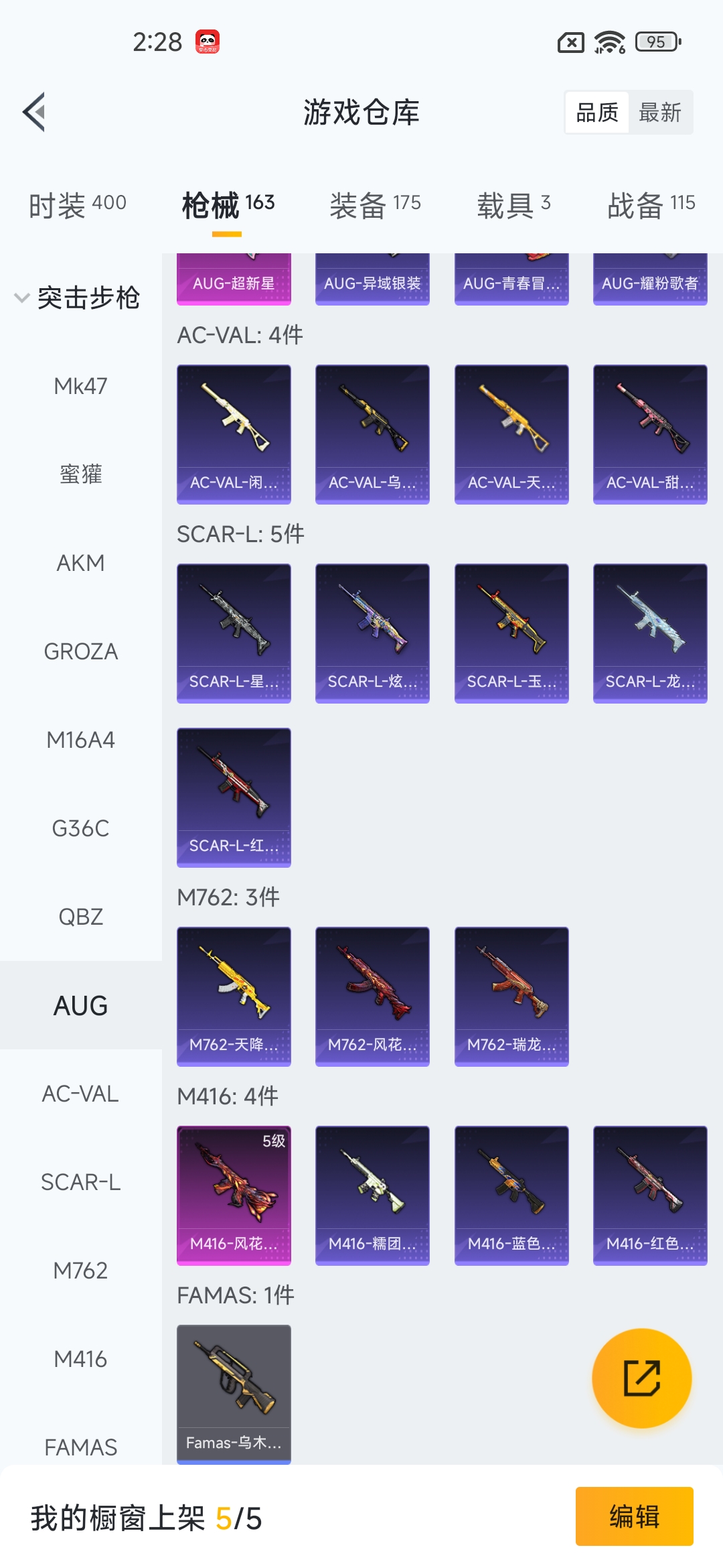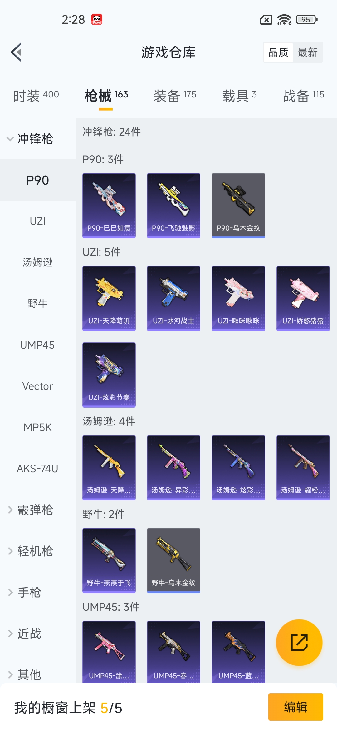 【5特效枪】 Kar98K-巳巳如意 (5级) DP-28-豹影疾电 (4级) AUG-超新星 (7级) M416-风花雪月 (5级) M249-蓝莓炮弹 (5级)