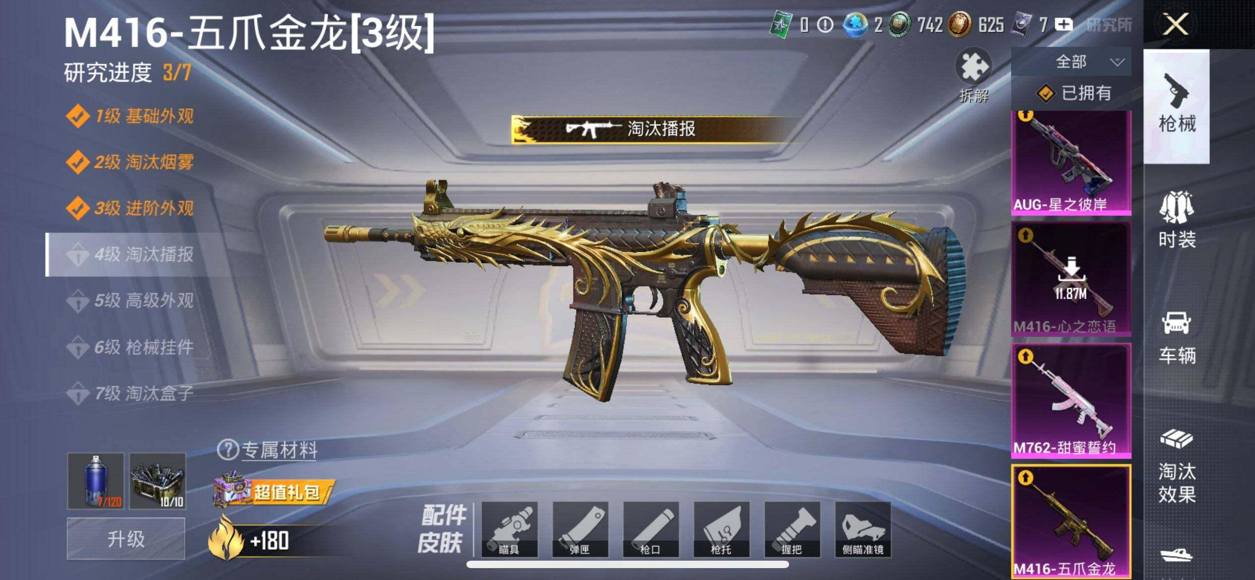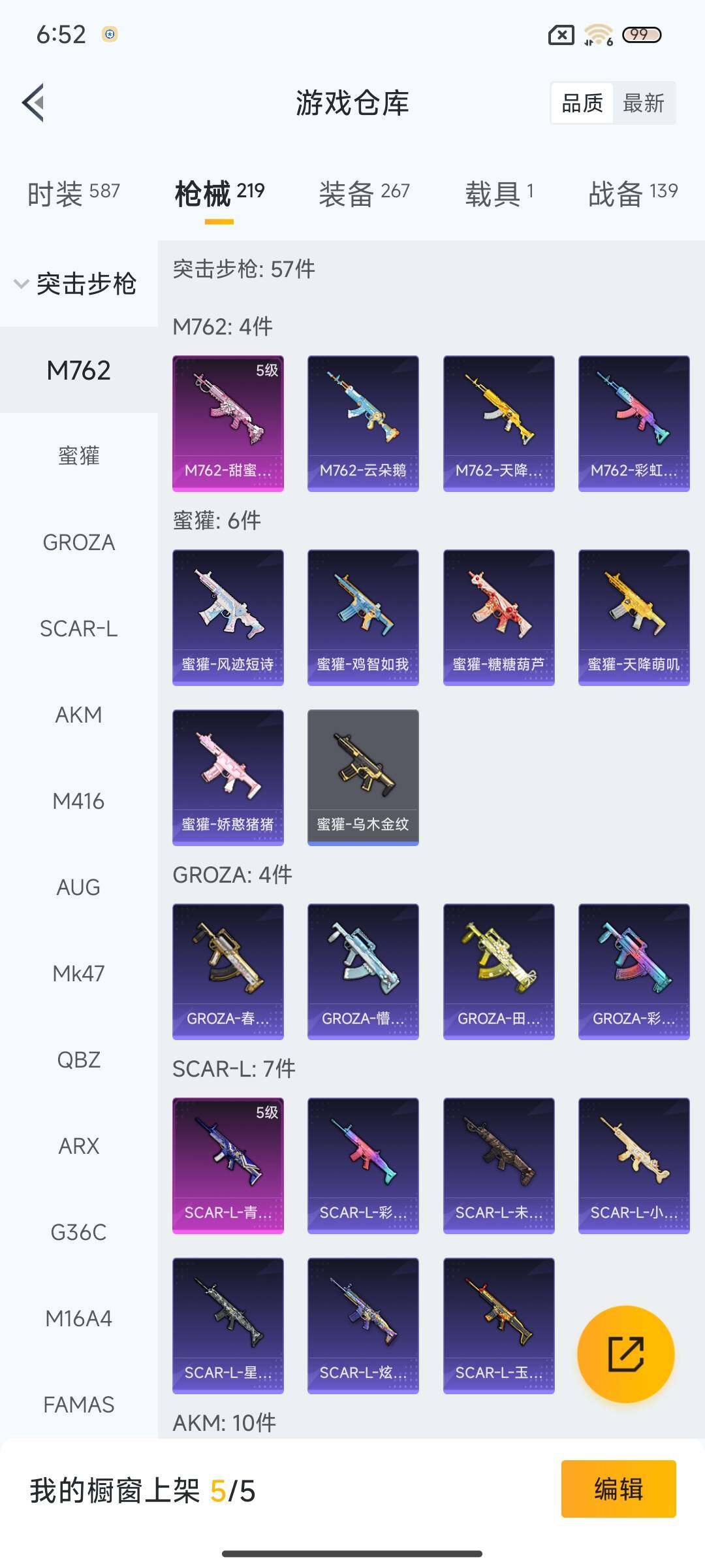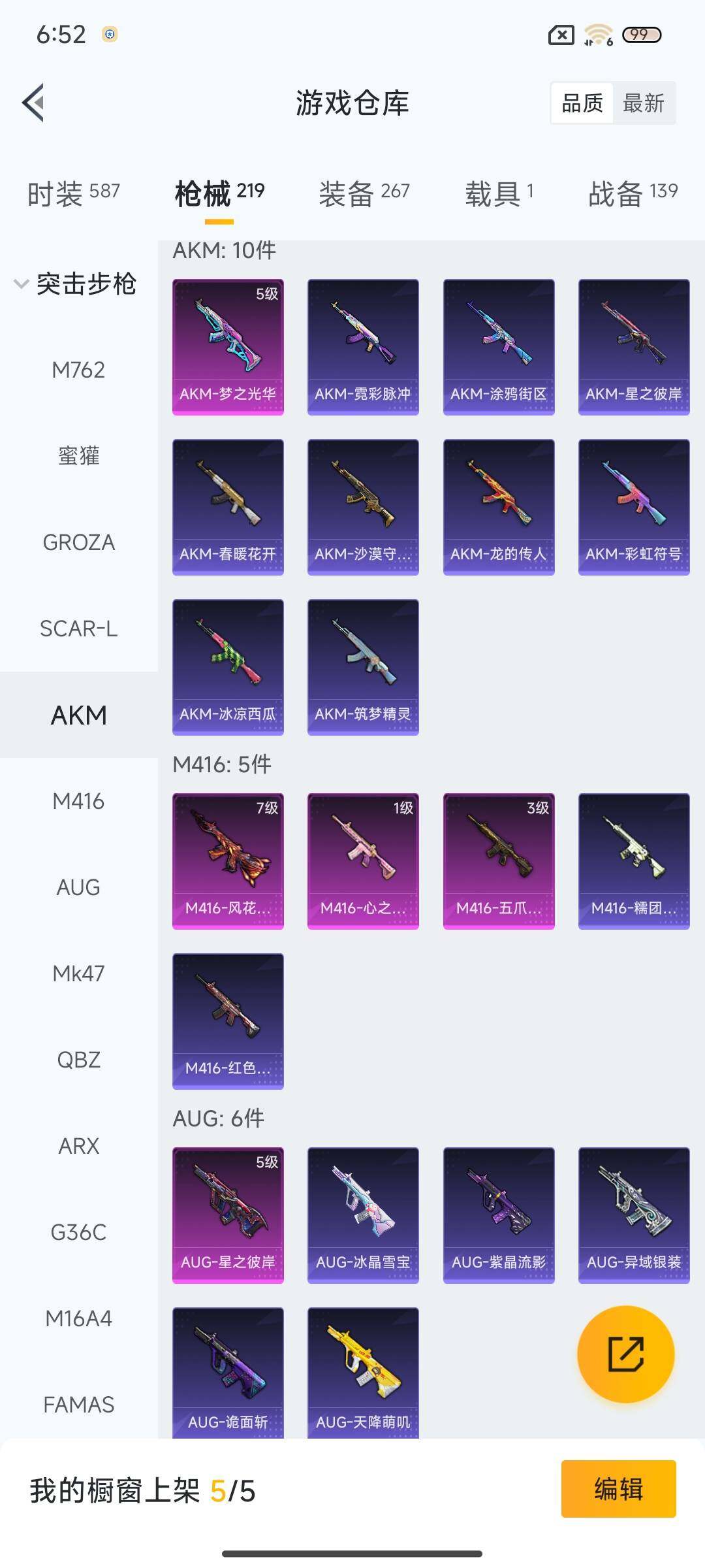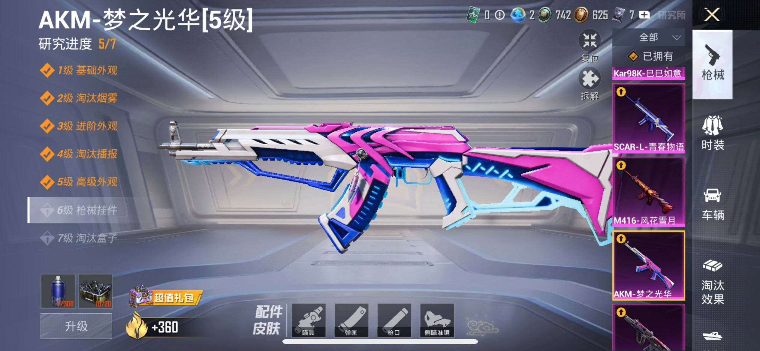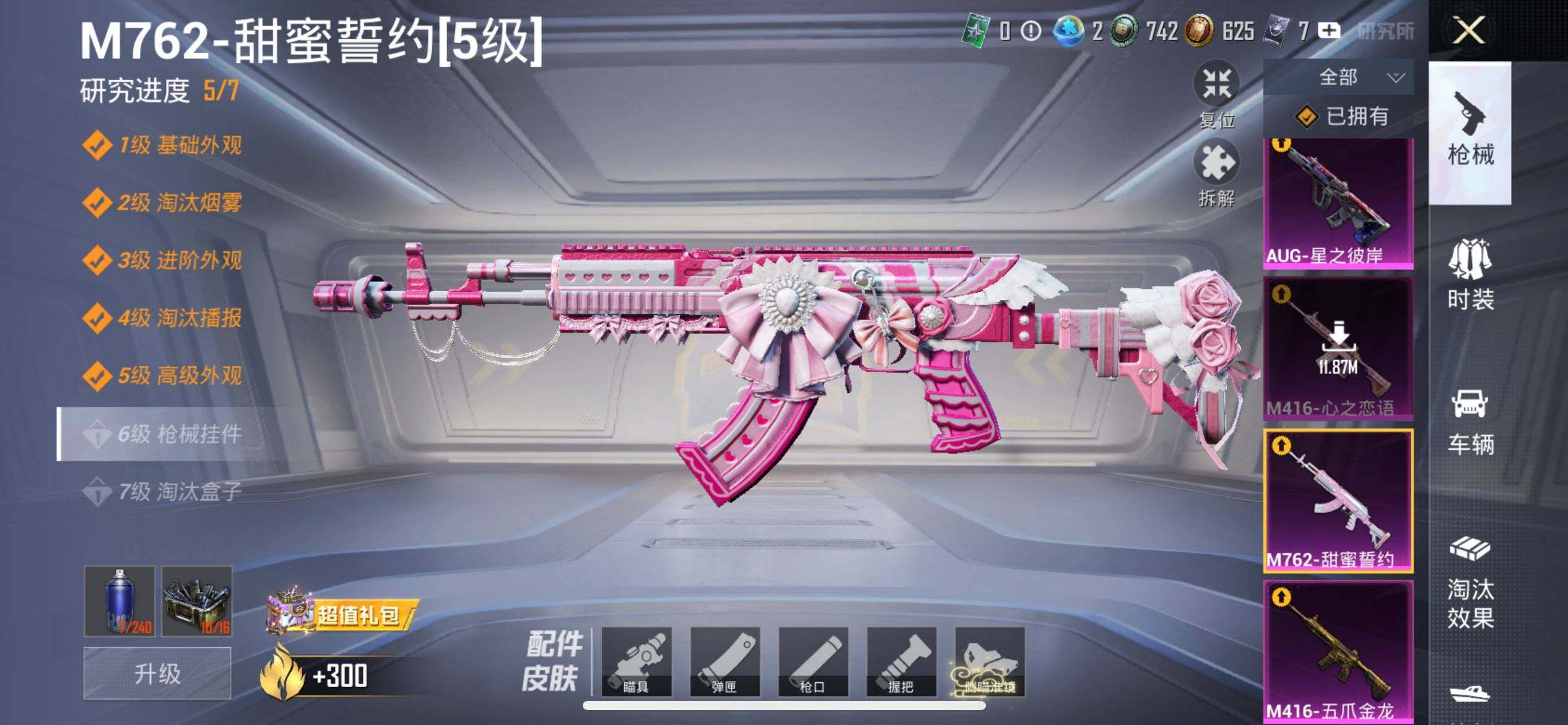 【优质枪皮肤】 AKM-梦之光华 SCAR-L-青春物语 M416-五爪金龙 M416-心之恋语 M416-风花雪月 AUG-星之彼岸 M762-甜蜜誓约 Kar98K-巳巳如意