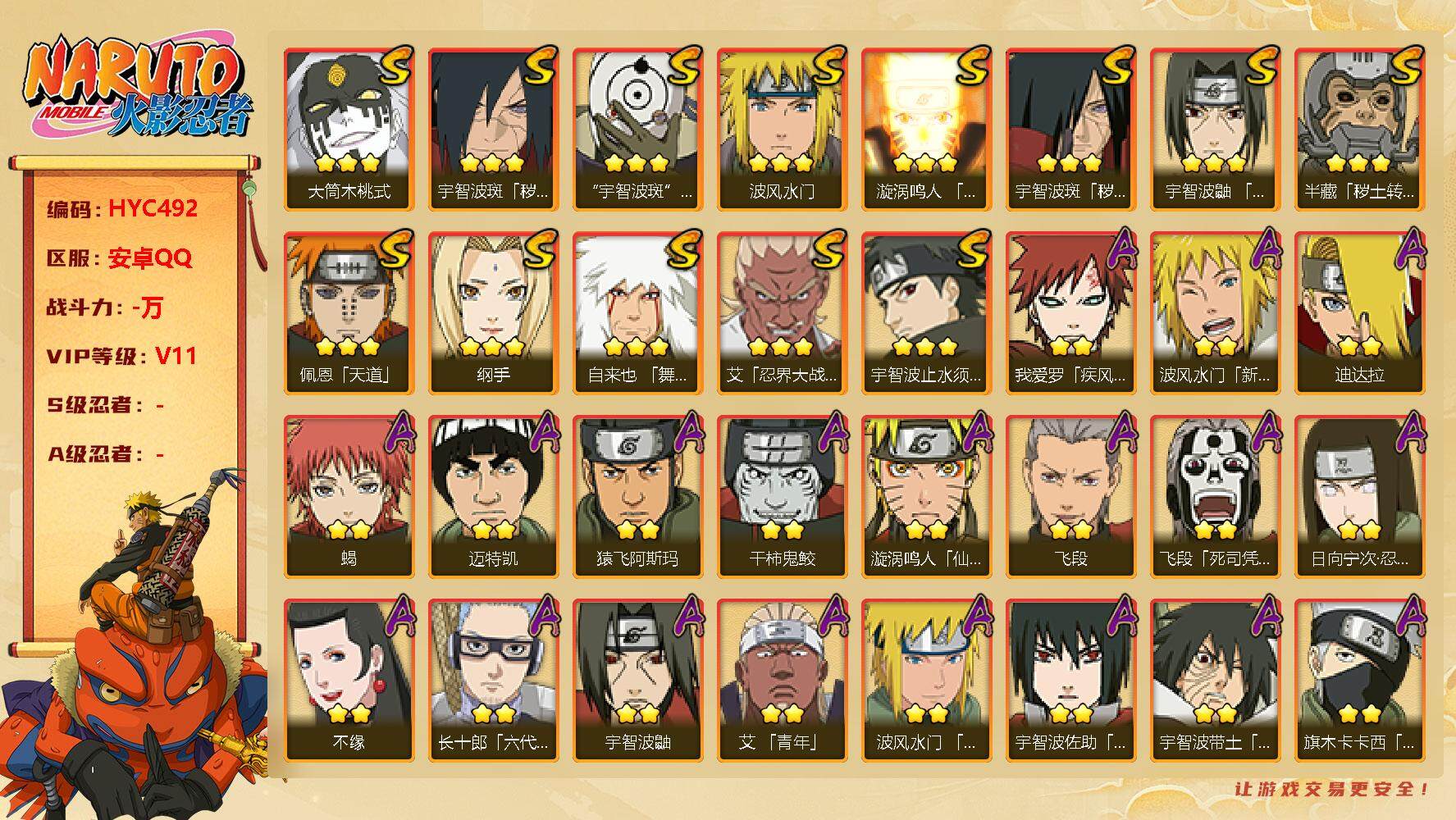 【HYC492】V11/秽土转生宇智波斑/波风水门-新春限定/2星旗木卡卡西「忍界大战」/纲手/2星我爱罗「疾风传」/2星照美冥「夏日泳装」/2星飞段「死司凭血」/宇智波鼬-新春限定/3星大筒木桃式/2星长十郎「六代目水影」/2星桃地再不斩「秽土转生」/白面具宇智波斑/宇智波带土-暴怒/2星迪达拉「秽土转生」/2星飞段/2星猿飞阿斯玛/2星宇智波佐助「万花筒写轮眼」/2星迪达拉/2星漩涡鸣人「九尾查克拉」/2星不动/2星不缘/2星日向宁次「忍界大战」/2星达鲁伊/2星宇智波鼬/2星迈特凯/2星蝎/天道佩恩/桃地再不斩-漂泊武士/波风水门/九喇嘛连结漩涡鸣人/2星秋道丁次「忍界大战」/2星漩涡博人「桃式显现」/2星李洛克「忍界大战」/波风水门-青年/舞之豪杰自来也/秽土转生半藏/3星宇智波止水「须佐能乎」/2星日向雏田「最终章」/2星漩涡鸣人「仙人模式」/2星宇智波鼬「夏日限定」/2星旗木卡卡西「幻之真容」/2星干柿鬼鲛/3星艾「忍界大战」/2星小南「漂泊浪客」/3星宇智波斑「秽土转生·解」/2星艾「青年」/宇智波佐助-须佐能乎/2星千代「近松十人卫」/须佐能乎宇智波鼬【按大区: 安卓QQ】