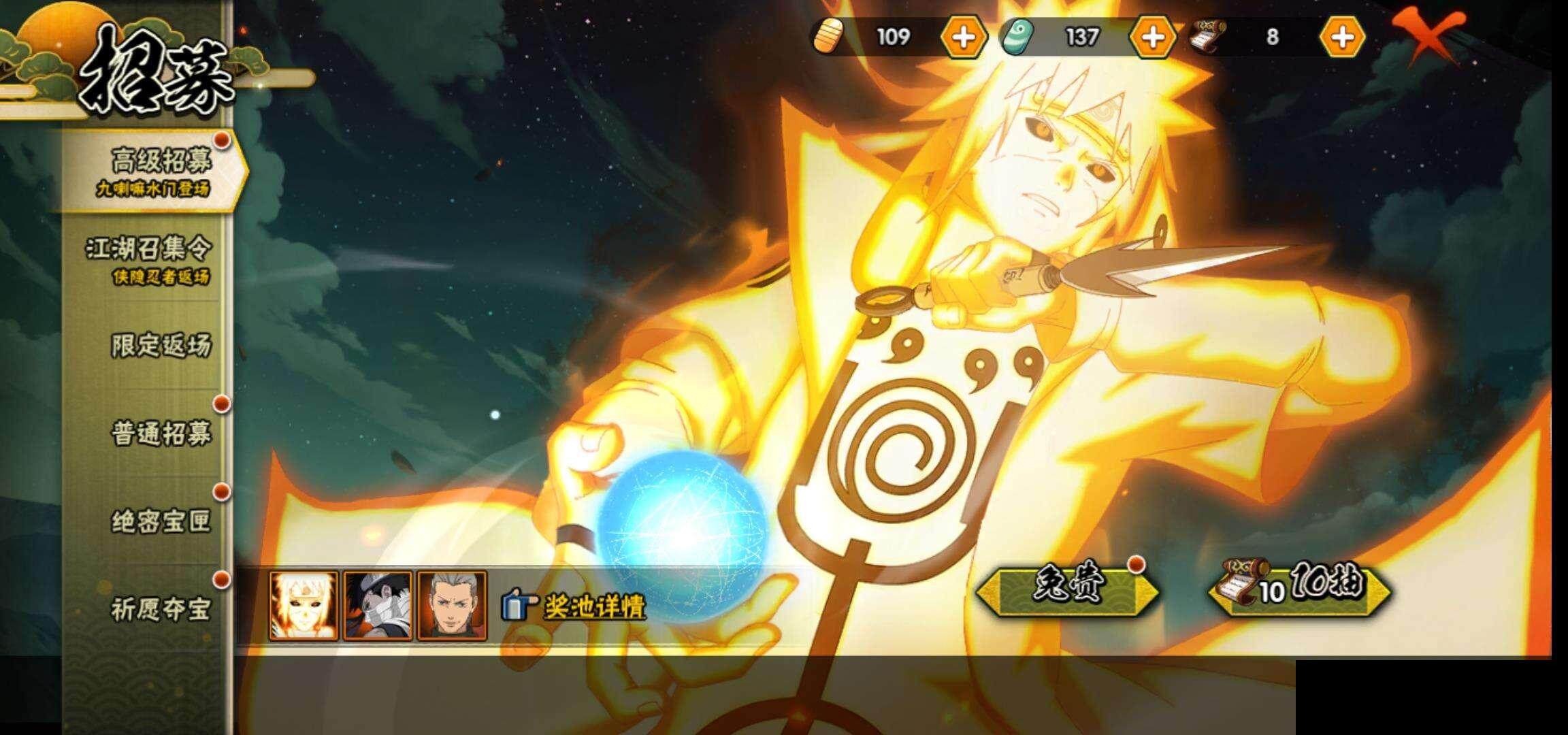 【S级忍者】 九喇嘛连结漩涡鸣人 舞之豪杰自来也 纲手 波风水门 秽土转生宇智波斑 须佐能乎宇智波鼬 白面具宇智波斑 秽土转生半藏 天道佩恩