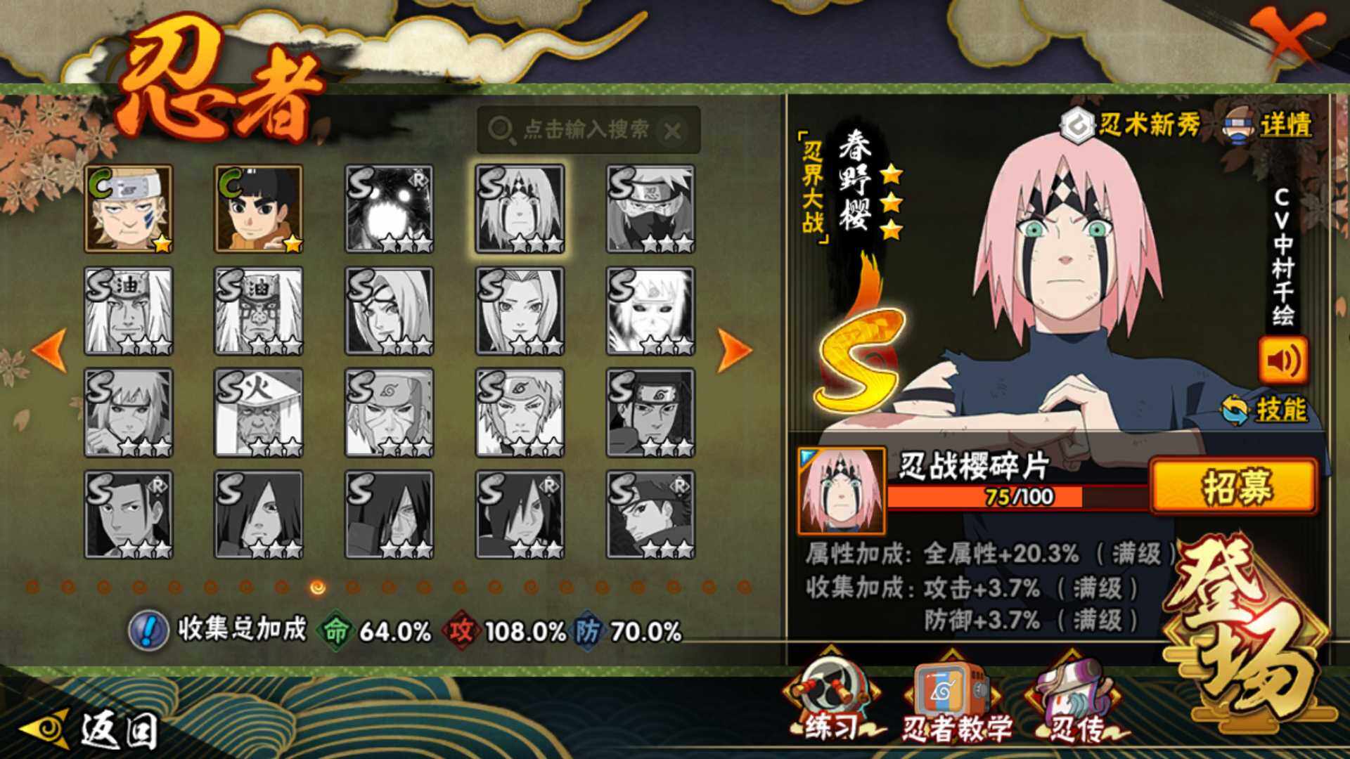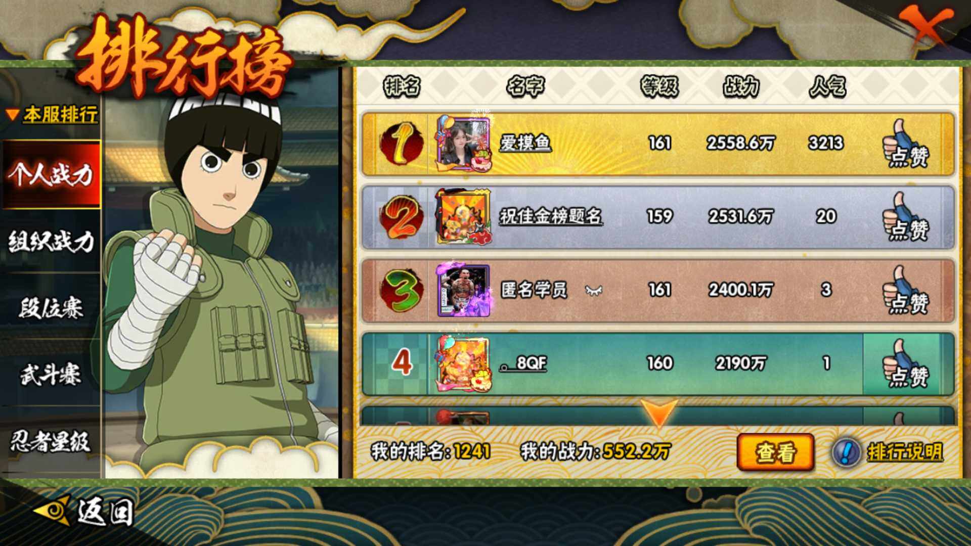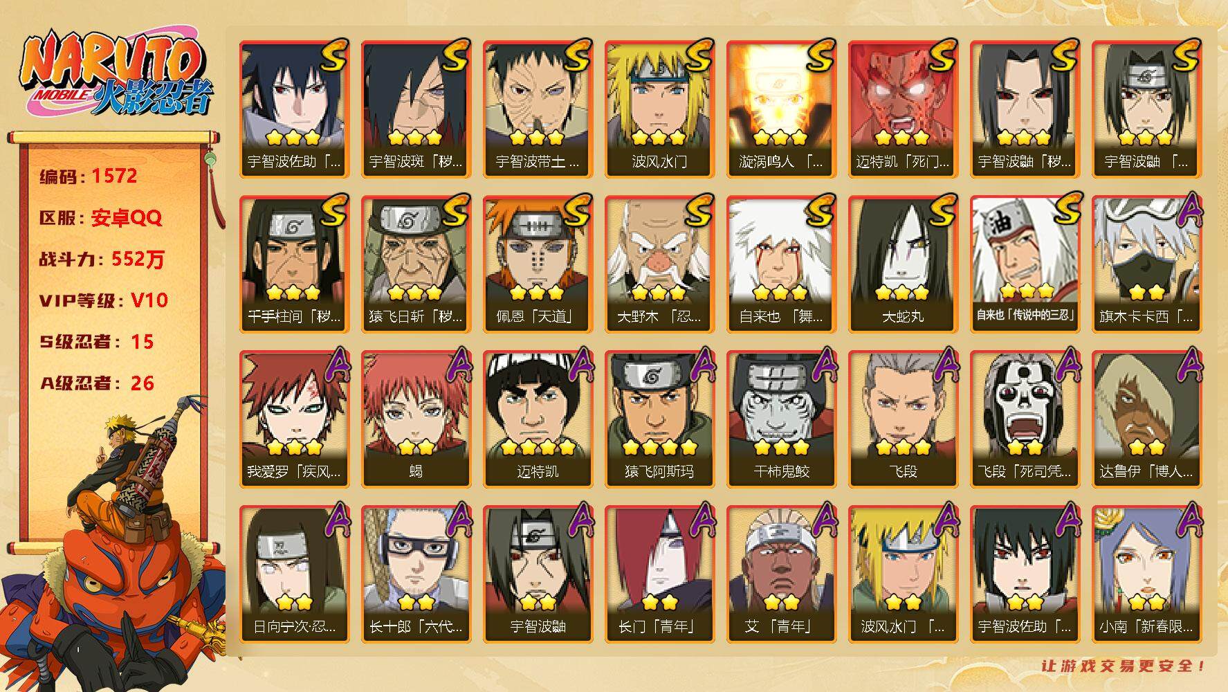 [12258013]V10 552万战力 15S级忍者数-26A级忍者数 忍战樱75片 卡卡西58片 九喇嘛水门66片 金式60片 TT1361