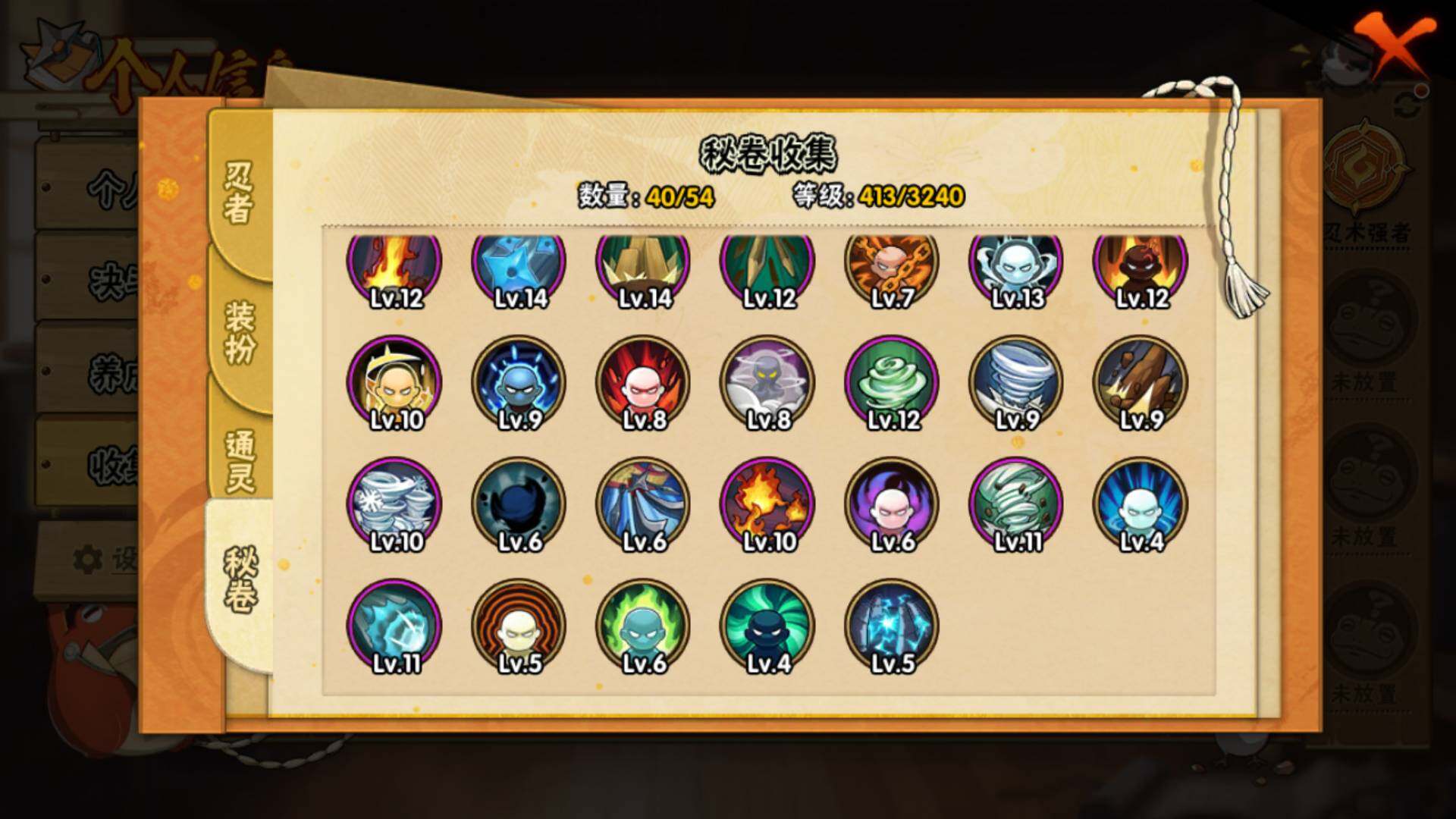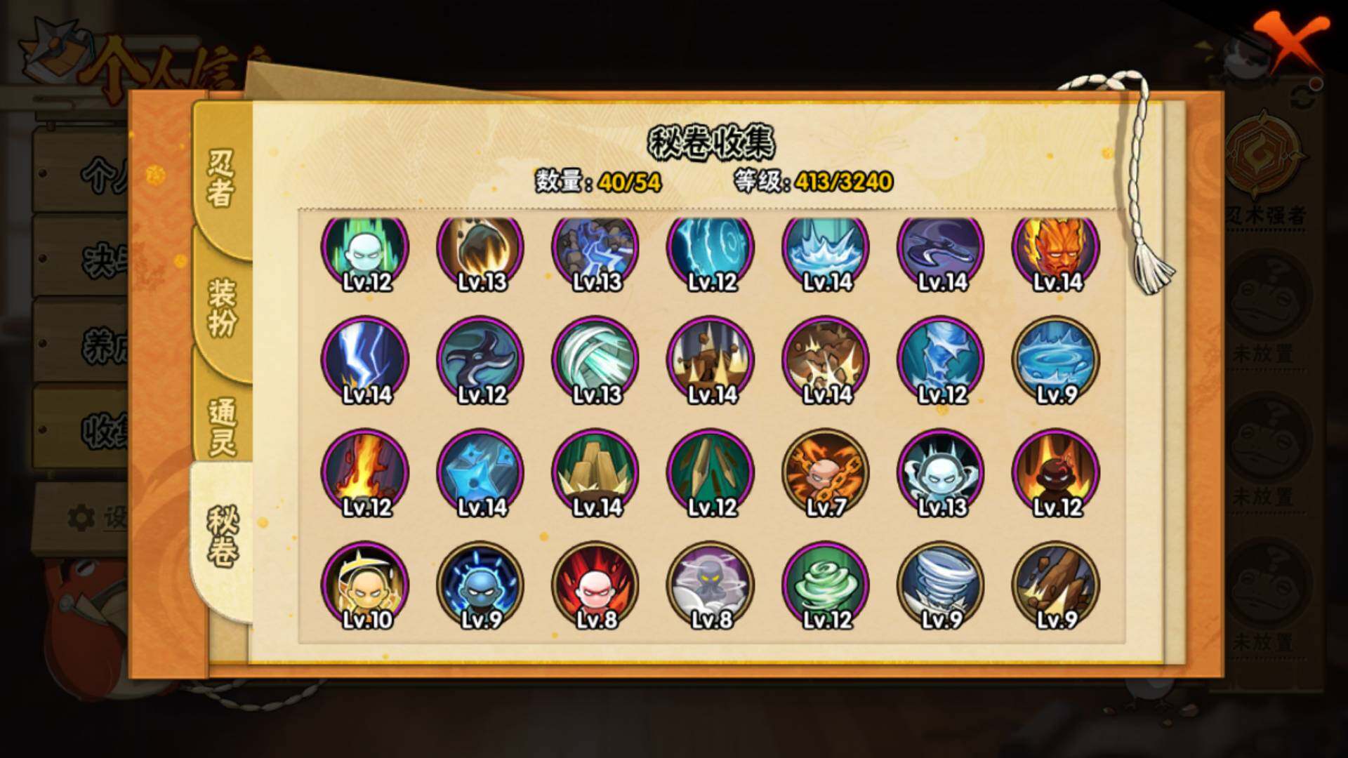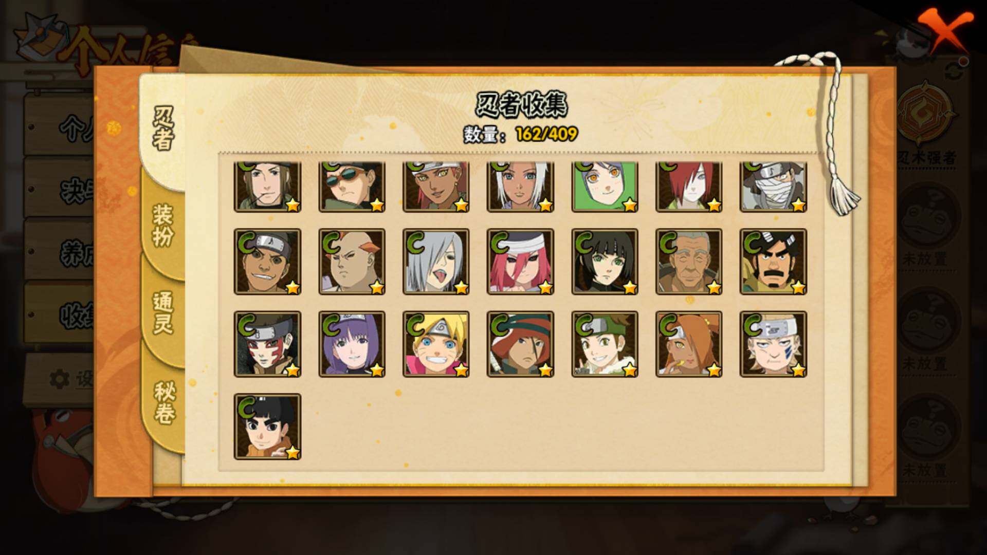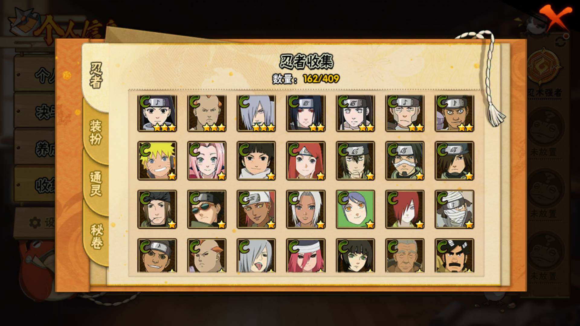 【S级忍者】:猿飞日斩「秽土转生」(3星),千手柱间「秽土转生」(3星),宇智波鼬「秽土转生」(3星),宇智波斑「秽土转生·解」(3星),大野木「忍界大战」(3星),宇智波带土「忍界大战」(3星),宇智波鼬「须佐能乎」(3星),自来也「舞之豪杰」(3星),大蛇丸(3星),自来也「传说中的三忍」(3星),波风水门(3星),漩涡鸣人「九喇嘛连结」(3星),迈特凯「死门」(3星),佩恩「天道」(3星),宇智波佐助「永恒万花筒」(3星)