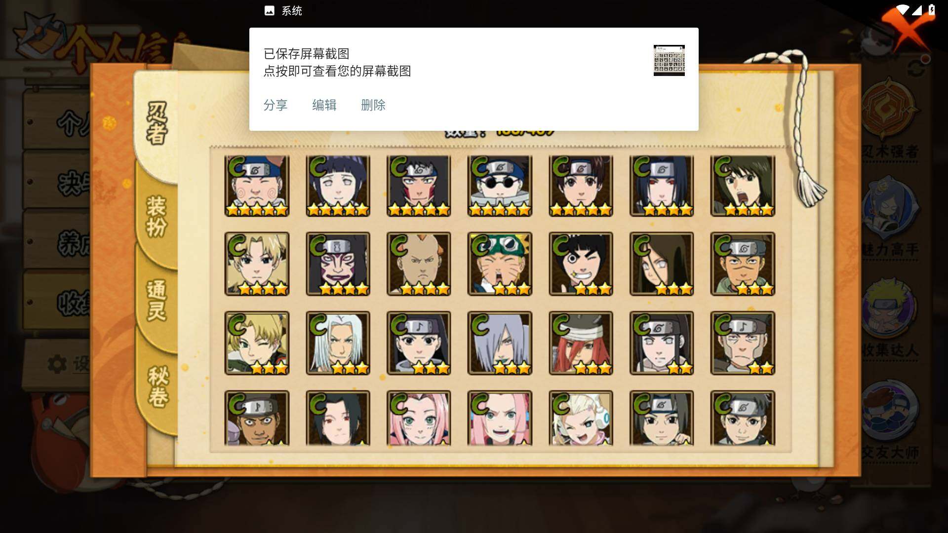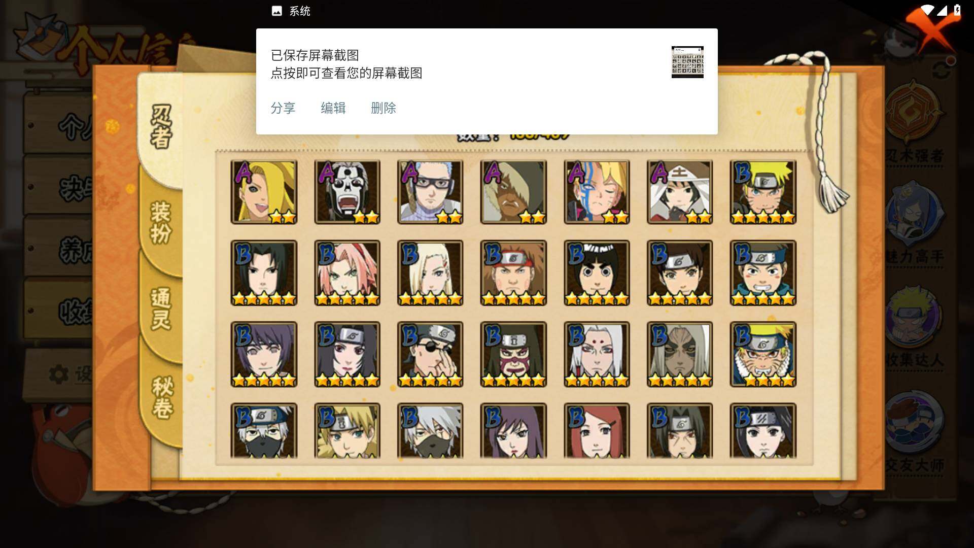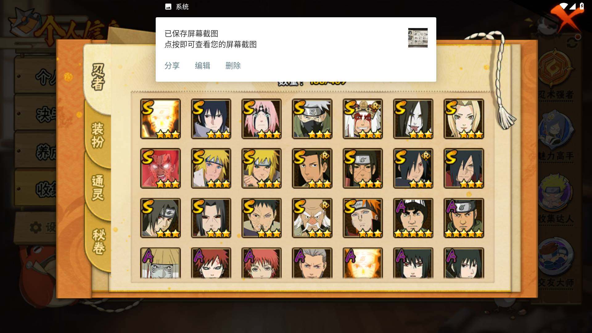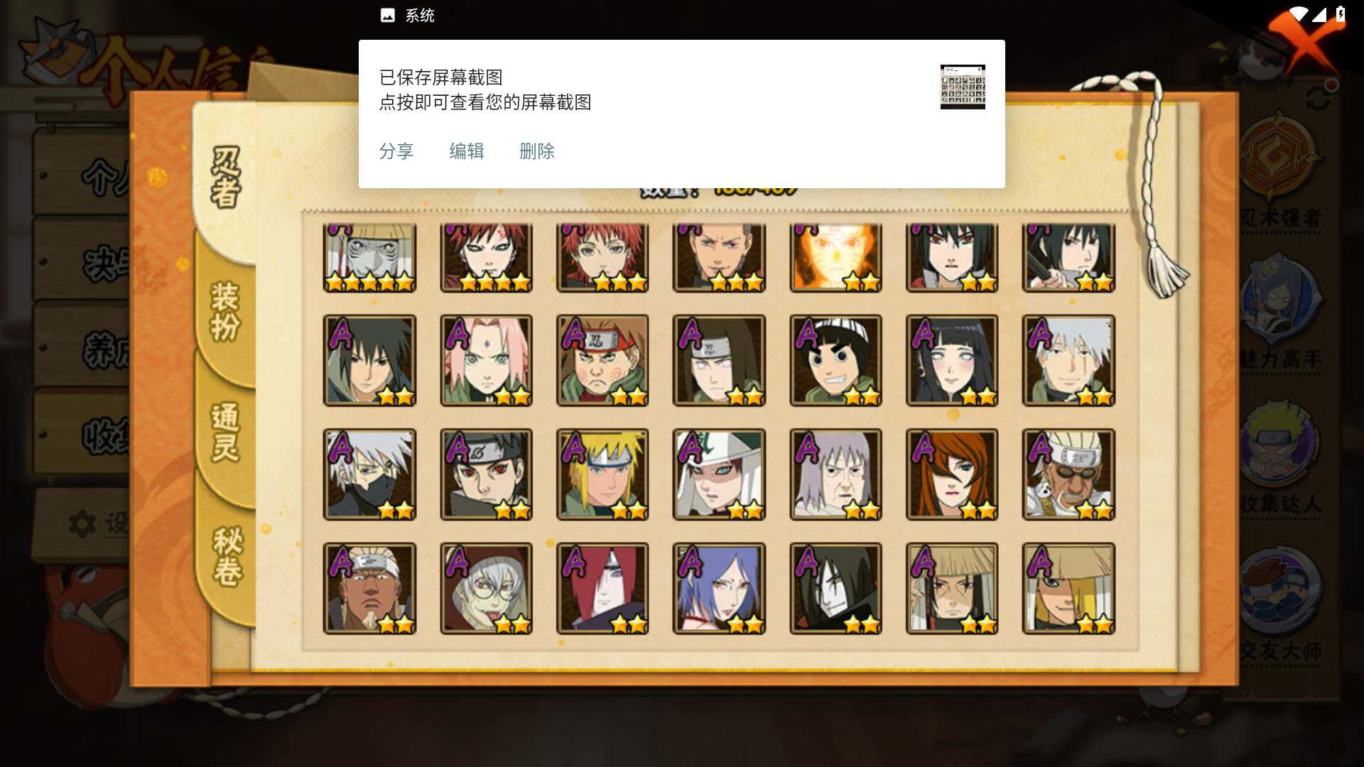 【A级忍者】:艾「青年」(2星),长门「青年」(2星),波风水门「青年」(2星),达鲁伊「博人传」(2星),迪达拉(2星),迪达拉「秽土转生」(2星),大蛇丸「晓」(2星),奇拉比「忍界大战」(2星),飞段(3星),飞段「死司凭血」(2星),干柿鬼鲛(5星),漩涡博人「桃式显现」(2星),漩涡鸣人「九尾查克拉」(2星),迈特凯(5星),旗木卡卡西「万花筒写轮眼」(2星),旗木卡卡西「幻之真容」(2星),我爱罗「疾风传」(4星),我爱罗「忍界大战」(2星),蝎(3星),小南「漂泊浪客」(2星),猿飞阿斯玛(5星),宇智波止水(2星),宇智波鼬(2星),宇智波佐助「须佐能乎」(2星),宇智波佐助「万花筒写轮眼」(2星),药师兜「半蛇斗篷」(2星),照美冥「五代目水影」(2星),日向宁次「忍界大战」(2星),日向雏田「最终章」(2星),长十郎「六代目水影」(2星),李洛克「忍界大战」(2星),黑土「博人传」(2星),春野樱「百豪」(2星),秋道丁次「忍界大战」(2星),千代「近松十人卫」(2星),宇智波泉奈(2星)【二次: 不可二次实名】