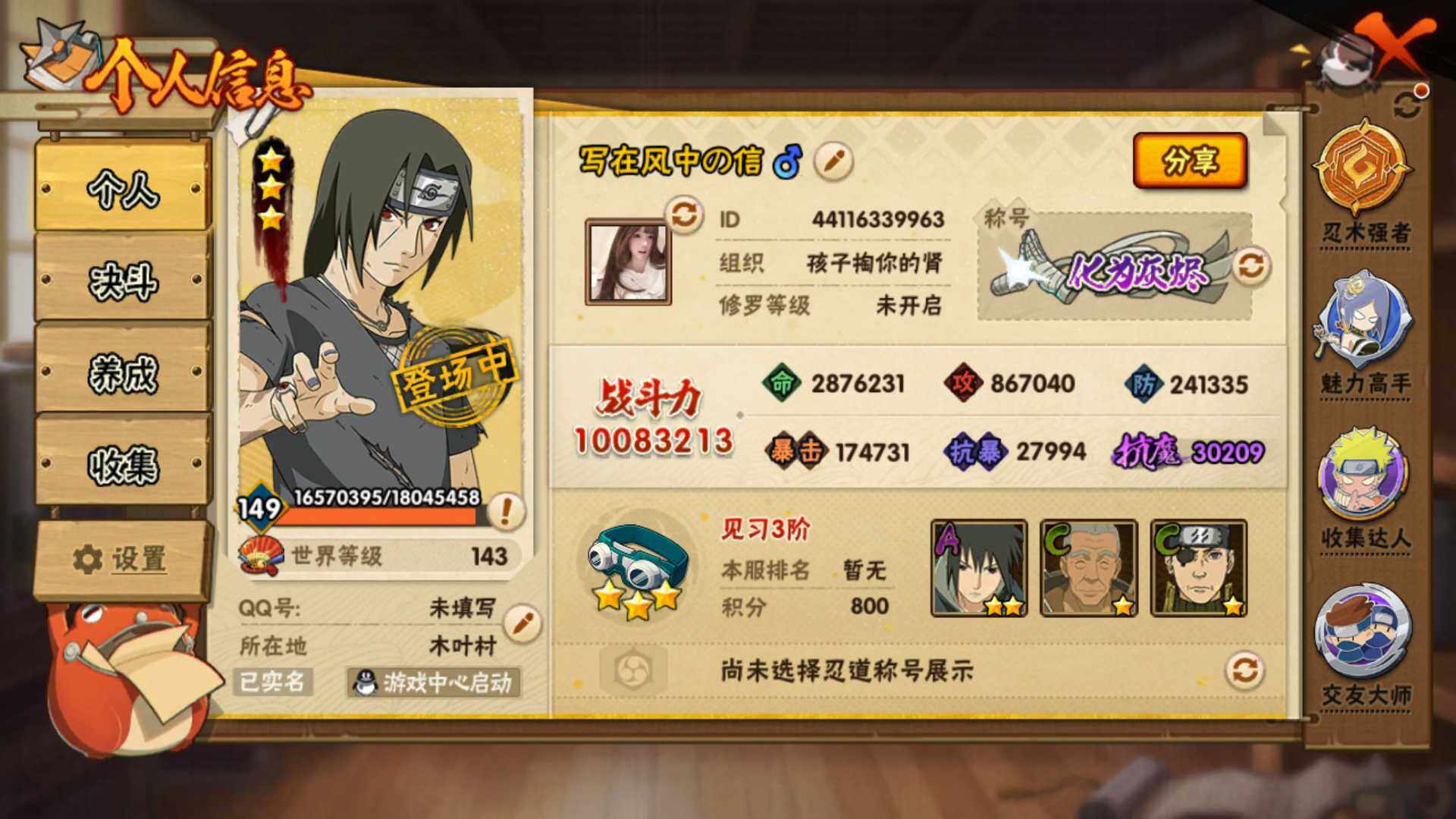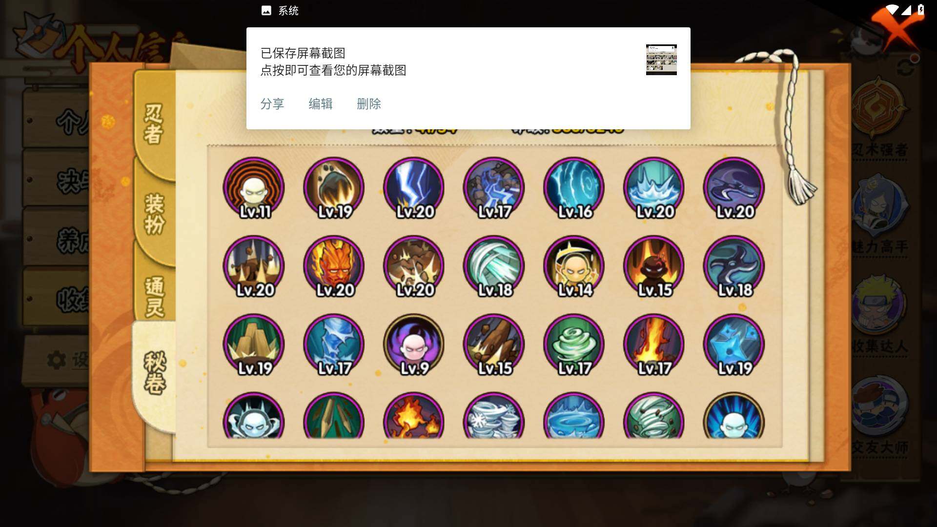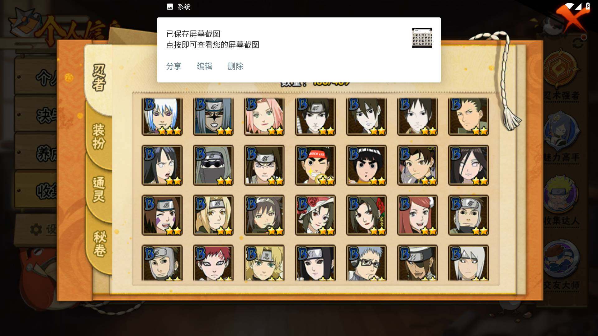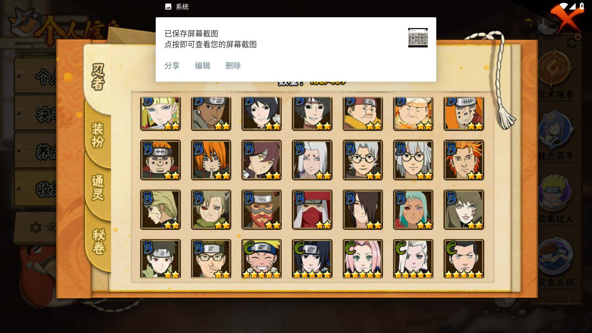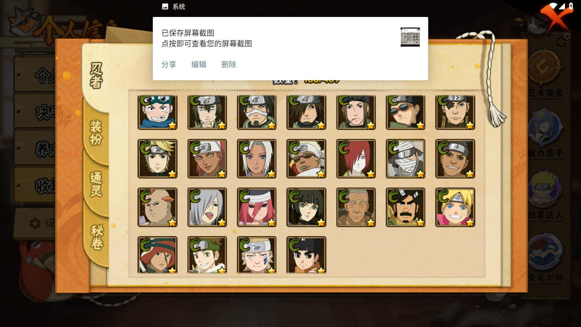 【A级忍者】:艾「青年」(2星),长门「青年」(2星),波风水门「青年」(2星),达鲁伊「博人传」(2星),迪达拉(2星),迪达拉「秽土转生」(2星),大蛇丸「晓」(2星),奇拉比「忍界大战」(2星),飞段(3星),飞段「死司凭血」(2星),干柿鬼鲛(5星),漩涡博人「桃式显现」(2星),漩涡鸣人「九尾查克拉」(2星),迈特凯(5星),旗木卡卡西「万花筒写轮眼」(2星),旗木卡卡西「幻之真容」(2星),我爱罗「疾风传」(4星),我爱罗「忍界大战」(2星),蝎(3星),小南「漂泊浪客」(2星),猿飞阿斯玛(5星),宇智波止水(2星),宇智波鼬(2星),宇智波佐助「须佐能乎」(2星),宇智波佐助「万花筒写轮眼」(2星),药师兜「半蛇斗篷」(2星),照美冥「五代目水影」(2星),日向宁次「忍界大战」(2星),日向雏田「最终章」(2星),长十郎「六代目水影」(2星),李洛克「忍界大战」(2星),黑土「博人传」(2星),春野樱「百豪」(2星),秋道丁次「忍界大战」(2星),千代「近松十人卫」(2星),宇智波泉奈(2星)【二次: 不可二次实名】