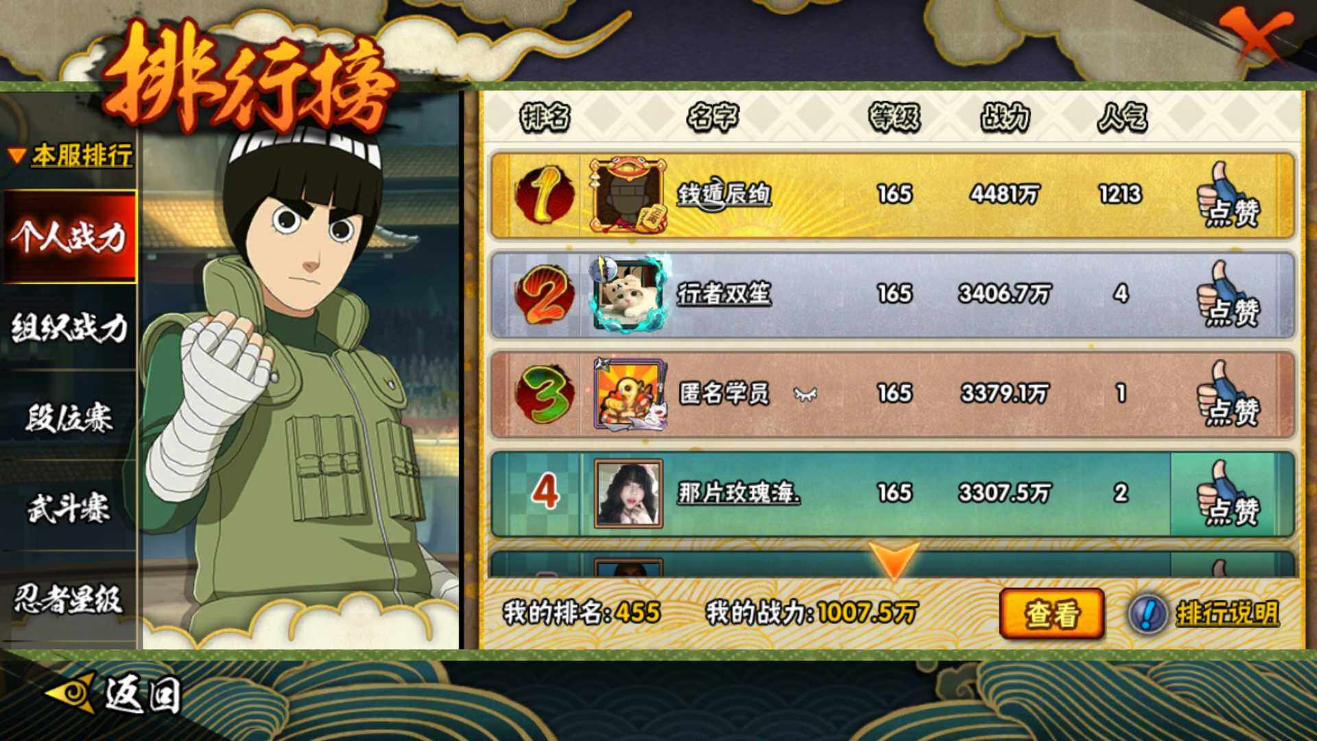 【S级忍者】 秽土转生波风水门 秽土转生千手柱间 秽土转生宇智波鼬 忍界大战宇智波带土 须佐能乎宇智波鼬 木叶创立宇智波斑 大蛇丸 纲手 波风水门 九喇嘛连结漩涡鸣人 死门迈特凯 天道佩恩