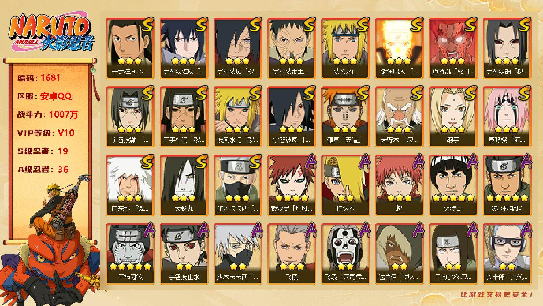 [12415768]v10 19S 36A 1000万战力 565点券 有熊猫 九喇嘛水门64片 天道超48片 无45片 zp3167