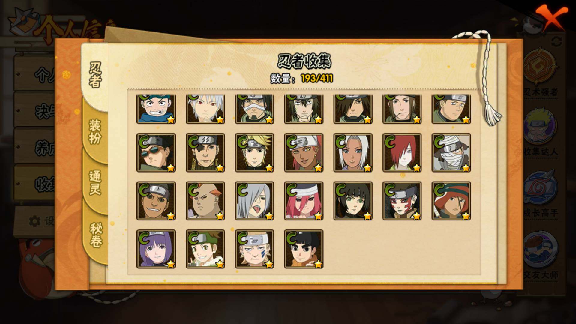 【A级忍者】:艾「青年」(2星),长门「青年」(2星),波风水门「青年」(2星),达鲁伊「博人传」(2星),迪达拉(2星),大蛇丸「晓」(2星),奇拉比(2星),飞段(3星),飞段「死司凭血」(2星),干柿鬼鲛(5星),漩涡博人「桃式显现」(2星),漩涡鸣人「九尾查克拉」(2星),迈特凯(5星),旗木卡卡西「幻之真容」(2星),桃地再不斩「秽土转生」(2星),我爱罗「疾风传」(3星),蝎(5星),蝎「绯流琥」(2星),角都「晓创生」(2星),角都「秽土转生」(2星),猿飞阿斯玛(5星),宇智波鼬(2星),宇智波佐助「须佐能乎」(2星),宇智波佐助「万花筒写轮眼」(2星),照美冥「五代目水影」(2星),日向宁次「忍界大战」(2星),宇智波带土「暴怒」(2星),长十郎「六代目水影」(2星),李洛克「忍界大战」(2星),黑土「博人传」(2星),秋道丁次「忍界大战」(2星),千代「近松十人卫」(2星),宇智波泉奈(2星)【二次: 可二次实名】