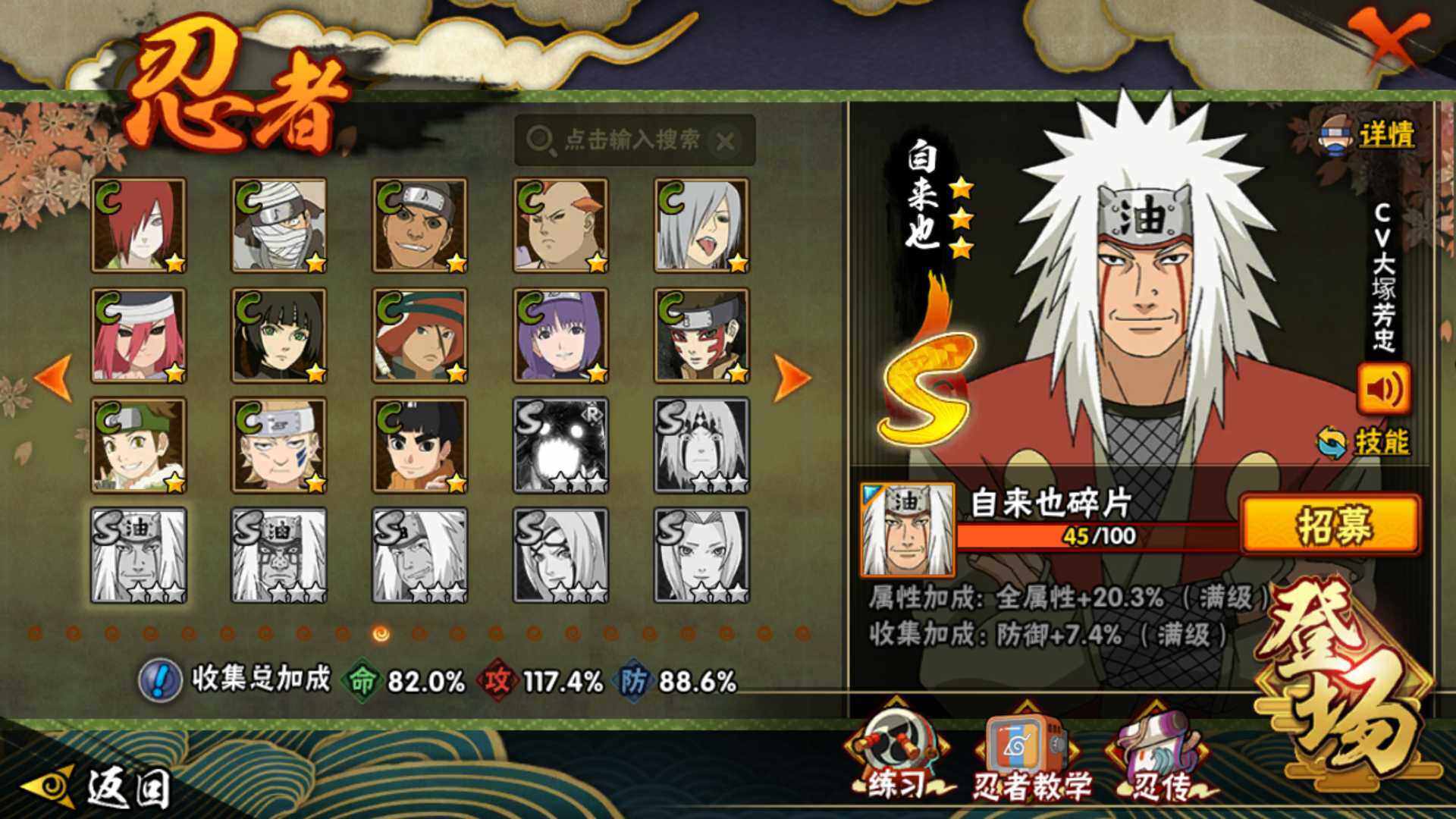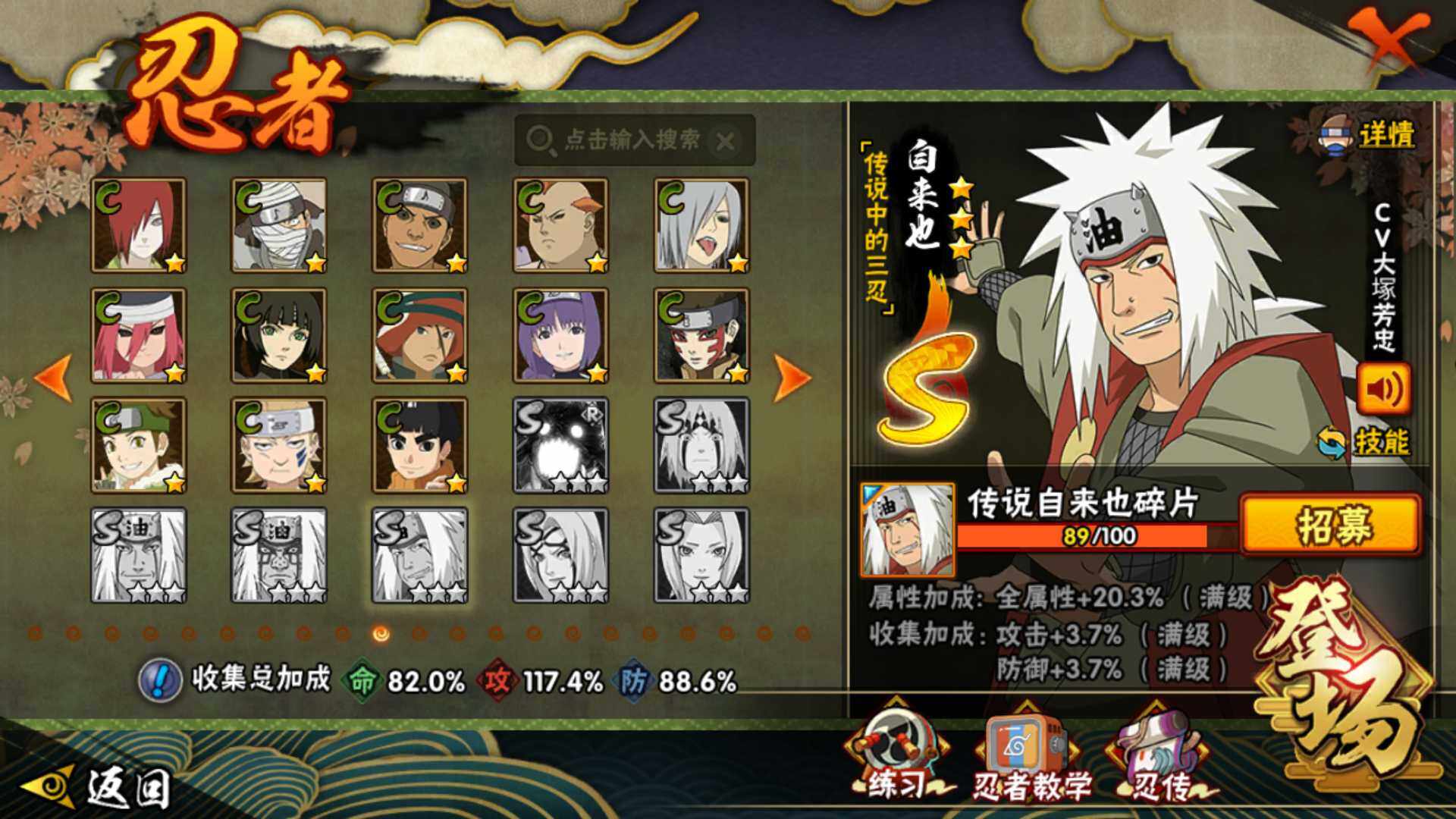 [13192412]V8 978万战力 15S级忍者数-33A级忍者数 自来也45片 传说自来也89片 木叶创立斑80片 舍人70片 LL5302