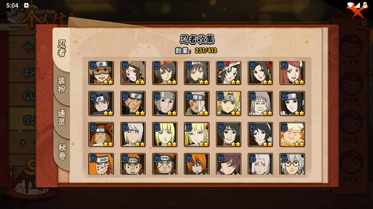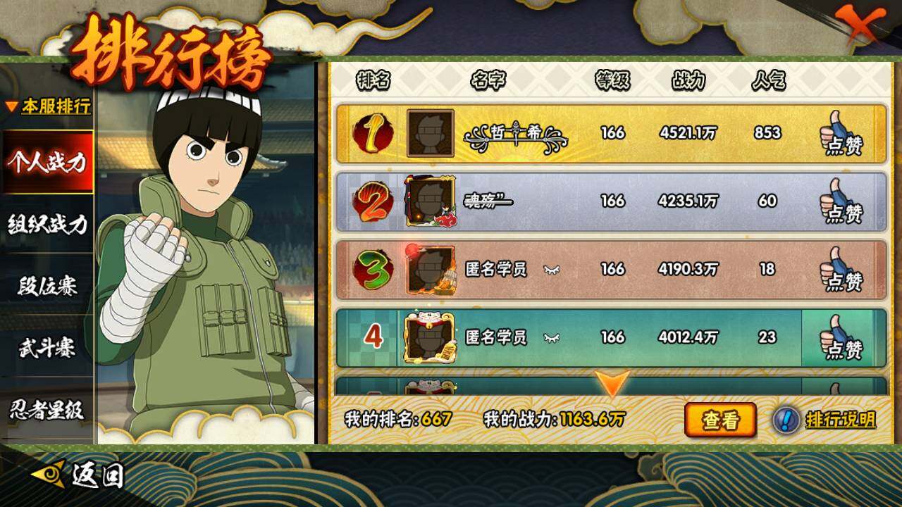 【A级忍者】:艾「青年」(2星),长门「青年」(2星),波风水门「青年」(2星),达鲁伊「博人传」(2星),迪达拉(2星),迪达拉「新春限定」(2星),迪达拉「秽土转生」(2星),大蛇丸「晓」(2星),奇拉比「忍界大战」(2星),飞段(4星),飞段「死司凭血」(3星),干柿鬼鲛(5星),漩涡博人「桃式显现」(2星),漩涡鸣人「九尾查克拉」(2星),迈特凯(5星),旗木卡卡西「万花筒写轮眼」(2星),旗木卡卡西「幻之真容」(2星),桃地再不斩(2星),桃地再不斩「秽土转生」(2星),我爱罗「疾风传」(4星),我爱罗「忍界大战」(2星),蝎(3星),蝎「绯流琥」(2星),小南(2星),小南「漂泊浪客」(2星),角都「晓创生」(2星),角都「秽土转生」(2星),猿飞阿斯玛(5星),宇智波止水(2星),猿飞日斩「火影继承人」(2星),宇智波鼬(2星),宇智波佐助「须佐能乎」(2星),宇智波佐助「万花筒写轮眼」(2星),药师兜「半蛇斗篷」(2星),照美冥「五代目水影」(2星),日向宁次「忍界大战」(2星),日向雏田「最终章」(2星),长十郎「六代目水影」(2星),李洛克「忍界大战」(2星),猿飞木叶丸「博人传」(2星),黑土「博人传」(2星),勘九郎「忍界大战」(2星),春野樱「百豪」(2星),秋道丁次「忍界大战」(2星),千代「近松十人卫」(2星),神农「羁绊」(2星),土台「忍界大战」(2星),宇智波泉奈(2星),不动(2星),大野木「侠隐江湖」(2星)【二次: 不可二次实名】
