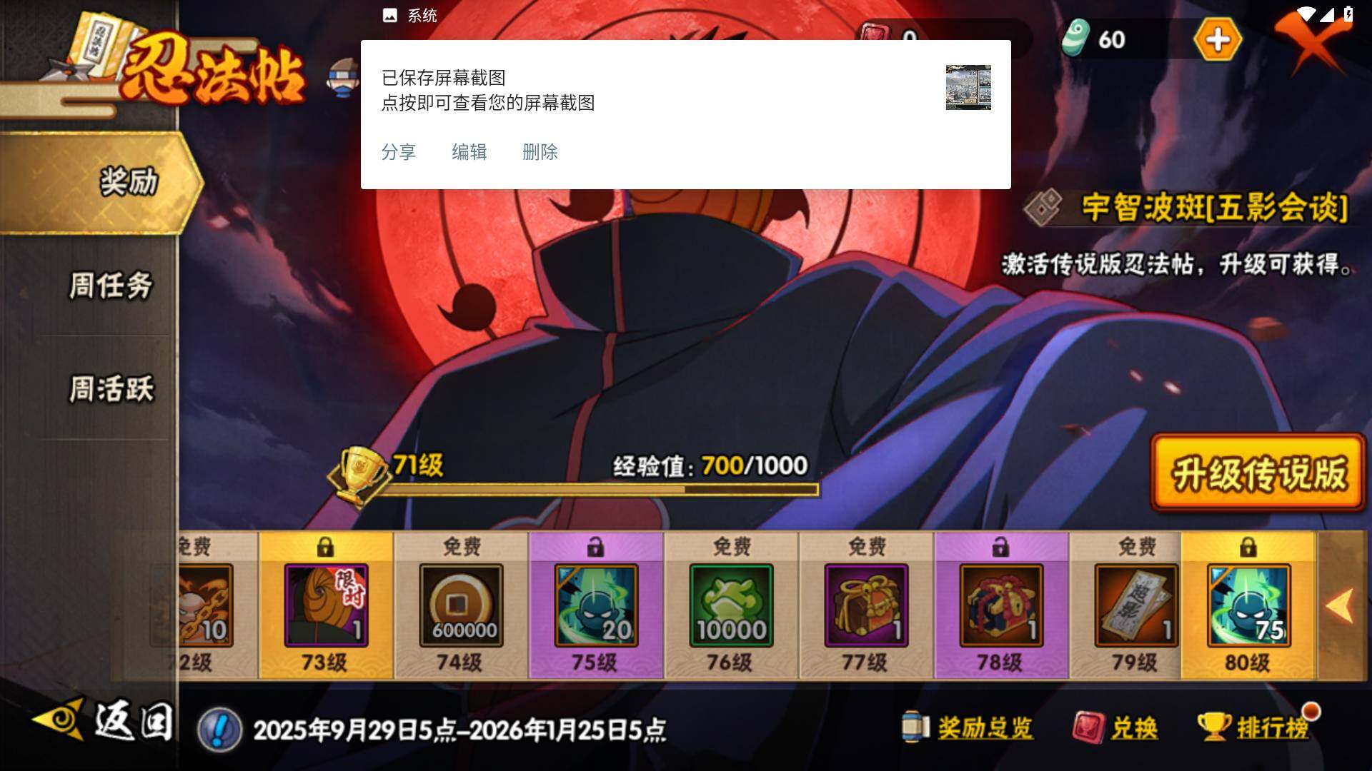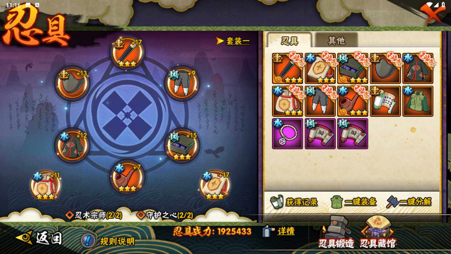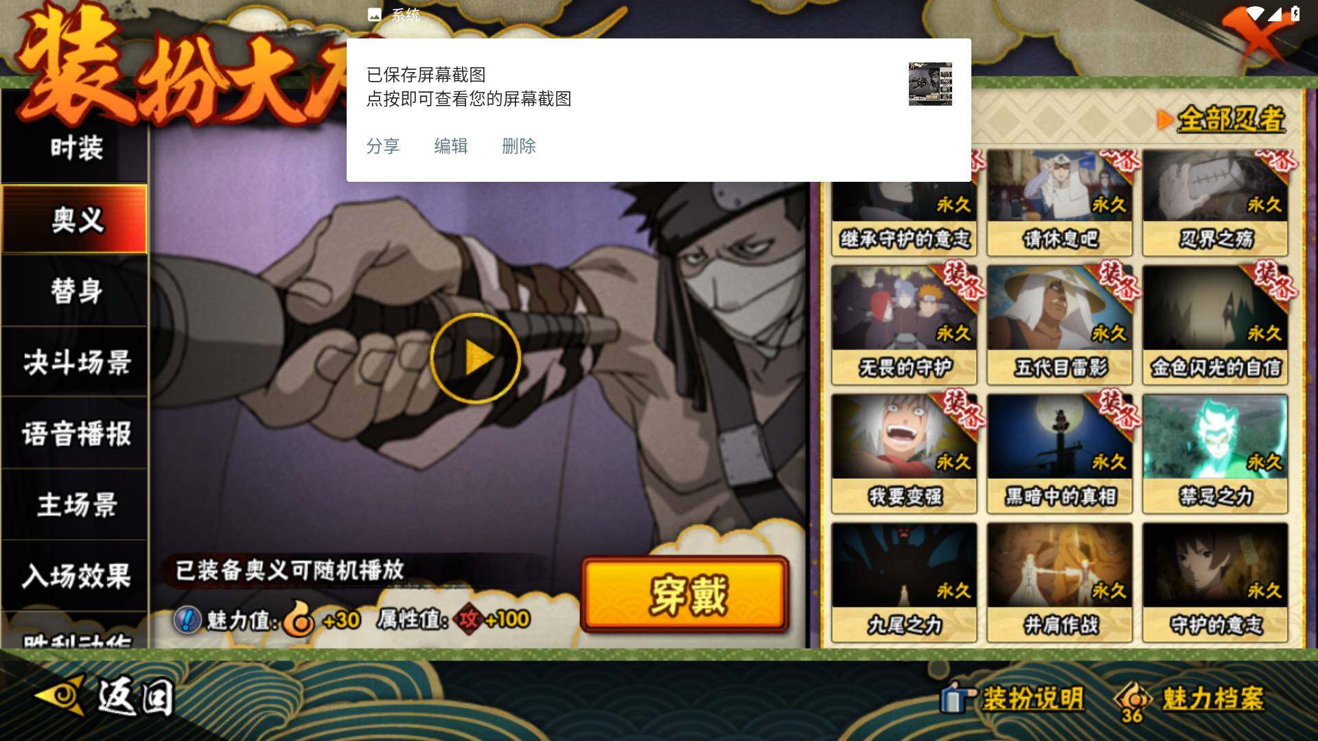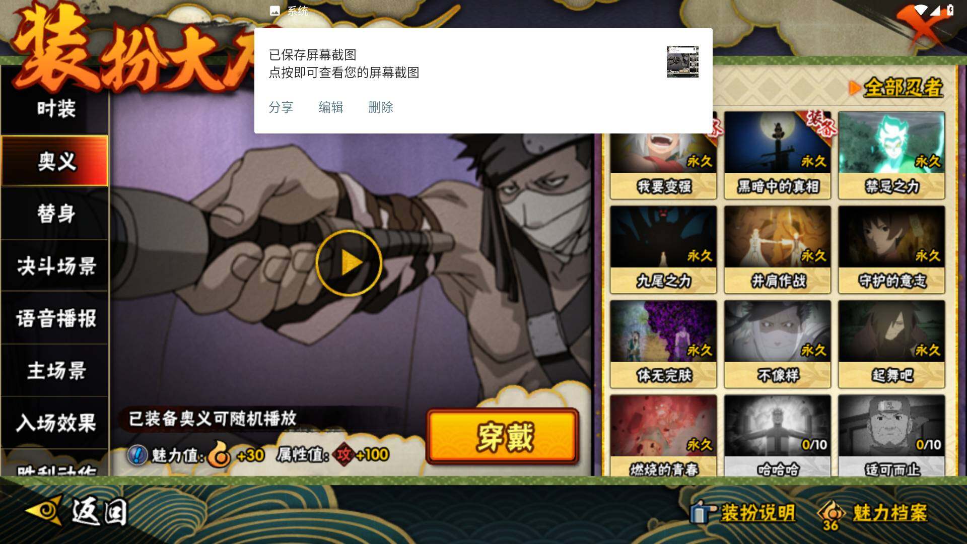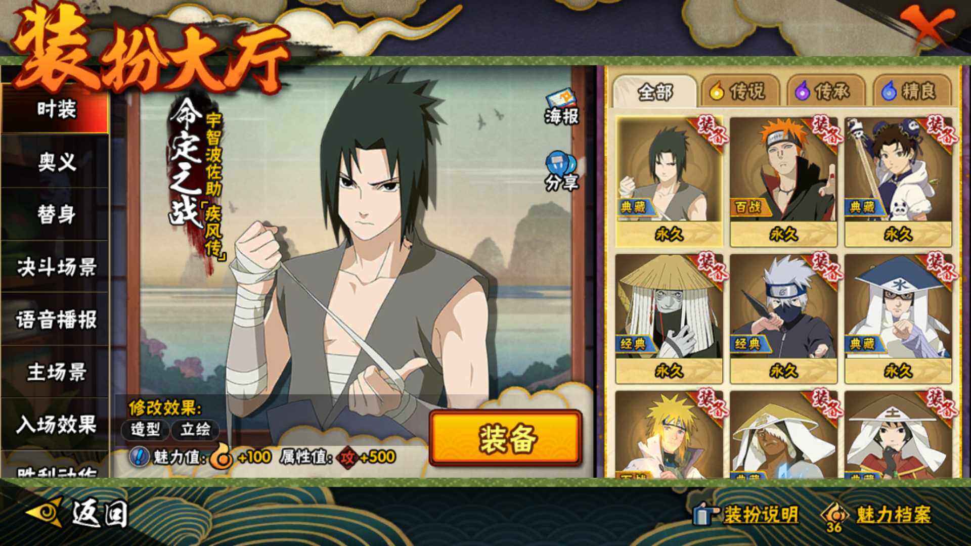 【S级忍者】:春野樱「忍界大战」(3星),宇智波带土「忍界大战」(3星),艾「忍界大战」(3星),宇智波鼬「须佐能乎」(3星),宇智波止水「须佐能乎」(3星),旗木卡卡西「须佐能乎」(3星),千手柱间「木叶创立」(3星),自来也「舞之豪杰」(3星),自来也「传说中的三忍」(3星),波风水门(3星),漩涡鸣人「九喇嘛连结」(3星),佩恩「天道」(3星),宇智波佐助「永恒万花筒」(3星),大筒木桃式(3星),大筒木舍人「最终章」(3星)