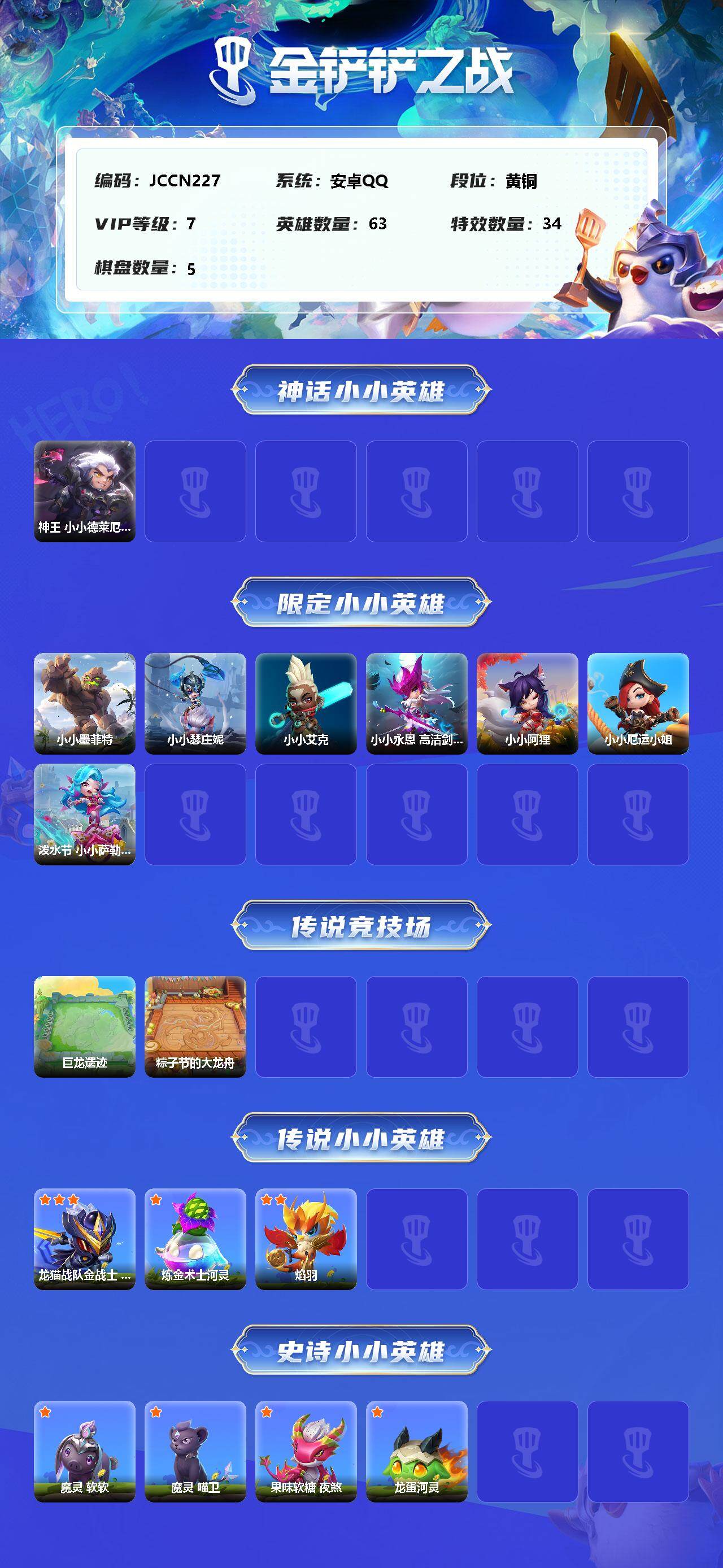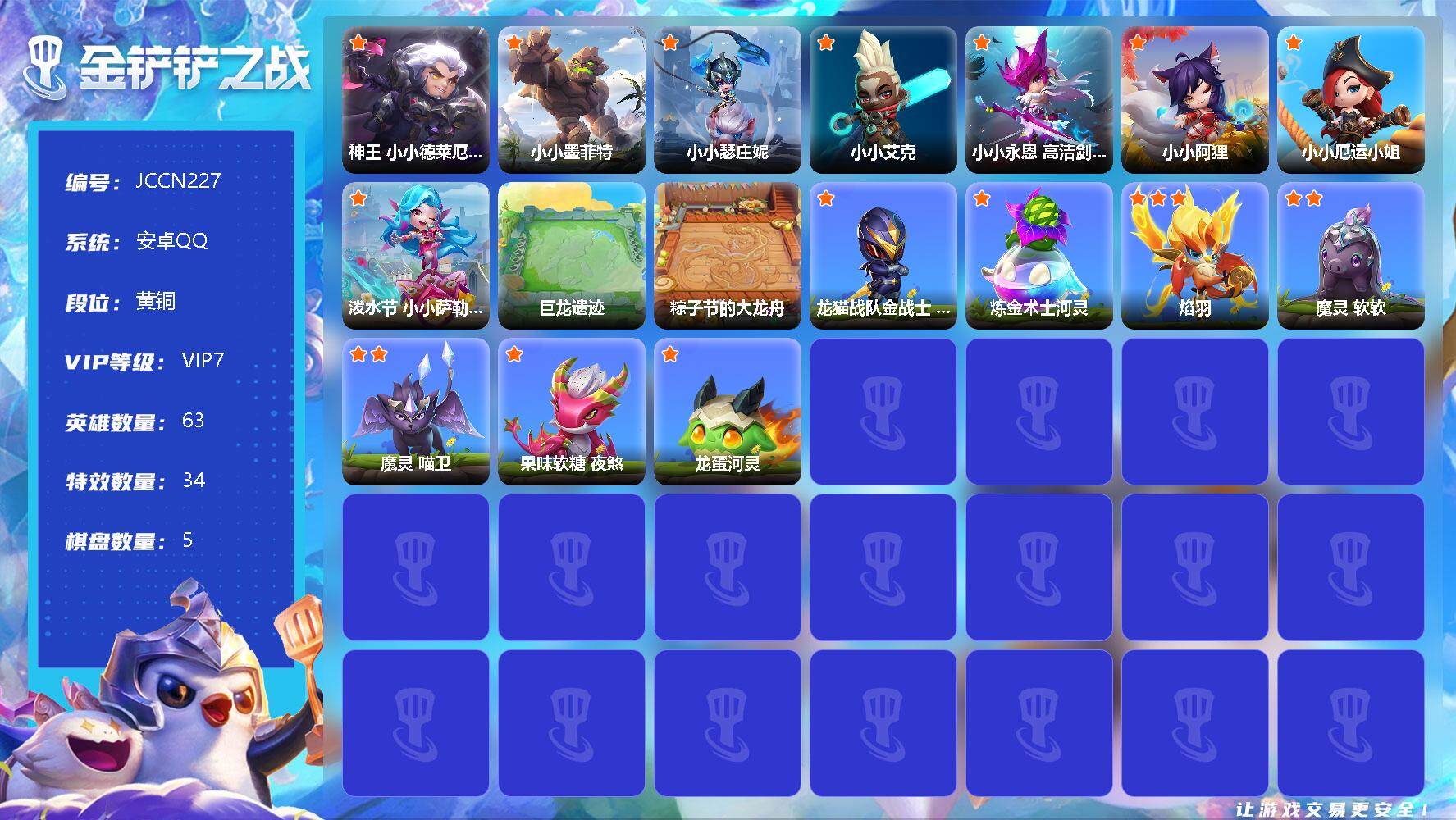 【JCCN227】1神话/63小小英雄/5棋盘/神王小小德莱厄斯/小小墨菲特/小小瑟庄妮/小小艾克/小小永恩 高洁剑魂/小小阿狸/小小厄运小姐/泼水节 小小萨勒芬妮/巨龙遗迹/粽子节的大龙舟/龙猫战队金战士 菜大师/炼金术士河灵/焰羽/魔灵 软软/魔灵 喵卫/果味软糖 夜煞/龙蛋河灵【按系统: 安卓qq】