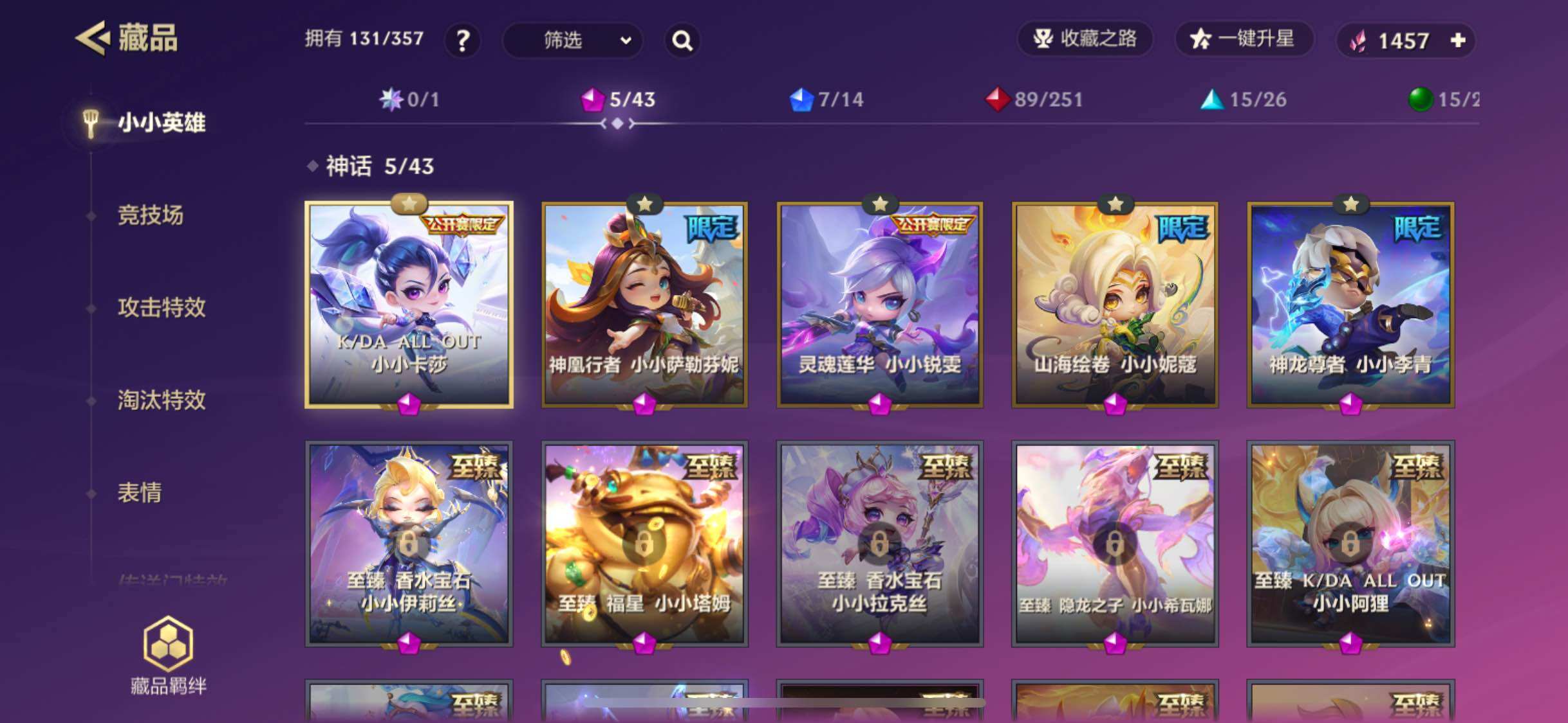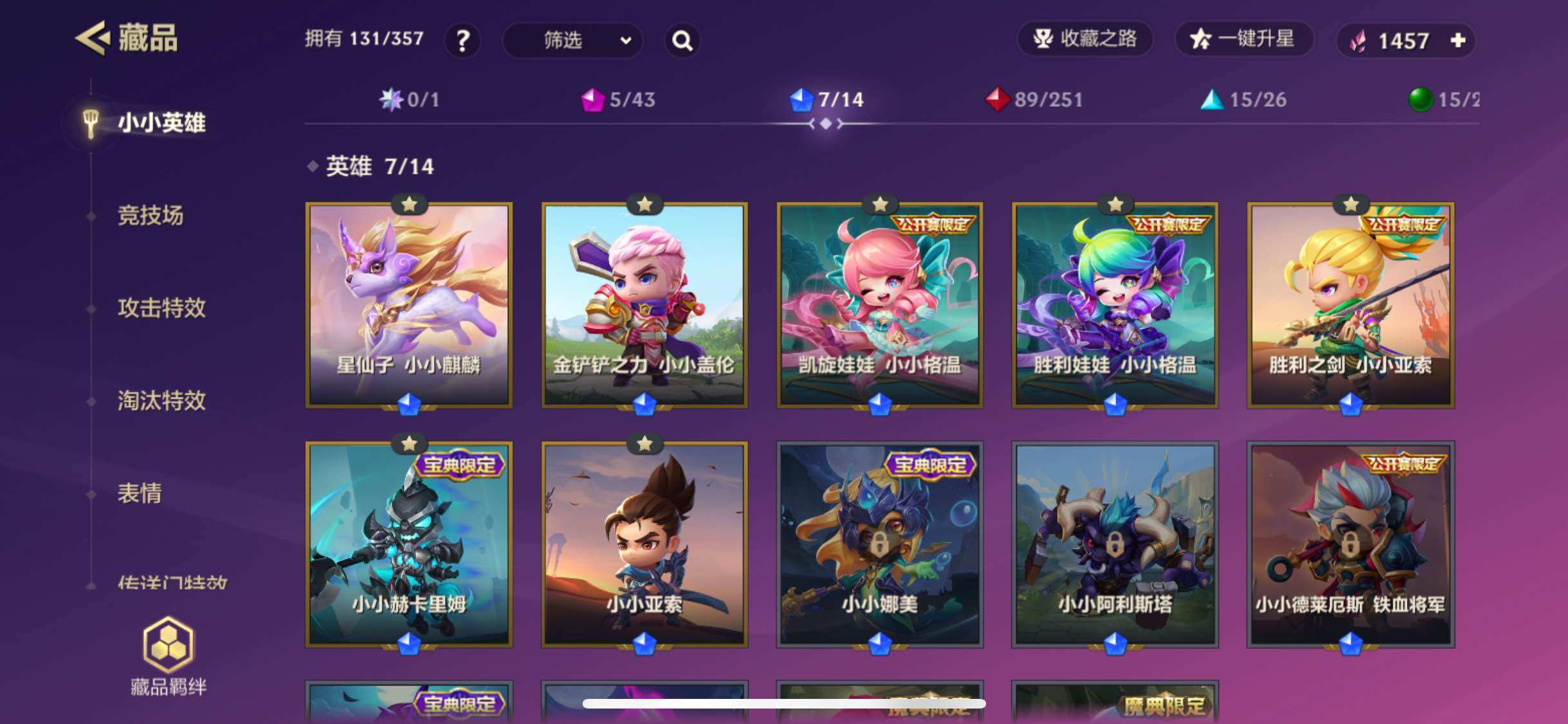 【限定小小英雄】:胜利娃娃 小小格温,凯旋娃娃 小小格温,金铲铲之力 小小盖伦,小小赫卡里姆,小小亚索,胜利之剑 小小亚索,星仙子 小小麒麟