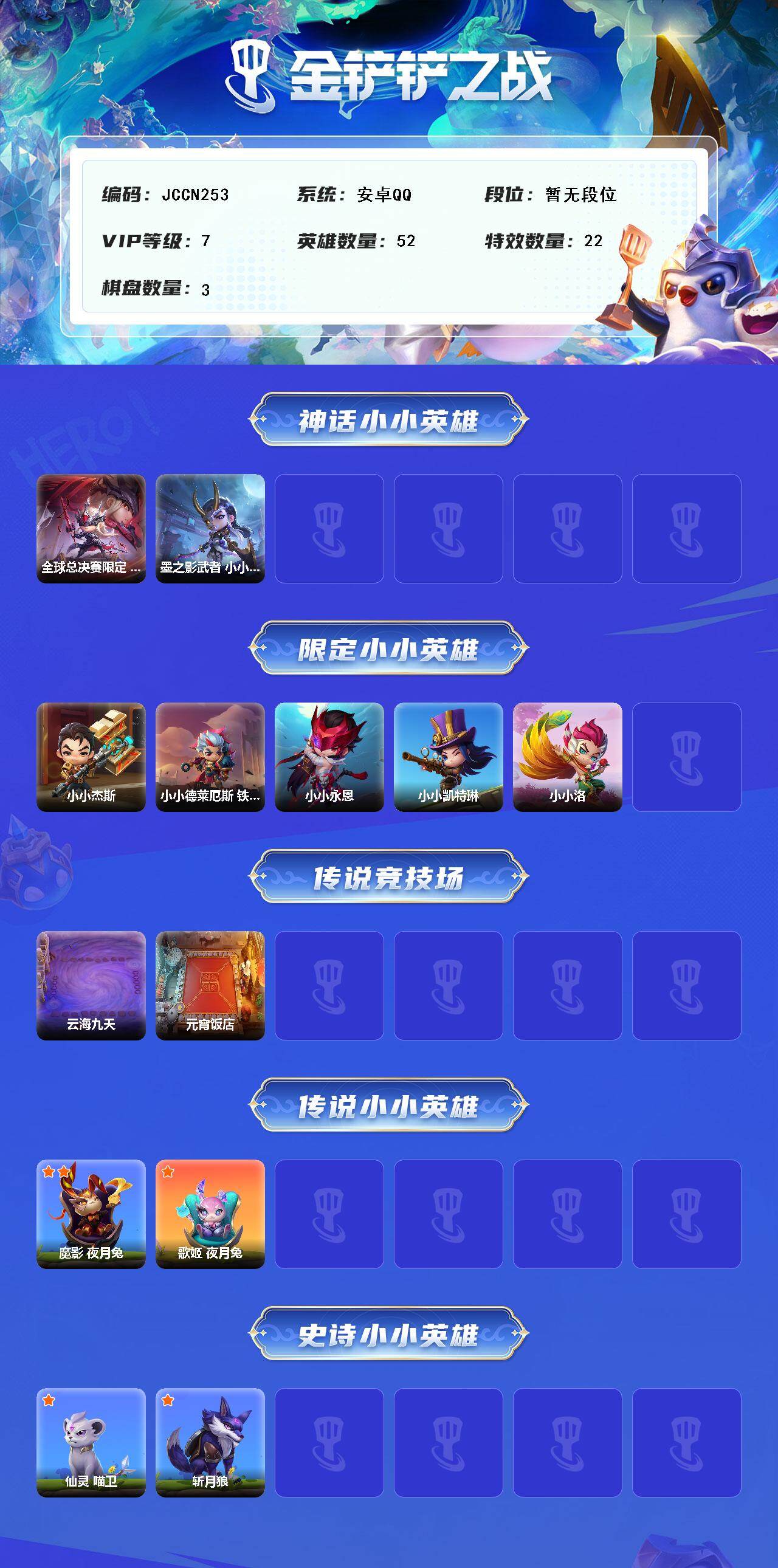 【JCCN253】2神话/52小小英雄/3棋盘/全球总决赛限定 T1 小小永恩/墨之影武者 小小永恩/小小杰斯/小小德莱厄斯 铁血将军/小小永恩/小小凯特琳/小小洛/云海九天/元宵饭店/魔影 夜月兔/歌姬 夜月兔/仙灵 喵卫/斩月狼【按系统: 安卓qq】
