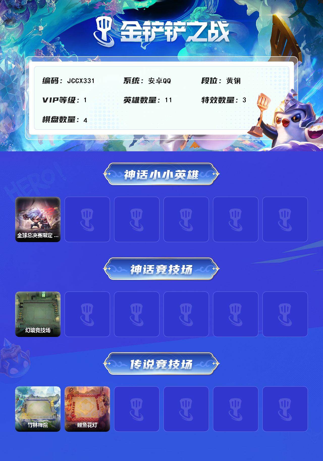 【JCCX331】1神话/11小小英雄/4棋盘/全球总决赛限定 T1 小小蔚/幻境竞技场/竹林禅院/鲤鱼花灯【按系统: 安卓qq】 【实名情况: 不可二次实名】