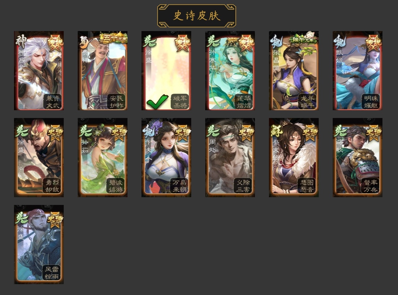 [14276392]C7EDBF史诗武将5个界徐盛,许攸,界李儒,,沮授,神张辽,孙寒华-莲华熠熠,徐盛-破军杀将,神吕蒙-兼资文武,甄姬-明珠耀躯,周处-义除三害,【官阶分类: 先锋及以下】