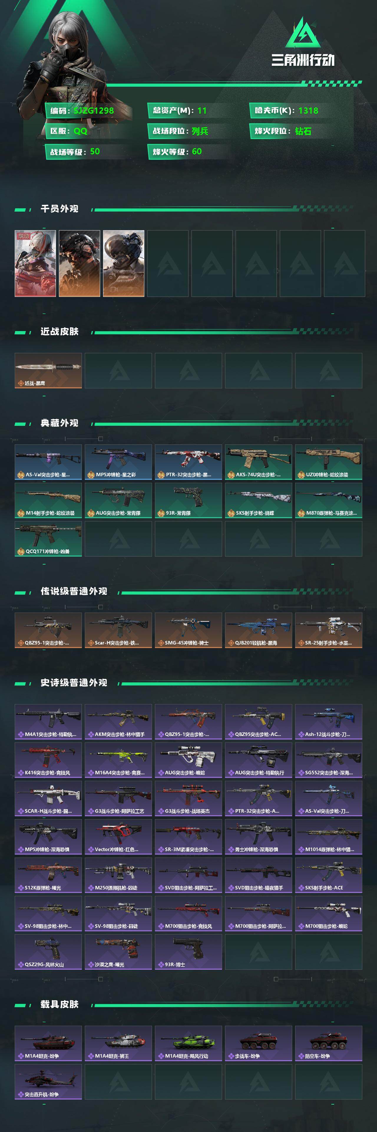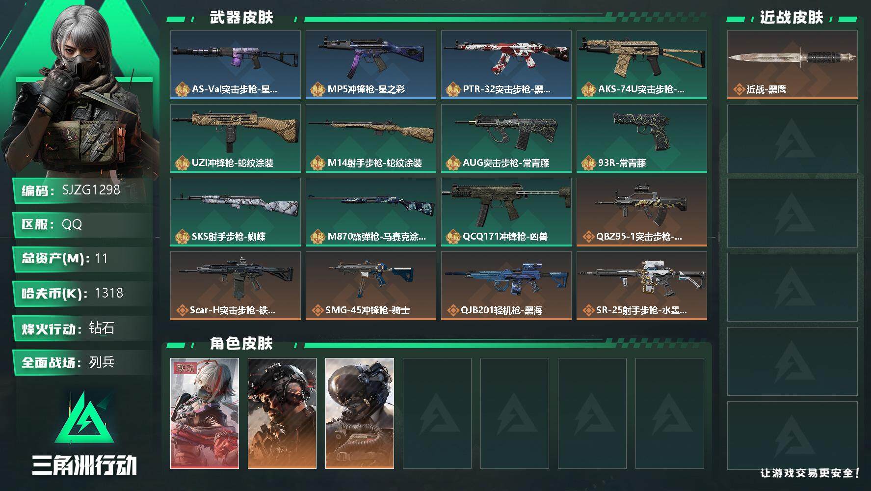 【SJZG1298】总资产(M):11M/哈夫币(K):1318K/哈夫币(K):1318K/全面战场等级:50_段位:列兵/烽火地带等级:60_段位:钻石/骇爪-维什戴尔/威龙-铁面判官/威龙-壮志凌云/近战-黑鹰/As Val突击步枪-星之彩/MP5冲锋枪-星之彩/PTR-32突击步枪-黑潮/AKS-74U突击步枪-蛇纹涂装/UZI冲锋枪-蛇纹涂装/M14射手步枪-蛇纹涂装/AUG突击步枪-常青藤/93R-常青藤/SKS射手步枪-蝴蝶/M870霰弹枪-马赛克涂装/QCQ171冲锋枪-凶兽/QBZ95-1突击步枪-破军/SCAR-H战斗步枪-铁艺苍穹/SMG-45冲锋枪-骑士/QJB201轻机枪-黑海/SR-25射手步枪-水墨云图/M4A1突击步枪-特勤执行/AKM突击步枪-林中猎手/QBZ95-1突击步枪-曙光/QBZ95-1突击步枪-ACE/ASh-12战斗步枪-刀锋/K416突击步枪-竞技风/M16A4突击步枪-竞赛选手/AUG突击步枪-蝮蛇/AUG突击步枪-特勤执行/SG552突击步枪-深海恐惧/SCAR-H战斗步枪-国风/G3战斗步枪-阿萨拉工艺/G3战斗步枪-战场英杰/PTR-32突击步枪-ACE/AS Val突击步枪-刀锋/MP5冲锋枪-深海恐惧/Vector冲锋枪-红色彗星/SR-3M紧凑突击步枪-英雄/勇士冲锋枪-深海恐惧/M1014霰弹枪-林中猎手/S12K霰弹枪-曙光/M250通用机枪-囚徒/SVD狙击步枪-阿萨拉工艺/SVD狙击步枪-暗夜猎手/SKS射手步枪-ACE/SV-98狙击步枪-林中猎手/SV-98狙击步枪-囚徒/M700狙击步枪-竞技风/M700狙击步枪-阿萨拉工艺/M700狙击步枪-蝮蛇/QSZ92G-风林火山/沙漠之鹰-曙光/93R-博士/M4A1突击步枪-战术小队/M4A1突击步枪-零点/QBZ95-1突击步枪-精准打击/ASh-12战斗步枪-星链科技/K416冲锋枪-全球攻势/AUG突击步枪-全金属外壳/AUG突击步枪-巡逻队/M7战斗步枪-前沿科技/SG552突击步枪-先锋/AK-12突击步枪-战术行动/SCAR-H战斗步枪-童趣/SCAR-H战斗步枪-荣耀列队/PTR-32突击步枪-天网/CAR15突击步枪-亚特兰蒂斯/AS Val突击步枪-哈夫克科技/腾龙突击步枪-前沿科技/MP5冲锋枪-弄臣/MP5冲锋枪-巡逻队/P90冲锋枪-医疗协议/P90冲锋枪-开拓/P90冲锋枪-先锋/P90冲锋枪-街头涂鸦/P90冲锋枪-蛇年新春/P90冲锋枪-浅鲨小队/P90冲锋枪-新生/Vector冲锋枪-先锋/VECTOR冲锋枪-街头涂鸦/VECTOR冲锋枪-蜂窝科技/Vector冲锋枪-行动开启/SMG-45-行动开启/SMG-45冲锋枪-幻影结构/PP19冲锋枪-星链科技/MP7冲锋枪-幻影结构/M1014霰弹枪-弄臣/M1014霰弹枪-幻影结构/M870霰弹枪-蛇年新春/PKM通用机枪-英雄/M249轻机枪-战损/M249轻机枪-弄臣/M250通用机枪-天网/Mini-14射手步枪-蛇年新春/Mini-14射手步枪-荣耀列队/VSS射手步枪-哈夫克卫队/M14射手步枪-医疗协议/M14射手步枪-出厂配置/M14射手步枪-前沿科技/M14射手步枪-哈夫克卫队/SKS射手步枪-弄臣/SR-25射手步枪-开拓/SR-25射手步枪-先锋/SR-25射手步枪-蜂窝科技/SR-9射手步枪-街头涂鸦/SV-98狙击步枪-星链科技/G18-星链科技/93R-蜂窝科技/M4A1突击步枪-粉色涂装/M4A1突击步枪-高雅黑/M4A1突击步枪-蛛网/M4A1突击步枪-几何碎片/M4A1突击步枪-海色/QBZ95-1突击步枪-粉色涂装/QBZ95-1突击步枪-高雅黑/QBZ95-1突击步枪-海浪/QBZ95-1突击步枪-三角洲力量/QBZ95-1突击步枪-海色/K416突击步枪-粉色涂装/K416突击步枪-几何迷彩/K416突击步枪-高雅黑/M16A4突击步枪-沙色涂装/M16A4突击步枪-山林猎人/AUG突击步枪-浅蓝涂装/AUG突击步枪-几何迷彩/M7战斗步枪-红色涂装/M7战斗步枪-怒气冲冲/SG552突击步枪-浅蓝涂装/SG552突击步枪-精钢/SG552突击步枪-海浪/AK-12突击步枪-冰川/AK-12突击步枪-落花/SCAR-H战斗步枪-沙色涂装/SCAR-H战斗步枪-数码迷彩/G3战斗步枪-高雅黑/PTR-32突击步枪-黄蜂/AS Val突击步枪-怒气冲冲/MP5冲锋枪-沙色涂装/MP5冲锋枪-蛛网/MP5冲锋枪-安全工作/MP5冲锋枪-海色/MP5冲锋枪-黄蜂/P90冲锋枪-冰川/P90冲锋枪-安全工作/Vector冲锋枪-几何迷彩/VECTOR-几何碎片/UZI冲锋枪-沙色涂装/UZI冲锋枪-海色/SMG45-几何碎片/勇士冲锋枪-精钢/QCQ171冲锋枪-三角洲力量/M1014霰弹枪-高雅黑/M1014霰弹枪-海浪/S12K霰弹枪-精钢/M249轻机枪-精钢/M249轻机枪-冰川/M249轻机枪-黄蜂/QJB201轻机枪-三角洲力量/SVD狙击步枪-红色涂装/SVD狙击步枪-风云涌动/SR-25射手步枪-黄蜂/SV-98狙击步枪-红色涂装/SV-98狙击步枪-冰川/QSZ92G-风云涌动/.357左轮-精钢/沙漠之鹰-几何迷彩/沙漠之鹰-海浪/G18-浅蓝涂装/93R-三角洲力量/M1911-坚固材料/M1A4坦克-纷争/M1A4坦克-狮王/M1A4坦克-飓风行动/步战车-纷争/防空车-纷争/突击直升机-纷争/军牌-竞技比赛/军牌-摇滚涂鸦/军牌-节日装扮/军牌-壮志凌云/军牌-彦祖分祖/军牌-独此真我/军牌-行动规划/军牌-三角小子/军牌-最后一刻/军牌-装备修理/军牌-坠机点/军牌-植入/军牌-蓄势待发/军牌-夜间撤离/军牌-发射升空/军牌-静谧时光/军牌-展示/军牌-享受音乐/军牌-永恒/军牌-零号大坝/军牌-夜晚时间/军牌-来点薯条/军牌-修整/军牌-阿萨拉工艺/军牌-神秘艺术/军牌-幸福国/军牌-心之箭/军牌-烟火/军牌-信誉优秀/军牌-蛟龙/挂饰-王国利刃/挂饰-幸运鼠鼠/挂饰-磁吸炸弹/挂饰-保持专注吊坠/挂饰-枪匠/挂饰-relink/挂饰-王牌座驾/挂饰-持剑者/挂饰-持盾者/挂饰-重装记者/挂饰-演出导演/挂饰-阿萨拉狙击兵/挂饰-阿萨拉霰弹兵/挂饰-阿萨拉徽章【登录方式: QQ登录】