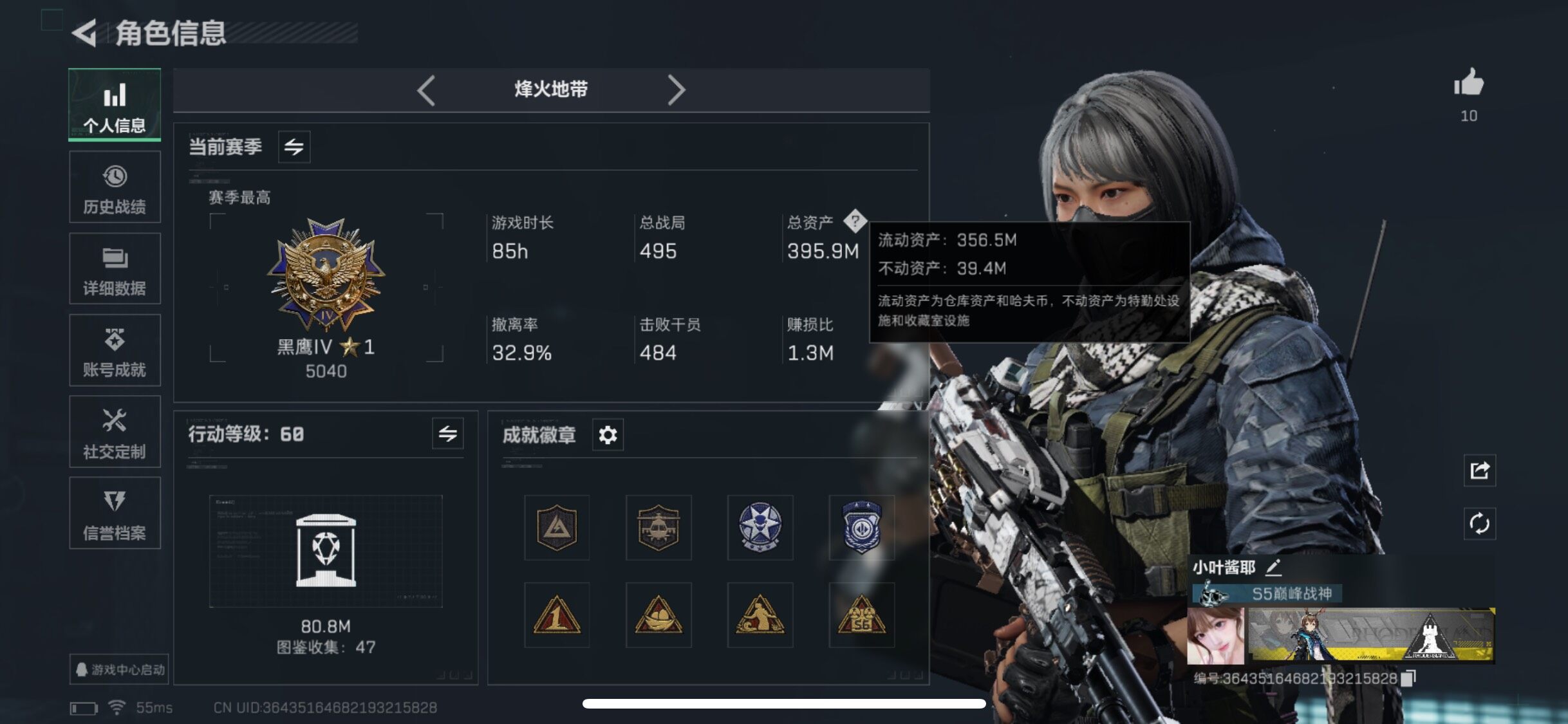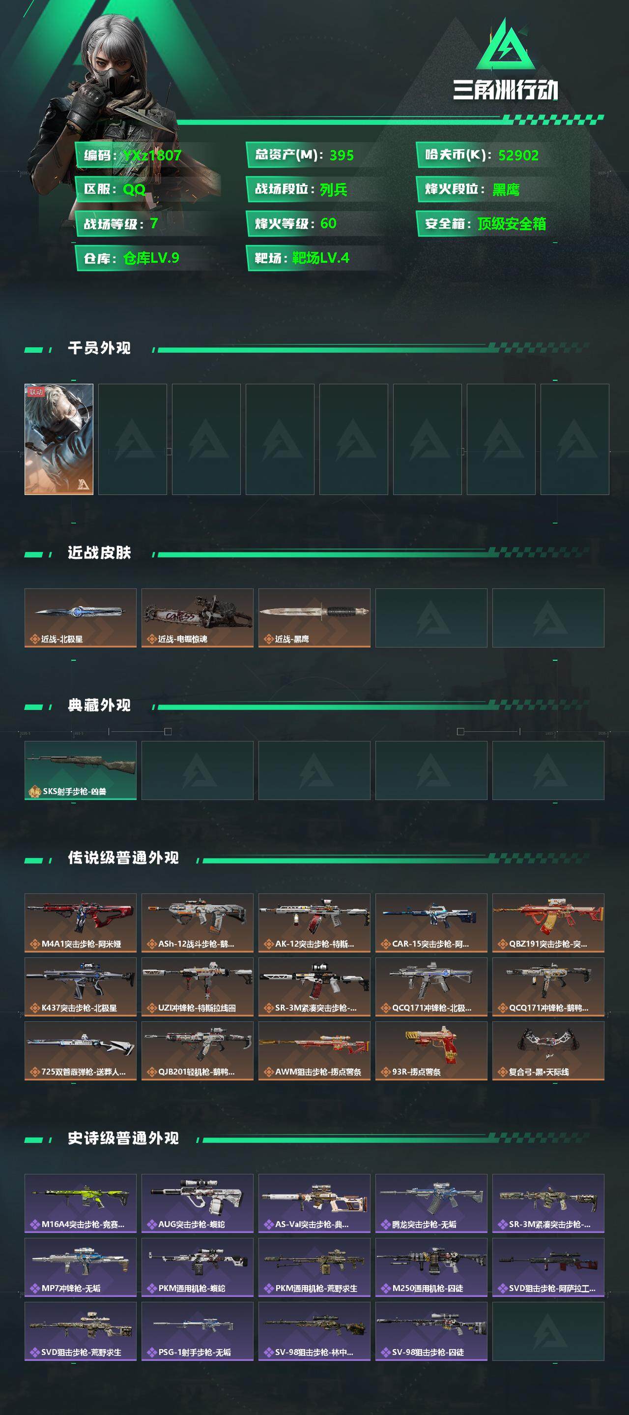 【Q区三端互通】【无二次】YXz1807-特勤处:仓库9级/训练中心4级/靶场4级-总资产395m-哈夫币5290w-烽火等级:60级【勾选了部分账号,详细看图,平台认证商家店铺,保证金商家,安全有保障,性价比超高,永久包赔】