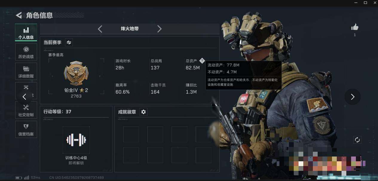 【SJZ2413】总资产(M):82.5M/哈夫币(K):47366K/哈夫币(K):47366K/全面战场等级:1_段位:无段位/烽火地带等级:37_段位:铂金/骇爪-维什戴尔/近战-黑鹰【登录方式: QQ登录】 【实名情况: 不可二次实名】