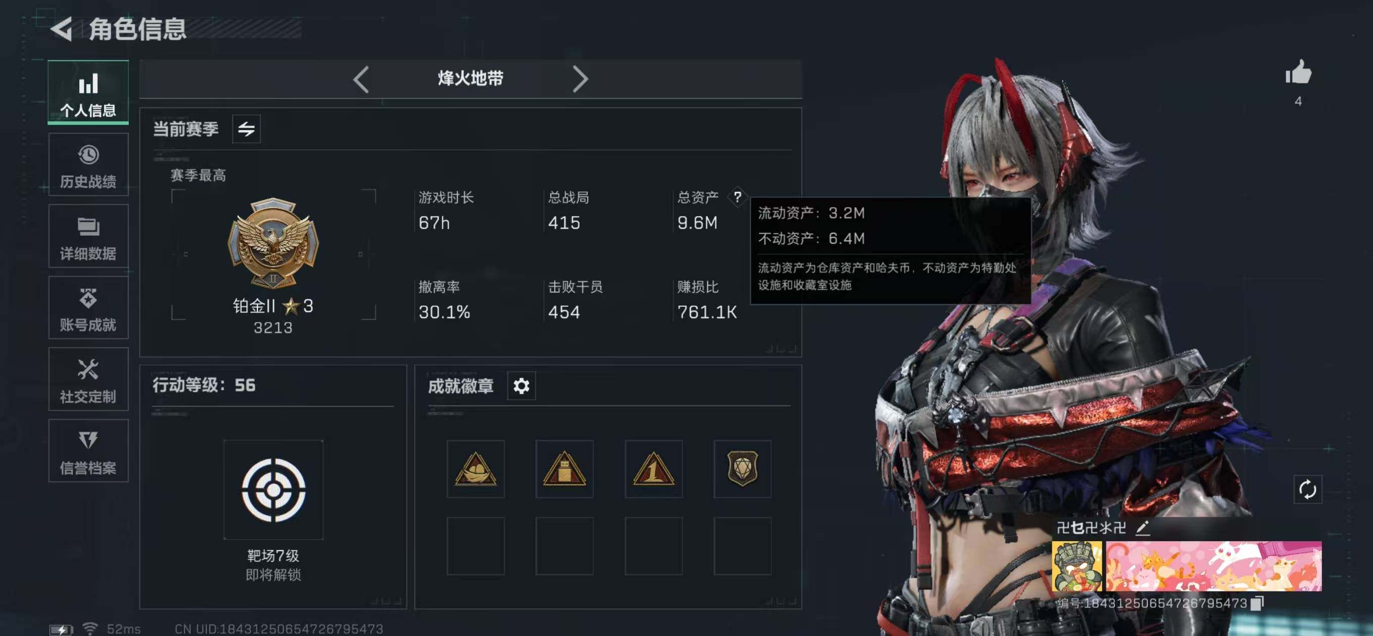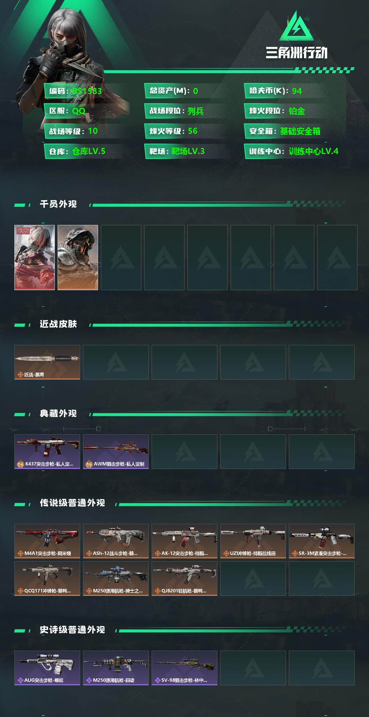 94k哈伏币-3m流动资产-56烽火等级-铂金-10战场等级-列兵