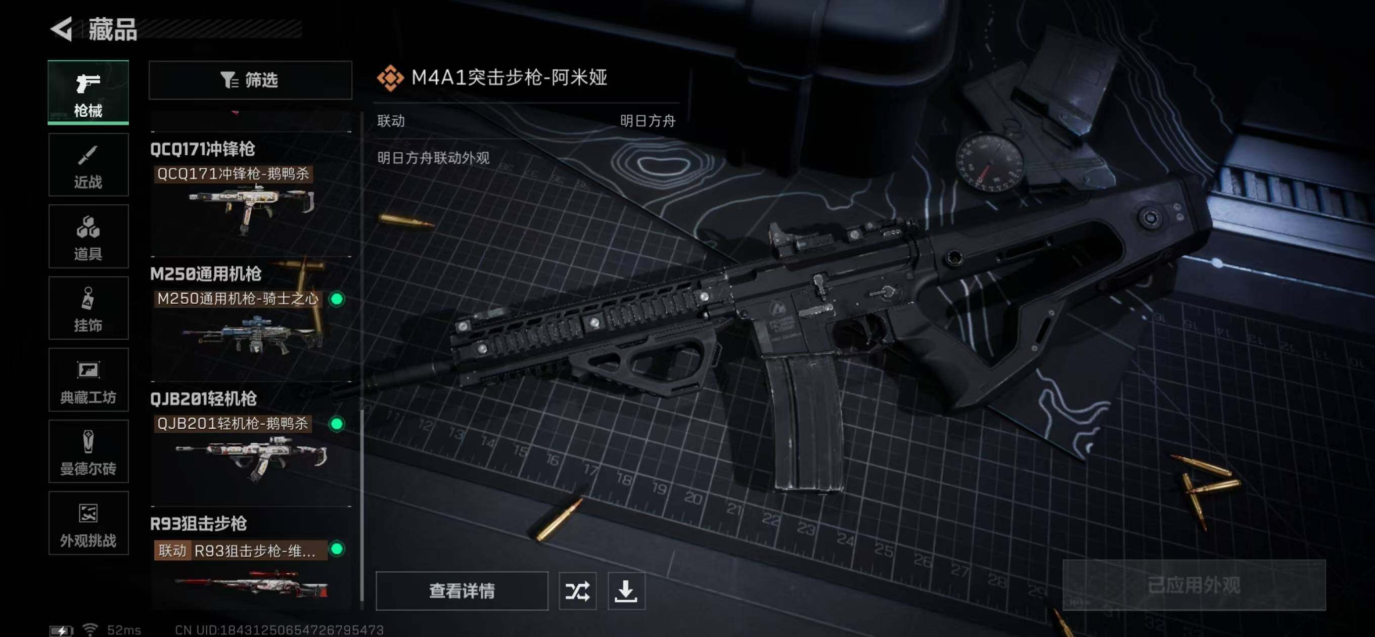 【传说级普通外观】:M4A1突击步枪-阿米娅,ASh-12战斗步枪-鹅鸭杀,AK-12突击步枪-特斯拉线圈,UZI冲锋枪-特斯拉线圈,SR-3M紧凑突击步枪-特斯拉线圈,QCQ171冲锋枪-鹅鸭杀,M250通用机枪-骑士之心,QJB201轻机枪-鹅鸭杀