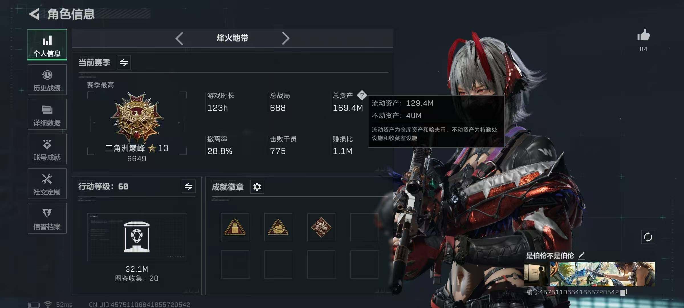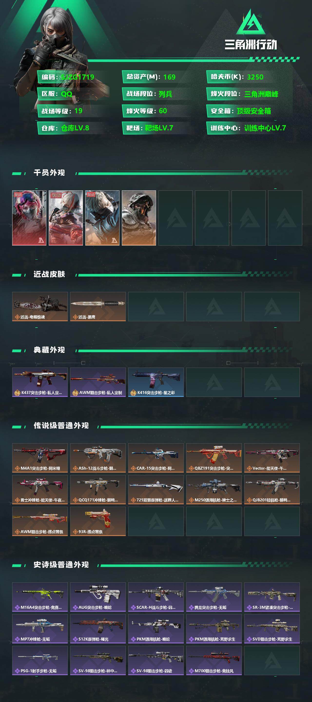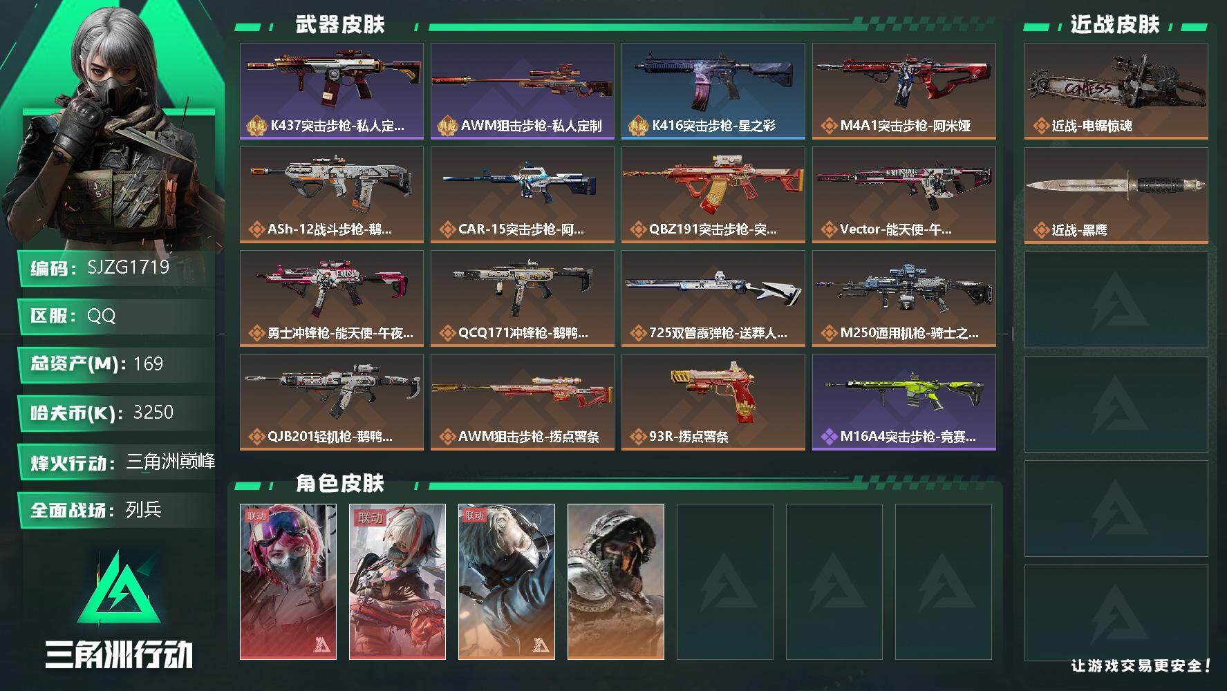 【SJZG1719】总资产(M):169M/哈夫币(K):3250K/哈夫币(K):3250K/传说枪皮数:17/全面战场等级:19_段位:列兵/烽火地带等级:60_段位:三角洲巅峰/蛊-能天使午夜邮差/骇爪-维什戴尔/蜂医-送葬人·无题密令/深蓝-不破誓约/近战-电锯惊魂/近战-黑鹰/K437突击步枪-私人定制/AWM狙击步枪-私人定制/K416突击步枪-星之彩/M4A1突击步枪-阿米娅/ASh-12战斗步枪-鹅鸭杀/CAR-15突击步枪-阿米娅/腾龙突击步枪-捞点薯条/QCQ171冲锋枪-鹅鸭杀/725双管霰弹枪-送葬人-无题密令/M250通用机枪-骑士之心/QJB201轻机枪-鹅鸭杀/AWM狙击步枪-捞点薯条/93R-捞点薯条/Vector冲锋枪-能天使-午夜邮差/勇士冲锋枪-能天使-午夜邮差/M16A4突击步枪-竞赛选手/AUG突击步枪-蝮蛇/SCAR-H战斗步枪-囚徒/腾龙突击步枪-无垢/SR-3M紧凑突击步枪-荒野求生/MP7冲锋枪-无垢/S12K霰弹枪-曙光/PKM通用机枪-蝮蛇/PKM通用机枪-荒野求生/SVD狙击步枪-荒野求生/PSG-1射手步枪-无垢/SV-98狙击步枪-林中猎手/SV-98狙击步枪-囚徒/M700狙击步枪-竞技风/K416突击步枪-虎啸/SCAR-H战斗步枪-荣耀列队/腾龙突击步枪-雪崩/MP5冲锋枪-弄臣/MP5冲锋枪-虎啸/Vector冲锋枪-先锋/SMG-45-行动开启/SR-3M紧凑突击步枪-雪崩/M1014霰弹枪-幻影结构/M250通用机枪-虎啸/Mini-14射手步枪-荣耀列队/SKS射手步枪-弄臣/SKS射手步枪-雪崩/SR-25射手步枪-开拓/SR-9射手步枪-街头涂鸦/SV-98狙击步枪-星链科技/G18-星链科技/M4A1突击步枪-粉色涂装/M4A1突击步枪-高雅黑/M4A1突击步枪-海色/AKM突击步枪-彩墨喷涂/QBZ95-1突击步枪-高雅黑/QBZ95-1突击步枪-海浪/QBZ95-1突击步枪-三角洲力量/QBZ95-1突击步枪-海色/K416突击步枪-几何迷彩/K416突击步枪-高雅黑/M16A4突击步枪-山林猎人/AUG突击步枪-浅蓝涂装/M7战斗步枪-红色涂装/SG552突击步枪-浅蓝涂装/SG552突击步枪-海浪/SG552突击步枪-彩墨喷涂/G3战斗步枪-高雅黑/G3战斗步枪-山林猎人/PTR-32突击步枪-黄蜂/腾龙突击步枪-彩墨喷涂/MP5冲锋枪-海色/MP5冲锋枪-黄蜂/Vector冲锋枪-几何迷彩/UZI冲锋枪-海色/UZI冲锋枪-山林猎人/野牛冲锋枪-彩墨喷涂/M1014霰弹枪-高雅黑/PKM通用机枪-彩墨喷涂/M249轻机枪-黄蜂/QJB201轻机枪-山林猎人/Mini-14射手步枪-山林猎人/SR-25射手步枪-黄蜂/SV-98狙击步枪-红色涂装/M700狙击步枪-山林猎人/沙漠之鹰-海浪/军牌-捞点薯条/军牌-失重/军牌-送葬人·无题密令/军牌-猫咪/军牌-静谧时光/军牌-享受音乐/军牌-零号大坝/军牌-来点薯条/军牌-修整/军牌-神秘艺术/军牌-信誉优秀/军牌-下午茶/军牌-小心鳄鱼/挂饰-幸运鼠鼠/挂饰-来点薯条/挂饰-晶石回响【登录方式: QQ登录】