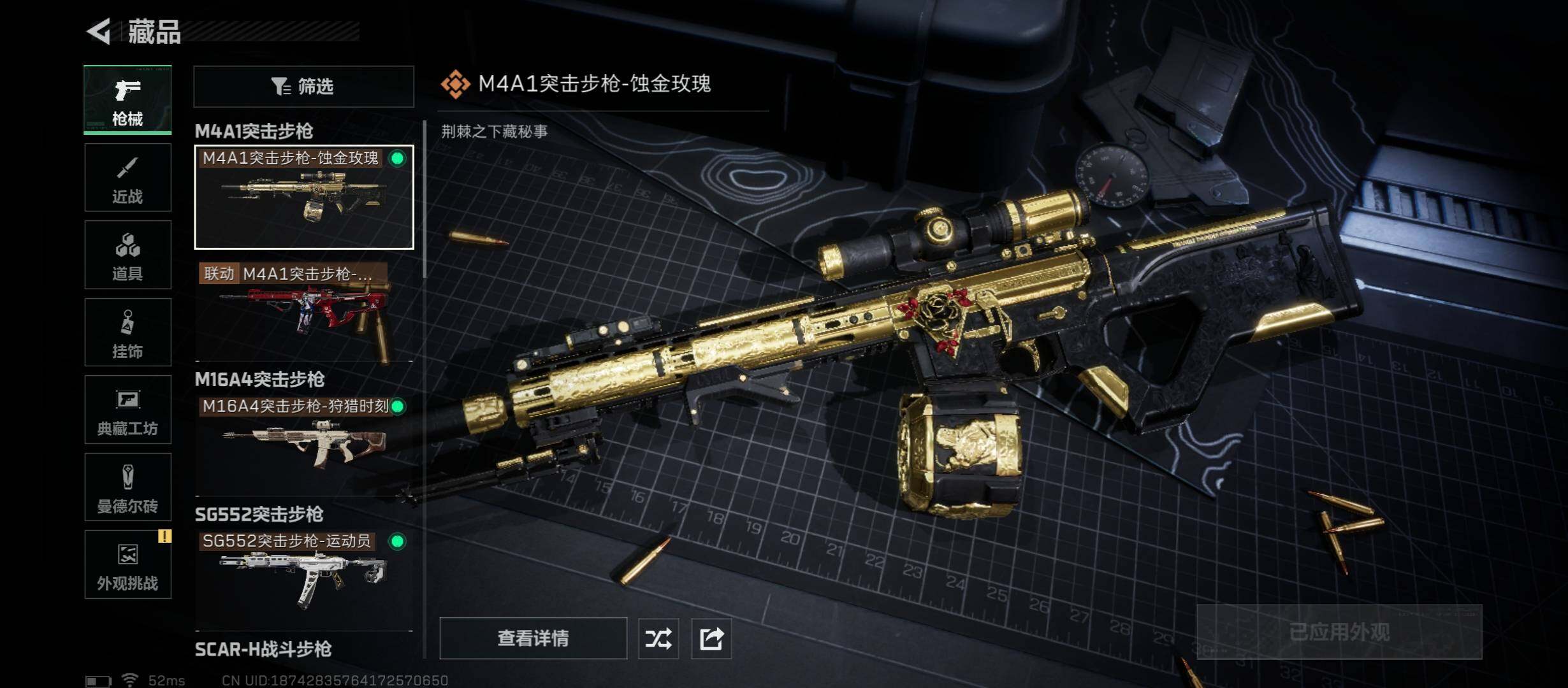 【传说级普通外观】:M4A1突击步枪-蚀金玫瑰,M4A1突击步枪-阿米娅,M16A4突击步枪-狩猎时刻,SG552突击步枪-运动员,SCAR-H战斗步枪-启航,G3战斗步枪-狩猎时刻,CAR-15突击步枪-阿米娅,腾龙突击步枪-捞点薯条,Vector冲锋枪-狩猎时刻,勇士冲锋枪-能天使-午夜邮差,725双管霰弹枪-送葬人-无题密令,M250通用机枪-骑士之心,M14射手步枪-电锯惊魂,AWM狙击步枪-捞点薯条,93R-捞点薯条,复合弓-黑·天际线