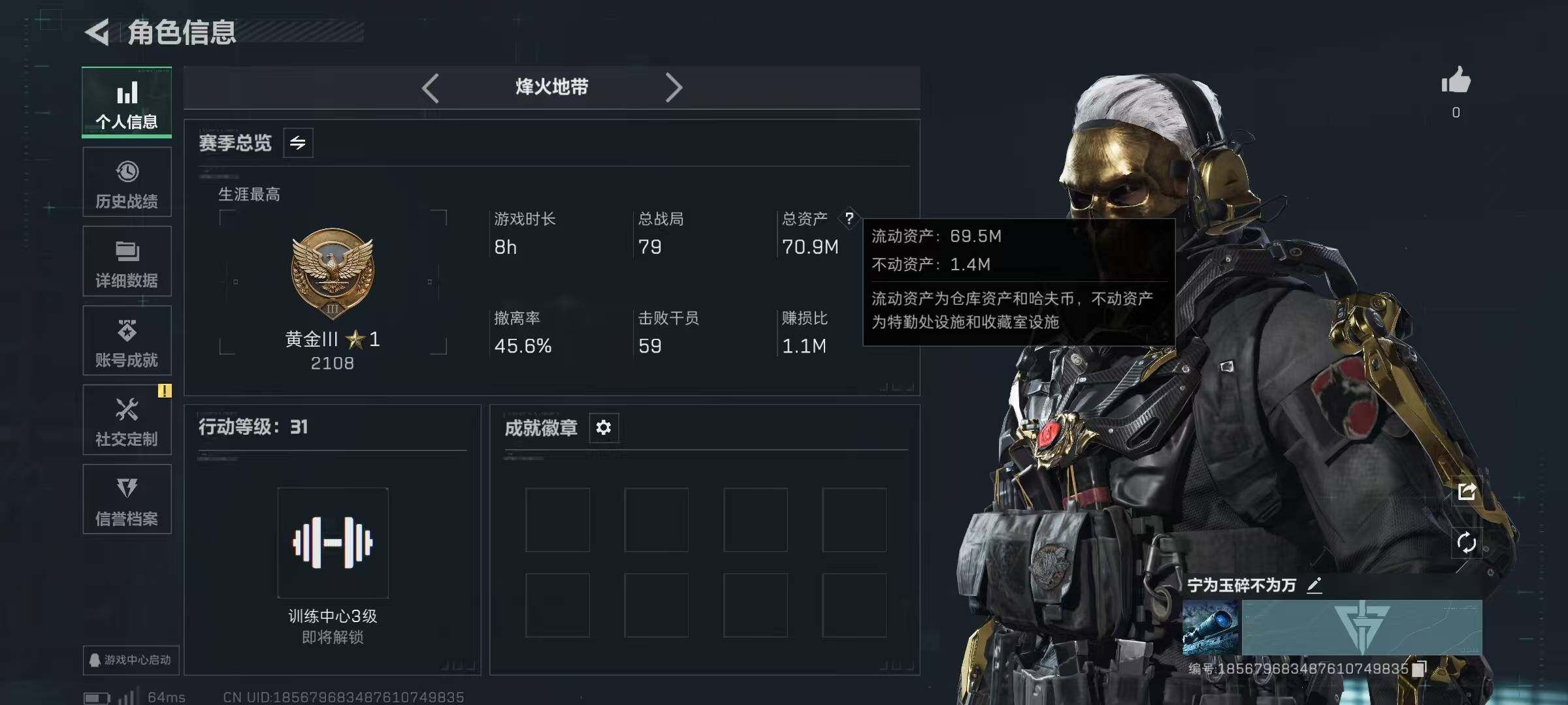 PX_2273980-【SJ413】【无封禁记录】31级 总资产70M 流动资产69M 蚀金玫瑰,维什戴尔 仓4级体力2级负重2级