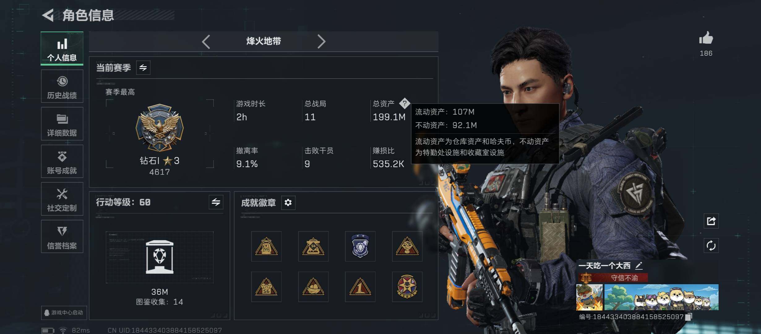 【Q区三端互通】【可二次】YXz3889-特勤处:仓库10级/靶场7级/训练中心7级-总资产199.1m-哈夫币1434w-烽火等级:60级