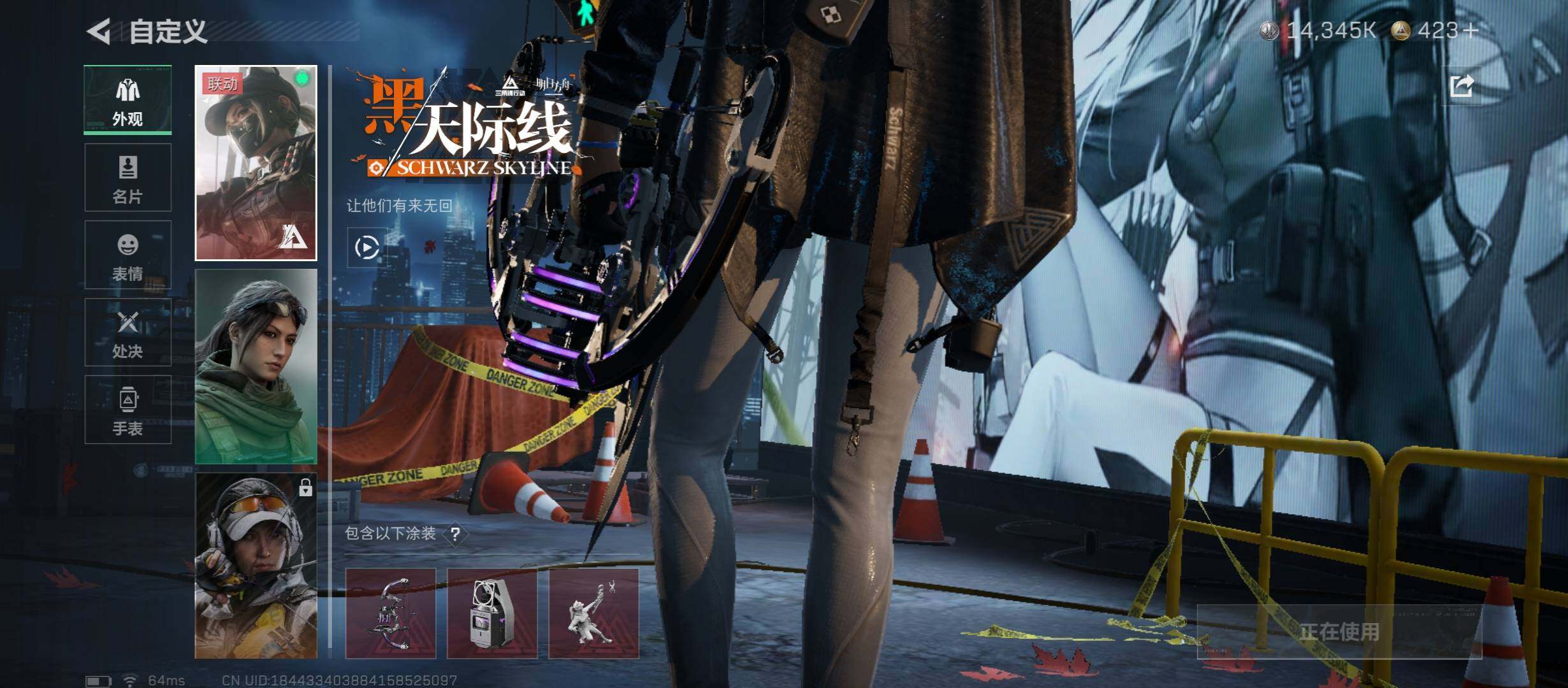 【干员外观】:红狼-蚀金玫瑰,骇爪-水墨云图,露娜-黑·天际线,威龙-铁面判官,威龙-壮志凌云,威龙-飞虎,蜂医-送葬人·无题密令,牧羊人-街头之王,无名-夜鹰,深蓝-不破誓约