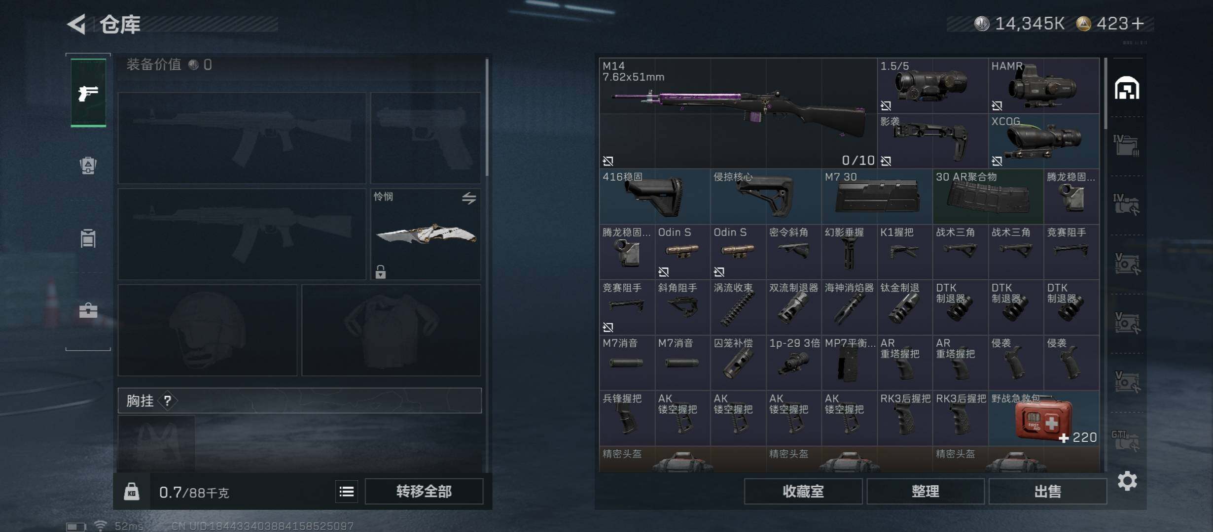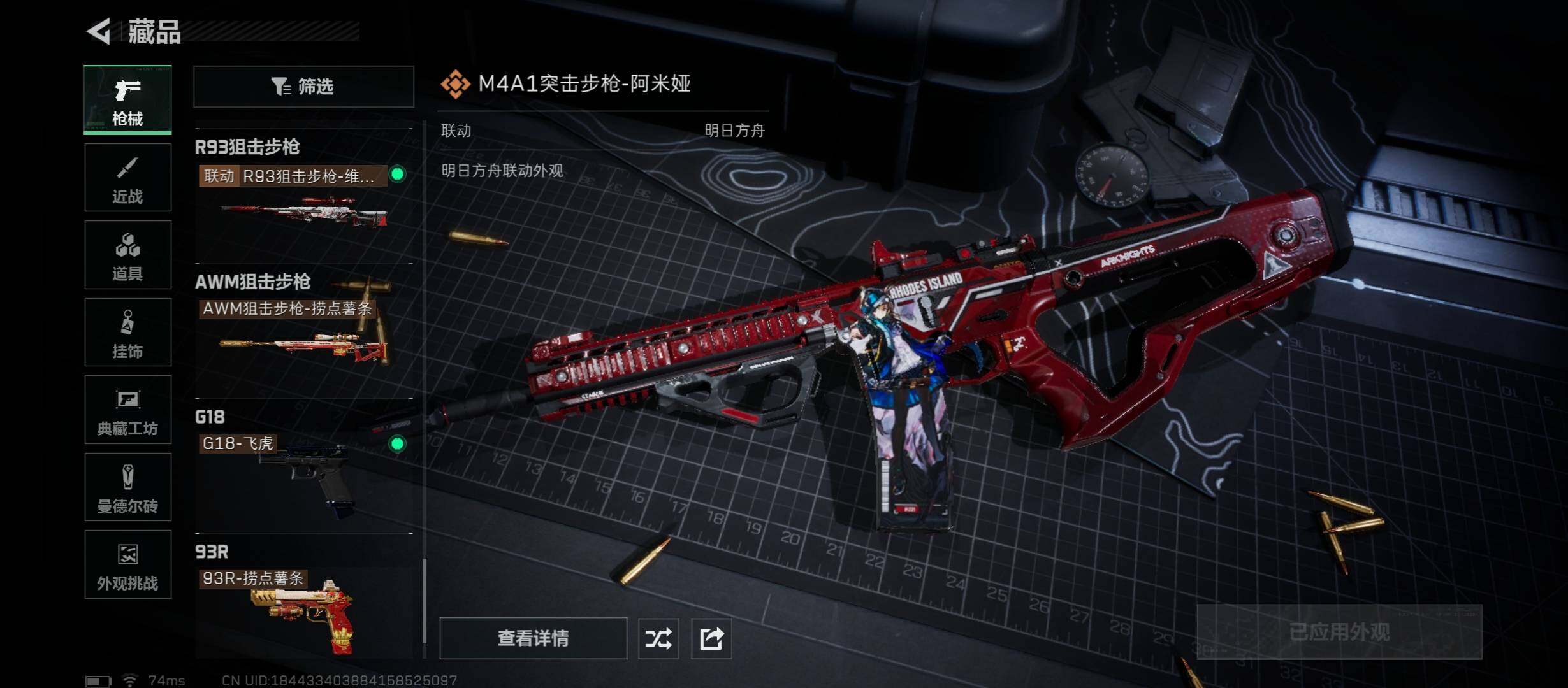 【典藏外观】:K416突击步枪-暗鸦,P90冲锋枪-暗鸦,M4A1突击步枪-银灰金属,AKM突击步枪-阿萨拉卫队,AKM突击步枪-青纹,AK-12突击步枪-青纹,QBZ95-1突击步枪-花岗岩,AUG突击步枪-花岗岩,Vector冲锋枪-花岗岩,K416突击步枪-星之彩,As Val突击步枪-星之彩,MP5冲锋枪-星之彩,P90冲锋枪-星之彩,PKM通用机枪-黑潮,QBZ95-1突击步枪-海岸线,AK-12突击步枪-淘金者,M14射手步枪-蛇纹涂装,AUG突击步枪-常青藤,93R-常青藤,Mini-14射手步枪-黄铜,P90冲锋枪-马赛克涂装,SV-98狙击步枪-马赛克涂装,G18-马赛克涂装,QCQ171冲锋枪-凶兽,SKS射手步枪-凶兽